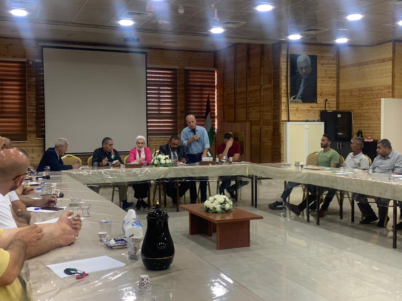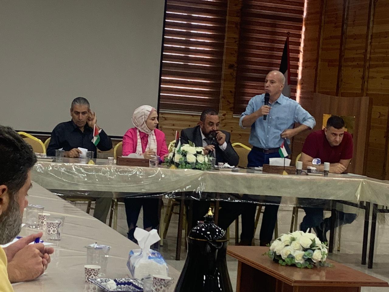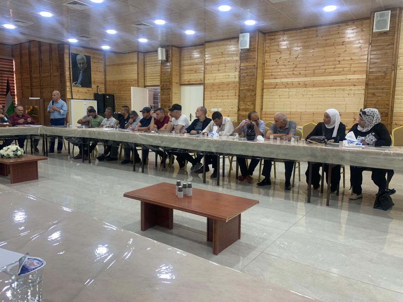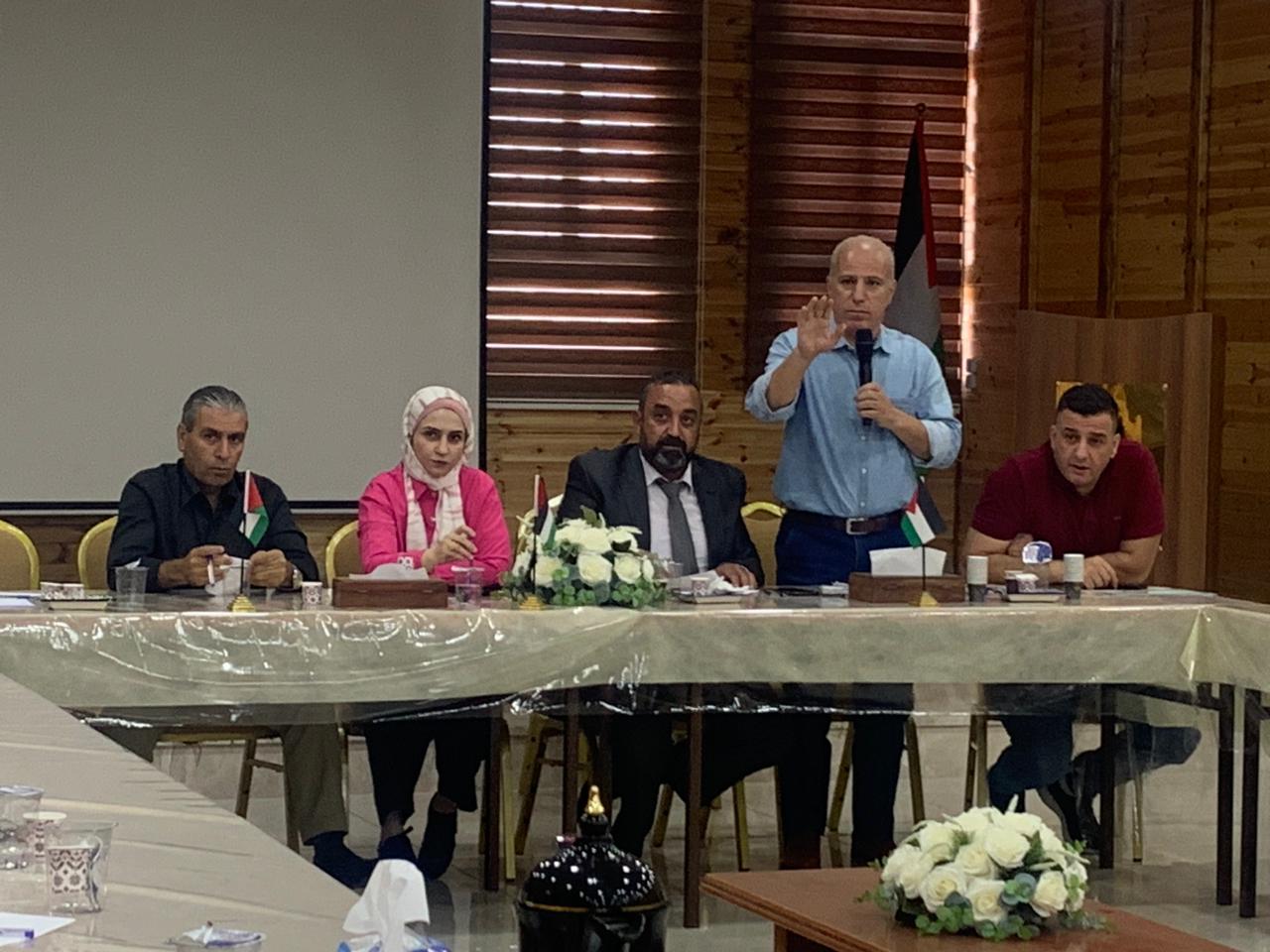 وأدار الاجتماع صفاء أبو سنينة المدير العام في الإدارة العامة في المحافظة وقيس دعنا مدير الدائرة السياسية في المحافظة وشارك العشرات من ممثلي الفعاليات والمؤسسات الرسمية والشعبية ومنسق القوى الوطنية في المحافظة وكوادر من الاسرى المحررين ولجان أهالي الاسرى وذوي الاسرى إضافة الى هيئة التوجيه السياسي والوطني ومديرية التربية والتعليم والحملة الوطنية لاسترداد جثامين الشهداء وممثلي أقاليم حركة فتح وهيئة مقاومة الجدار والاستيطان ...