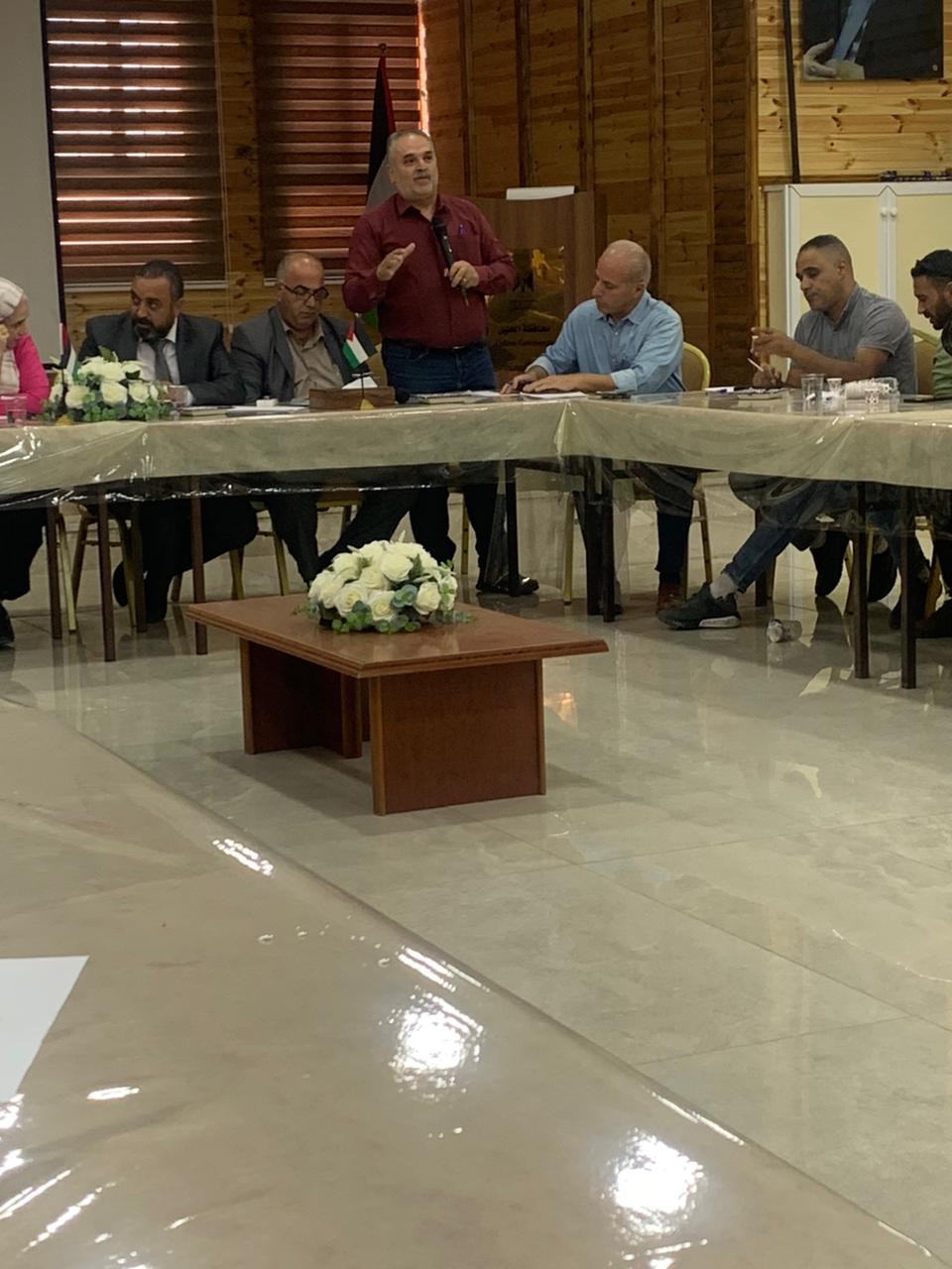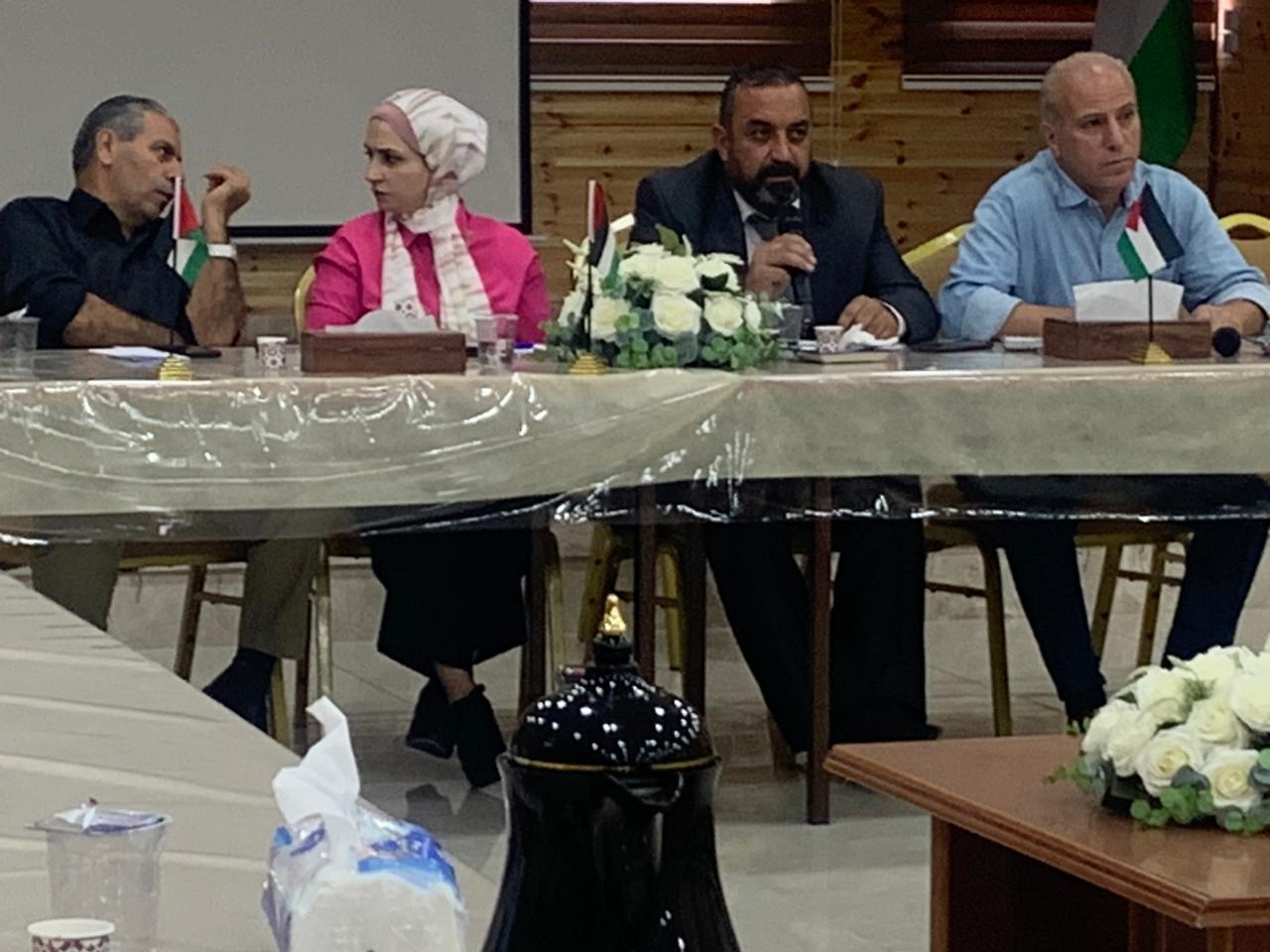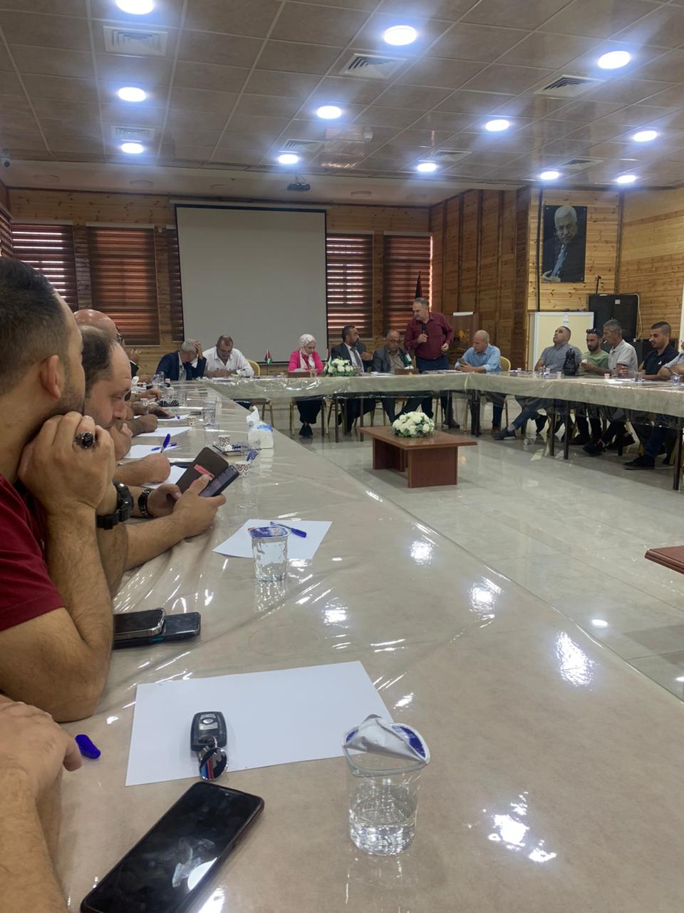وأدار الاجتماع صفاء أبو سنينة المدير العام في الإدارة العامة في المحافظة وقيس دعنا مدير الدائرة السياسية في المحافظة وشارك العشرات من ممثلي الفعاليات والمؤسسات الرسمية والشعبية ومنسق القوى الوطنية في المحافظة وكوادر من الاسرى المحررين ولجان أهالي الاسرى وذوي الاسرى إضافة الى هيئة التوجيه السياسي والوطني ومديرية التربية والتعليم والحملة الوطنية لاسترداد جثامين الشهداء وممثلي أقاليم حركة فتح وهيئة مقاومة الجدار والاستيطان ...