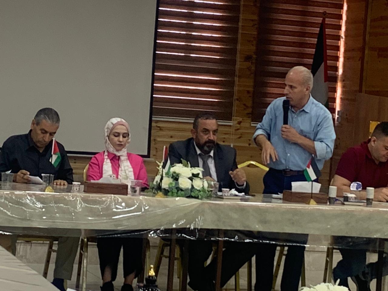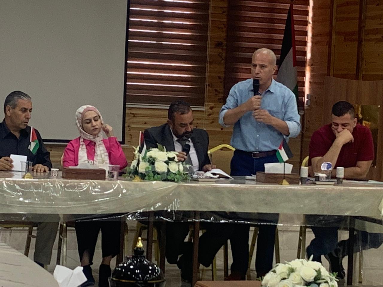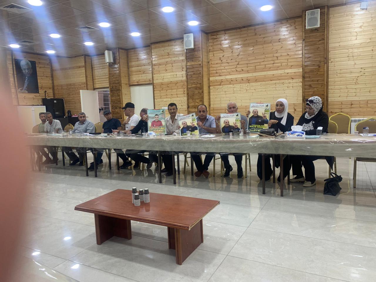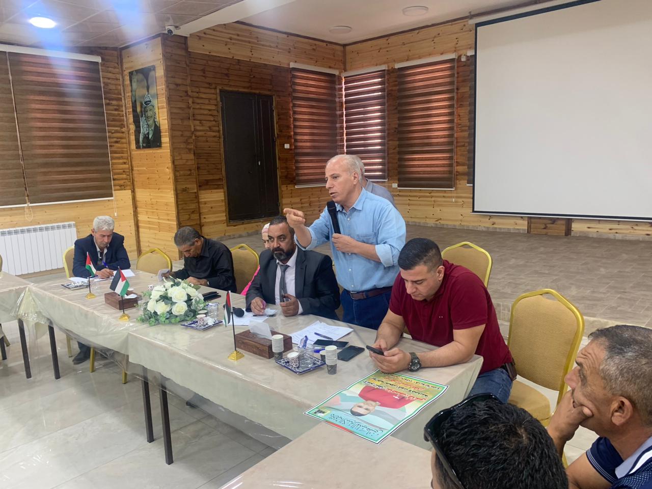 وأدار الاجتماع صفاء أبو سنينة المدير العام في الإدارة العامة في المحافظة وقيس دعنا مدير الدائرة السياسية في المحافظة وشارك العشرات من ممثلي الفعاليات والمؤسسات الرسمية والشعبية ومنسق القوى الوطنية في المحافظة وكوادر من الاسرى المحررين ولجان أهالي الاسرى وذوي الاسرى إضافة الى هيئة التوجيه السياسي والوطني ومديرية التربية والتعليم والحملة الوطنية لاسترداد جثامين الشهداء وممثلي أقاليم حركة فتح وهيئة مقاومة الجدار والاستيطان ...