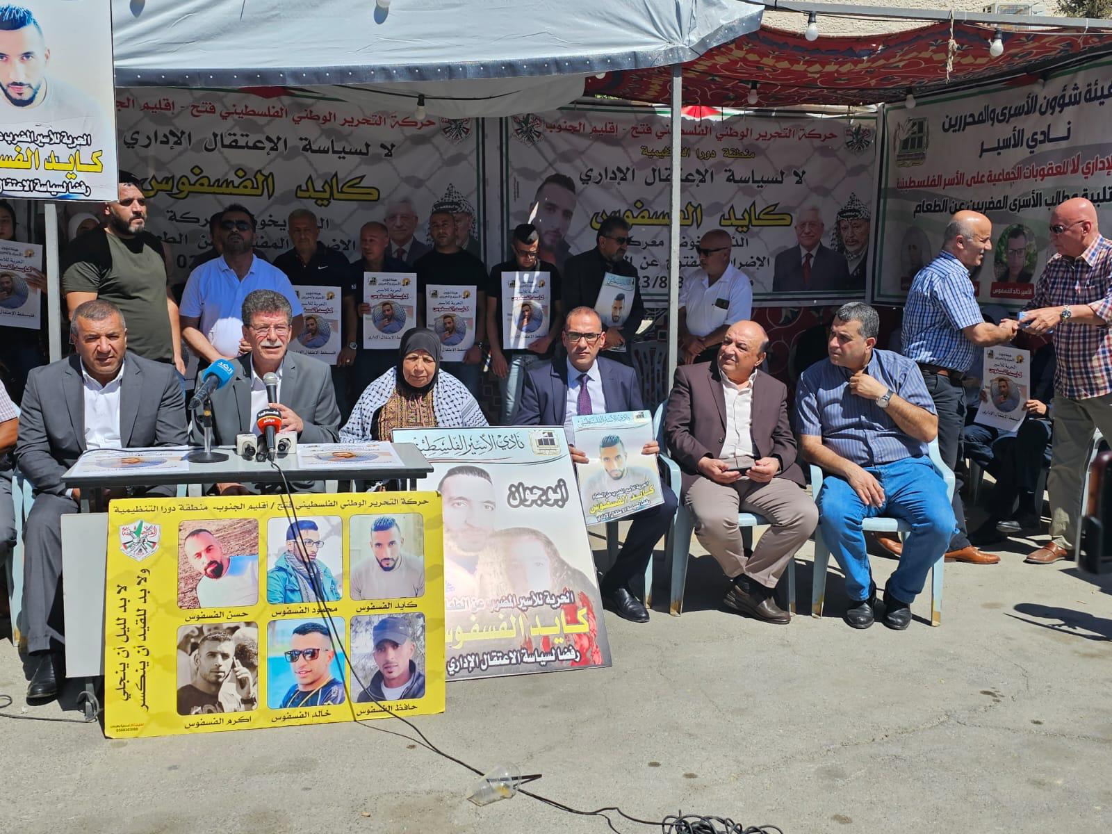 دوار/الخليل اليوم: من المؤتمر الصحفي الخاص حول إضراب الأسير كايد الفسفوس، والذي دعا له نادي الأسير الفلسطيني وهيئة شؤون الاسرى وحركة فتح إقليم الجنوب ( منطقة دورا التنظيمية ) ولجنة أسرى الجنوب، للوقوف على اخر تطورات معركة الاضراب المفتوح عن الطعام والتي يخوضها الأسير البطل الفسفوس منذ تاريخ 2023/8/3 والموجود في عزل عسقلان في ظل تدهور خطير على وضعه الصحي.