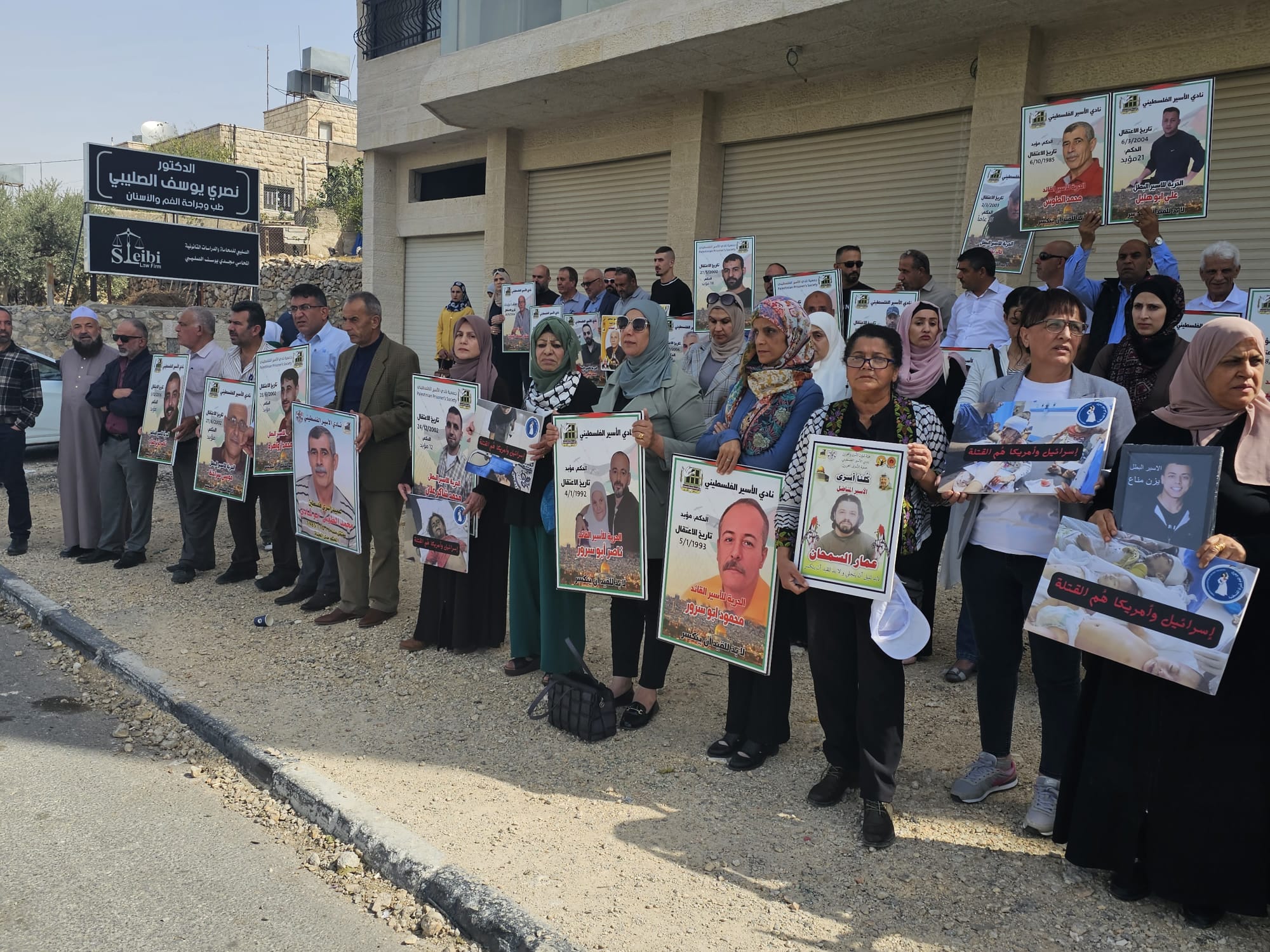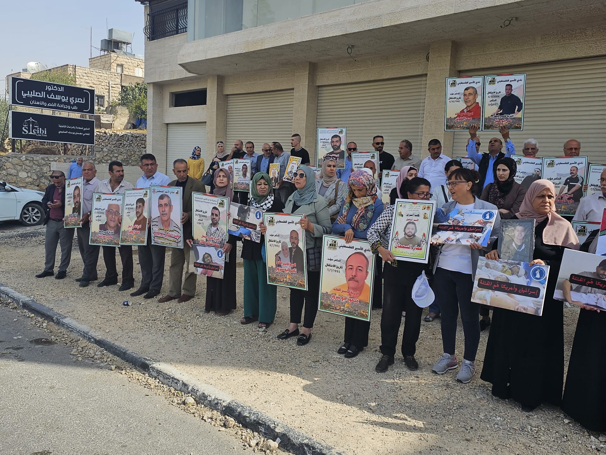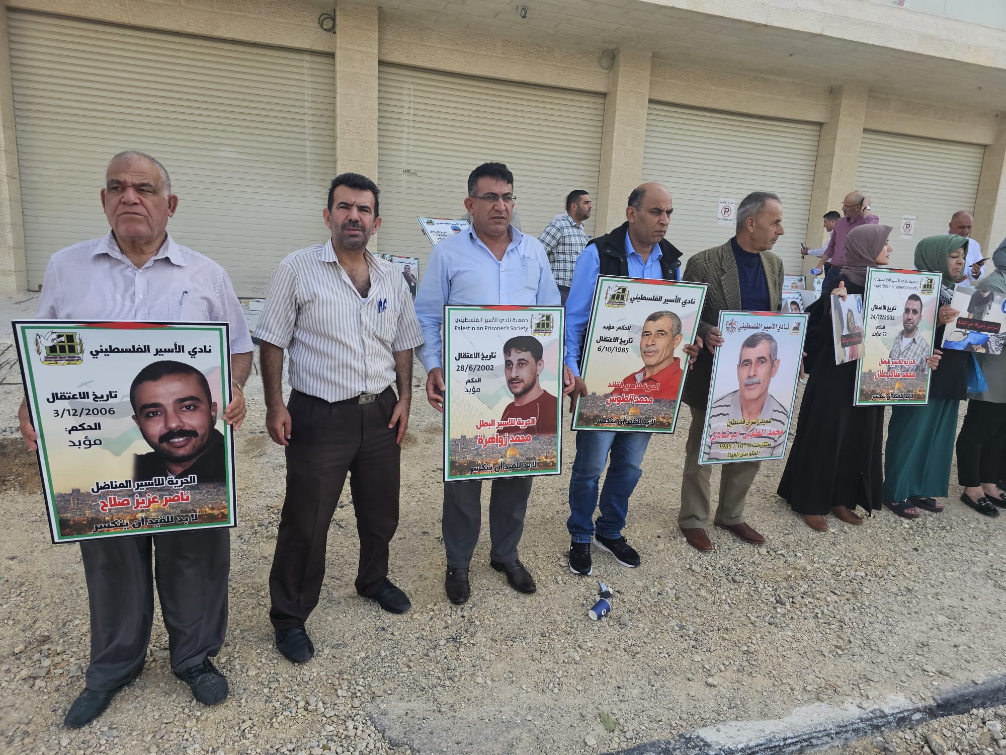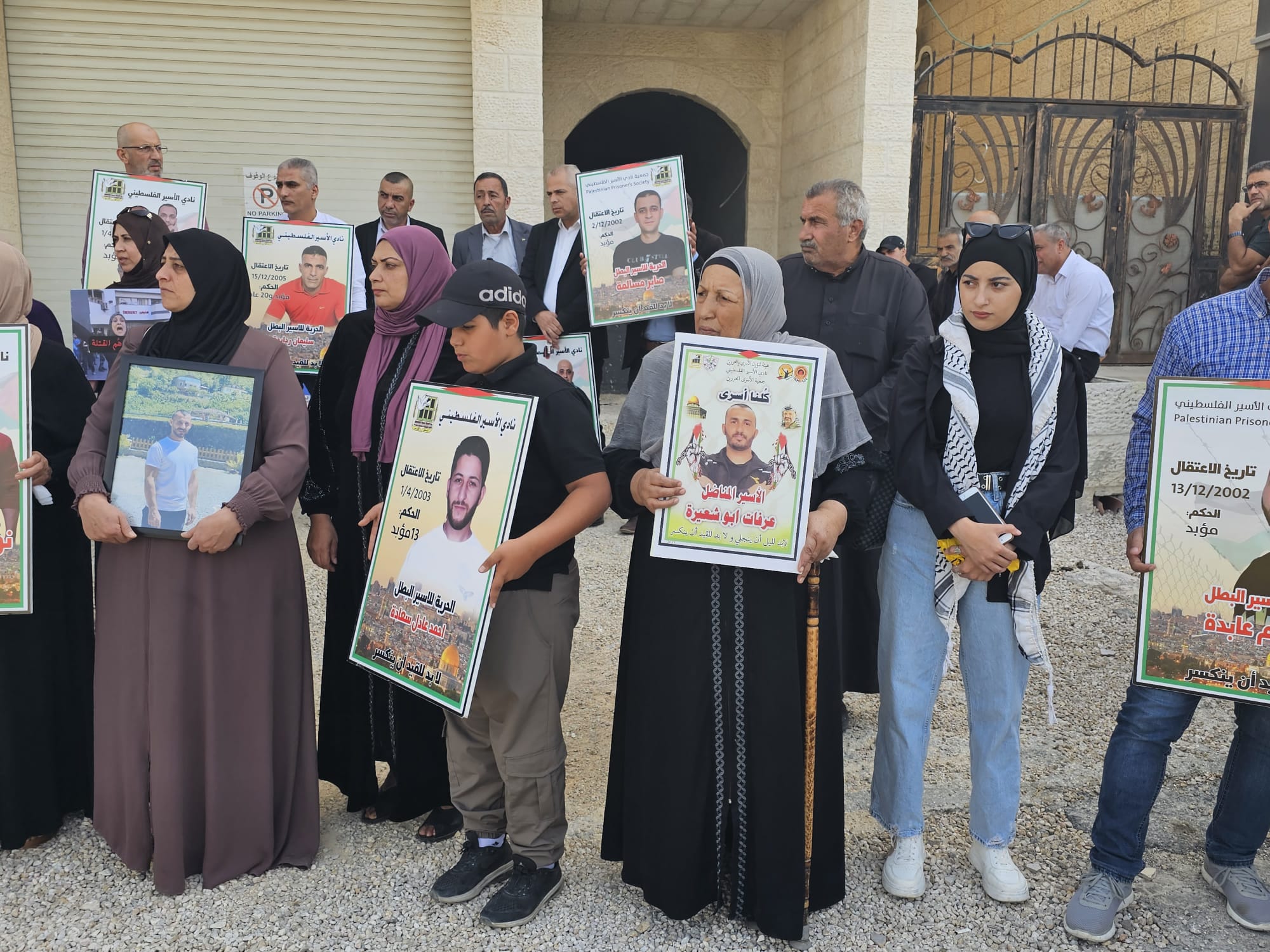 جانب من فعالية الدعم والاسناد التي نظمها نادي الاسير الفلسطيني وهيئة الاسرى وجمعية الاسرى المحررين وبمشاركة أهالي الاسرى ومؤسسات وفعاليات محافظة بيت لحم دعما لصمود الاسرى والاسيرات في سجون الاحتلال و رفضا لجرائم الإبادة الجماعية التي تنفذها طائرات الاحتلال بحق اهلنا في قطاع غزة ورفع المشاركين صور الاسرى وصور شهداء المجازر في غزة