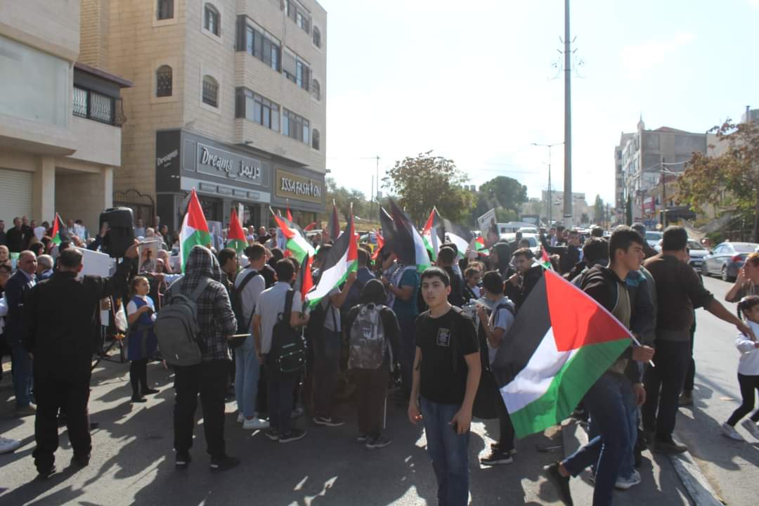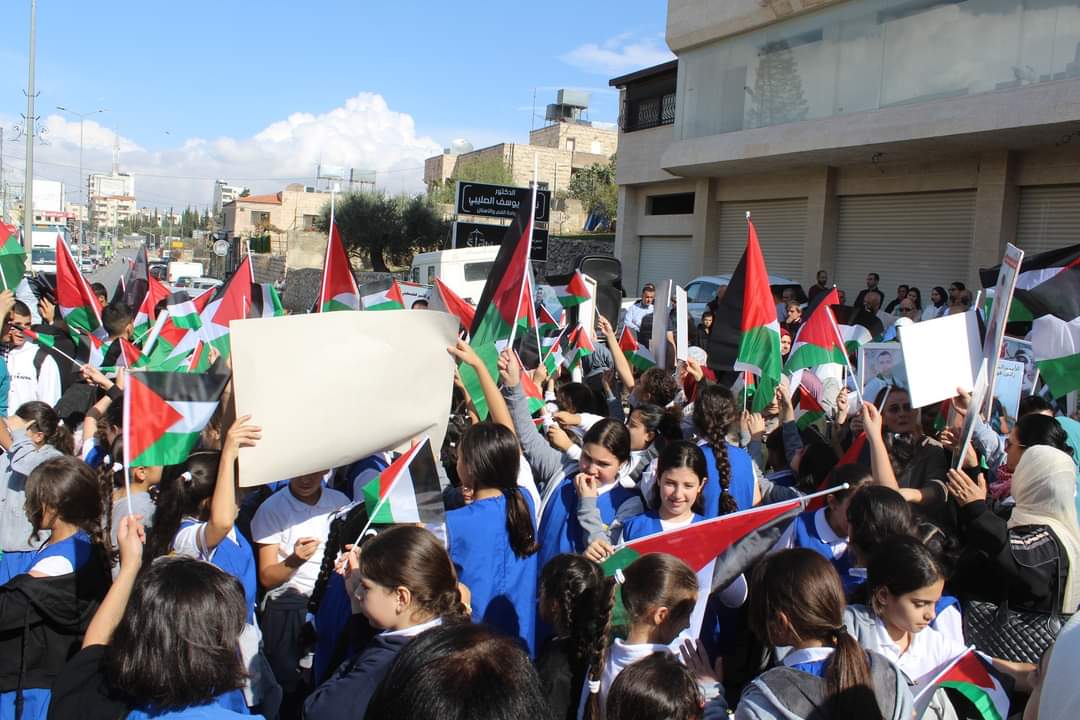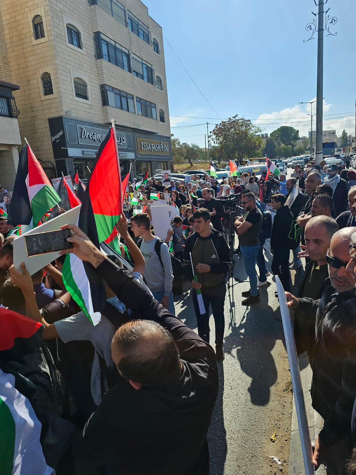 جانب من التظاهرة الجماهيرية الاي نظمت ظهر اليوم امام مقر الصليب الاحمر في بيت لحم انتصارا لدماء الشهداء في غزة والضفة واسنادا للاسرى والاسيرات في سجون الاحتلال الاسرائيلي