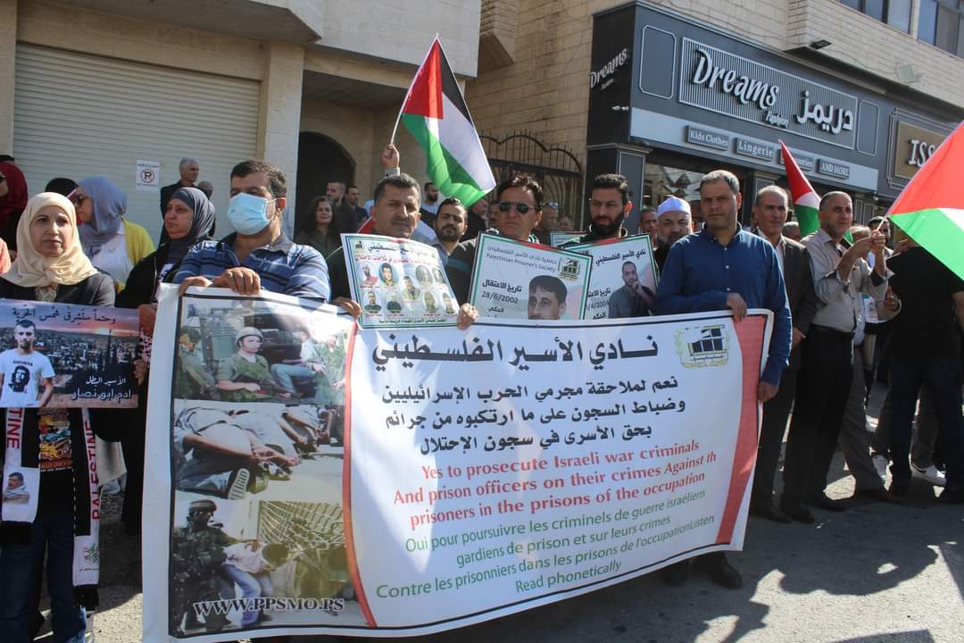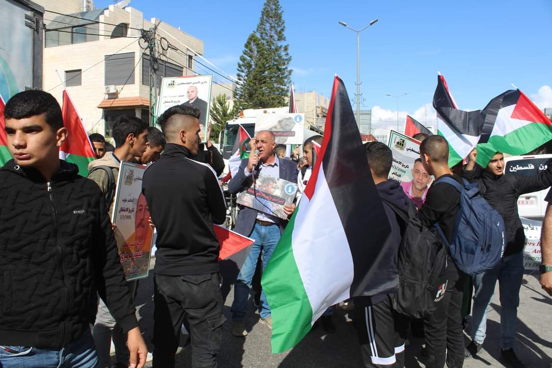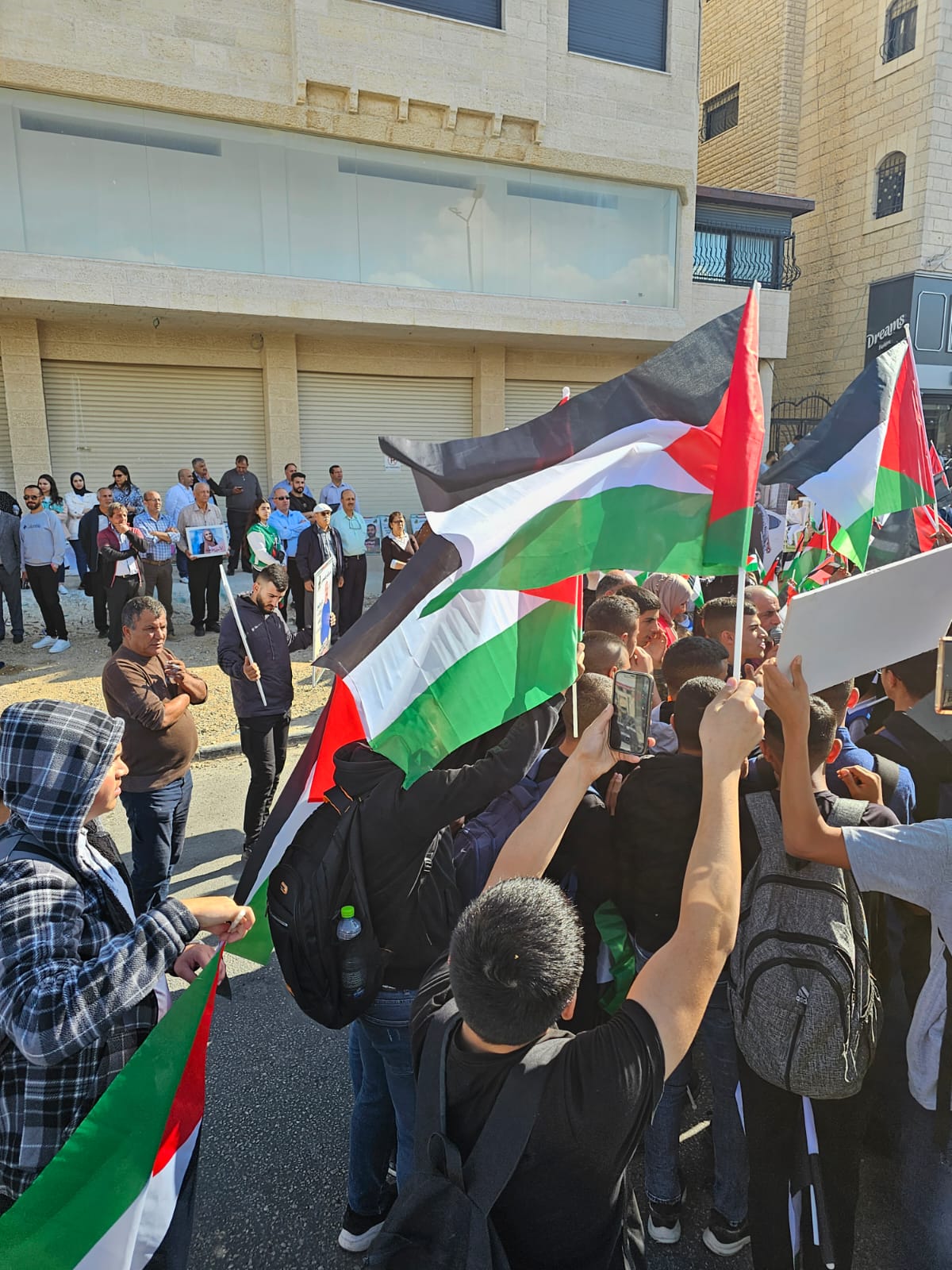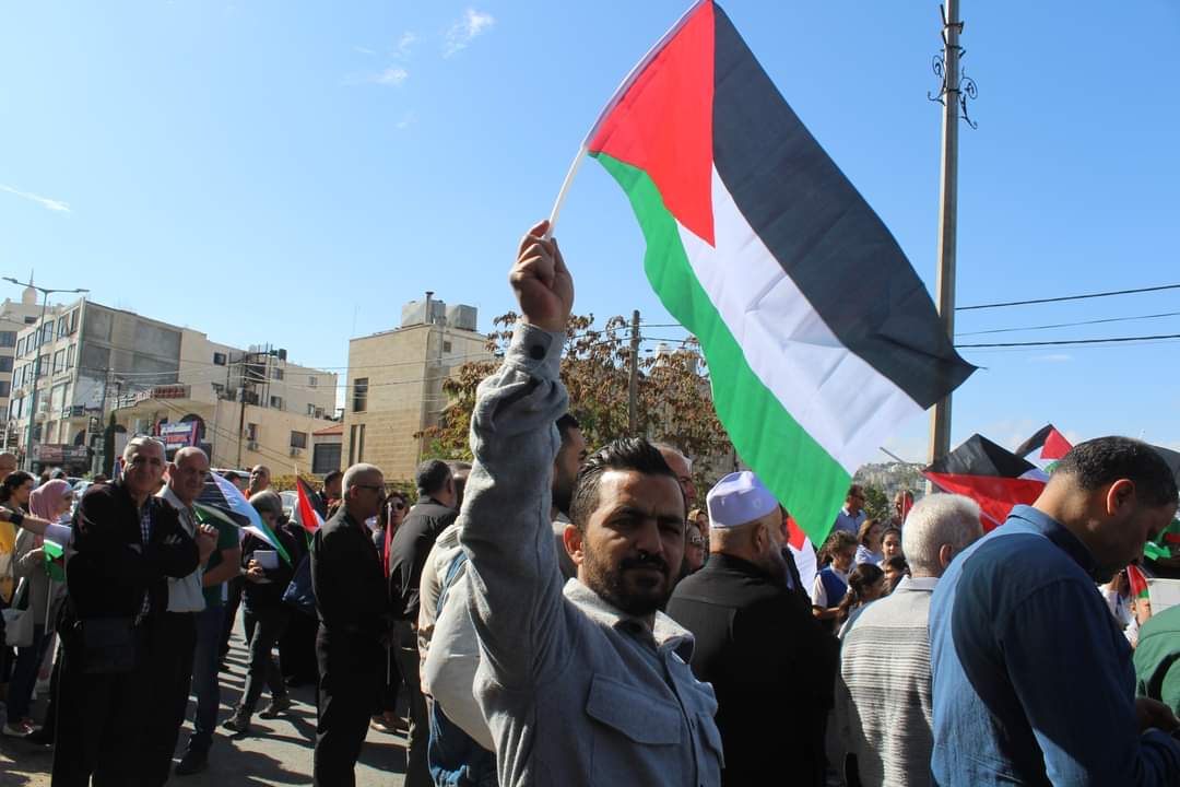 جانب من التظاهرة الجماهيرية الاي نظمت ظهر اليوم امام مقر الصليب الاحمر في بيت لحم انتصارا لدماء الشهداء في غزة والضفة واسنادا للاسرى والاسيرات في سجون الاحتلال الاسرائيلي