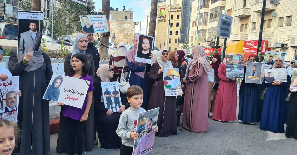 اليوم من أمام دوار المنارة في رام الله: عائلات الأسرى يواصلون تنفيذ وقفات لرفع صوت أبنائهم الأسرى الذين يواجهون عمليات تعذيب وتنكيل مضاعفة بعد السابع من أكتوبر