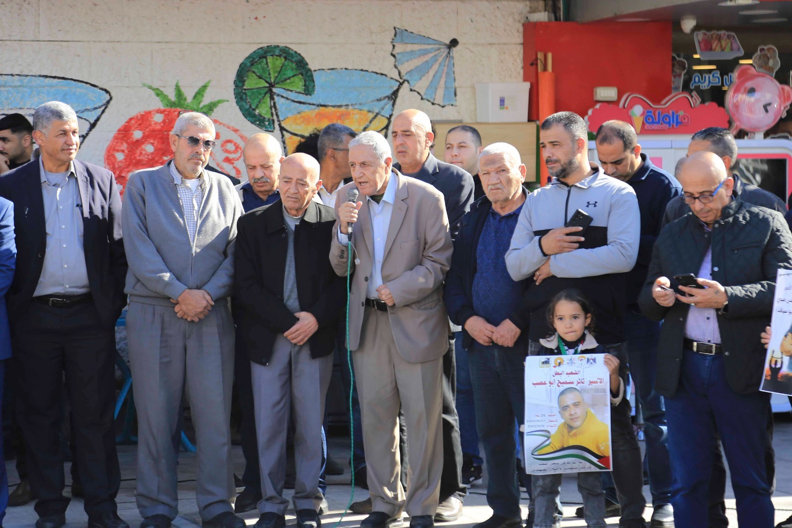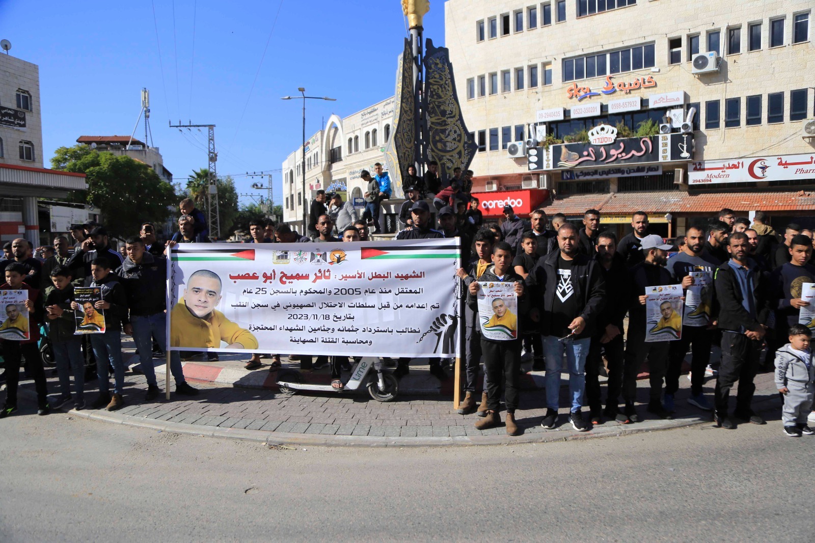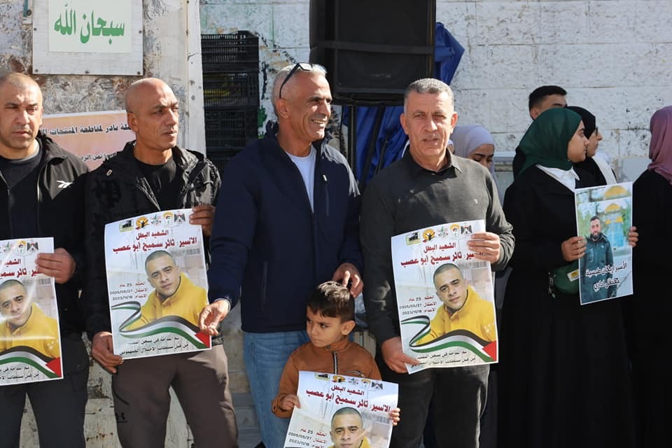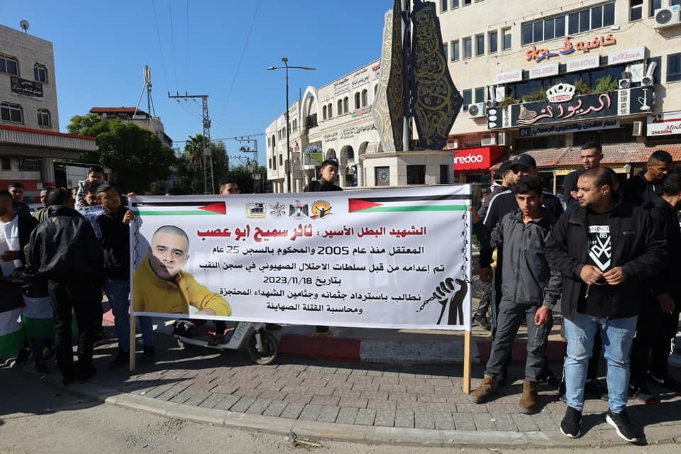 نظمت هيئة شؤون الأسرى والمحررين ونادي الأسير الفلسطيني وحركة التحرير الوطني الفلسطيني فتح/ اقليم قلقيلية والقوى الوطنية وفعاليات المحافظة وقفة منددة باعدام الأسير ثائر سميح ابو عصب والذي استشهد في سجن النقب اثر الاعتداء عليه بالضرب من قبل ادارة السجن، ووفاء لاسرانا واسيراتنا الذين يتعرضون للتنكيل اليومي والقتل والحرمان من ابسط حقوقهم، ورفضا لاستمرار المجازر وحرب الابادة بحق ابناء شعبنا في غزة والضفة والقدس، وذلك اليوم في ميدان الشهيد ابو علي اياد وسط مدينة قلقيلية.