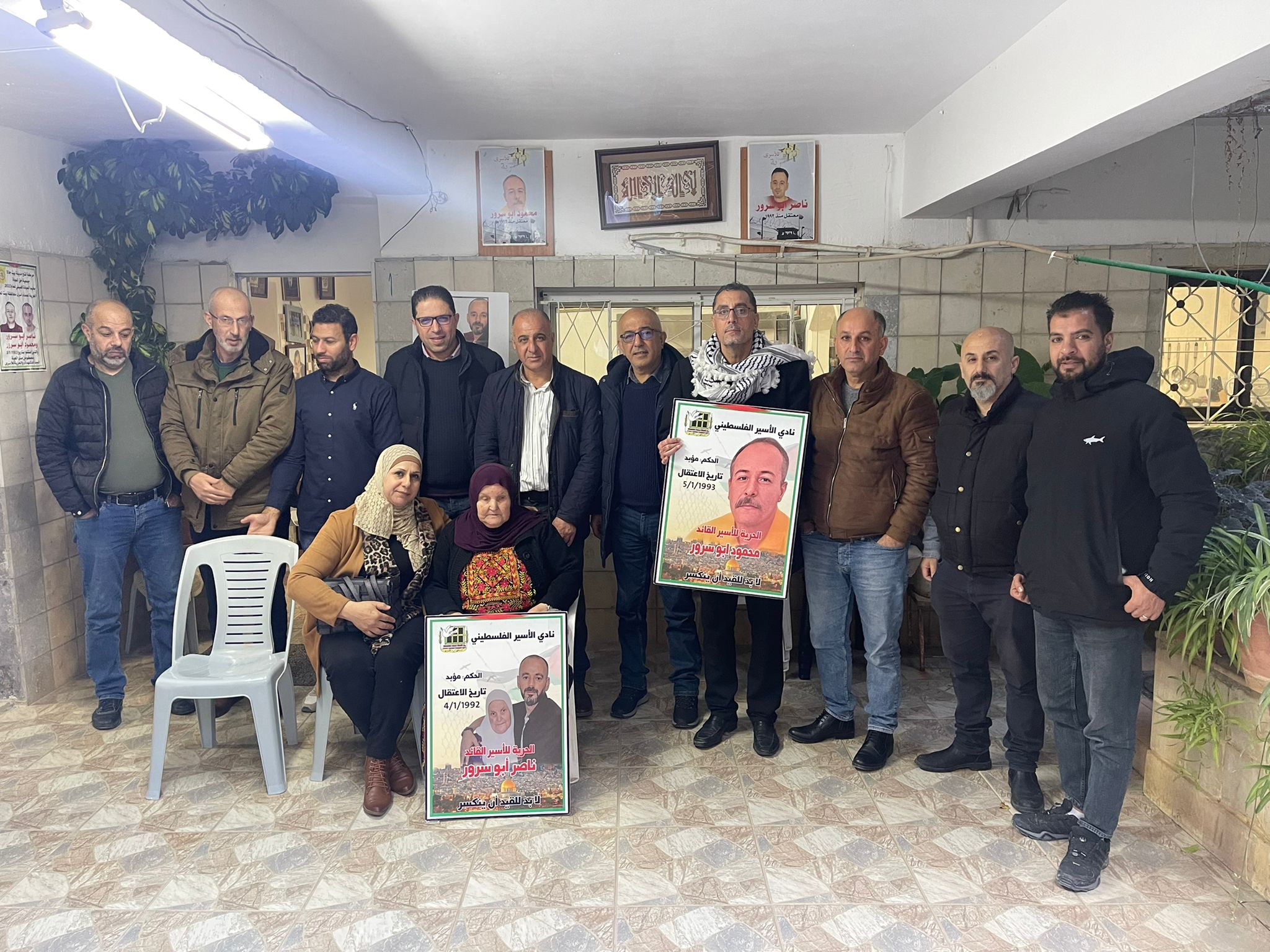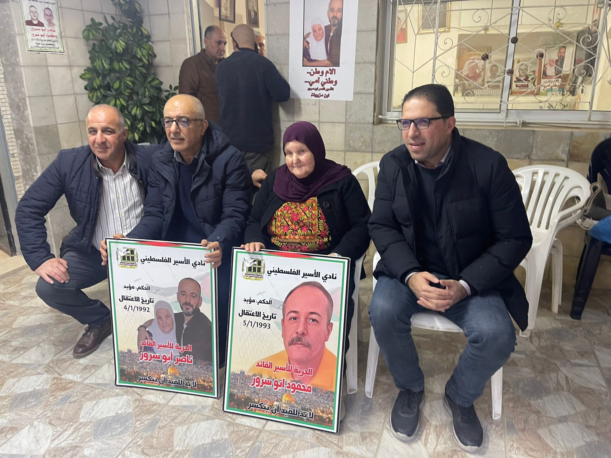 بيت لحم - زار وفد من مؤسسات الاسرى في محافظة بيت لحم واعضاء المجلس الثوري لحركة فتح منزل عائلة الاسيرين ناصر ومحمود ابو سرور بمناسبة دخولهم ٣٢ عام على اعتقالهم في سجون الاحتلال الاسرائيلي حيث التقوا بوالدة الاسير ناصر مزيونة واشقاء الاسير محمود مصطفى واحمد وعبر عن تضامنهم مع الاسرى.