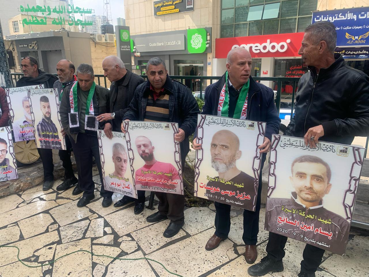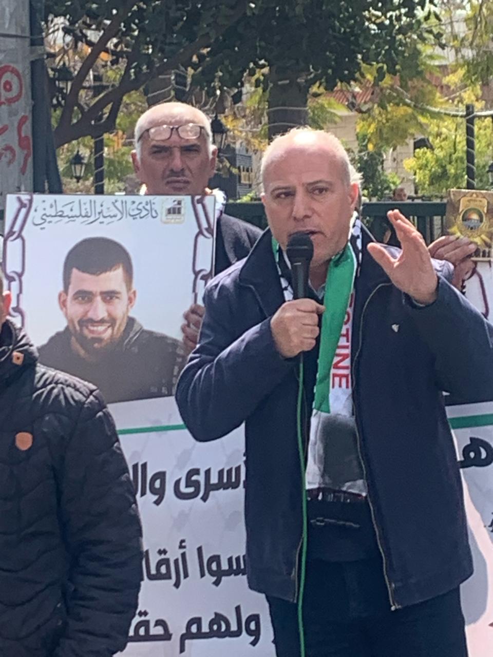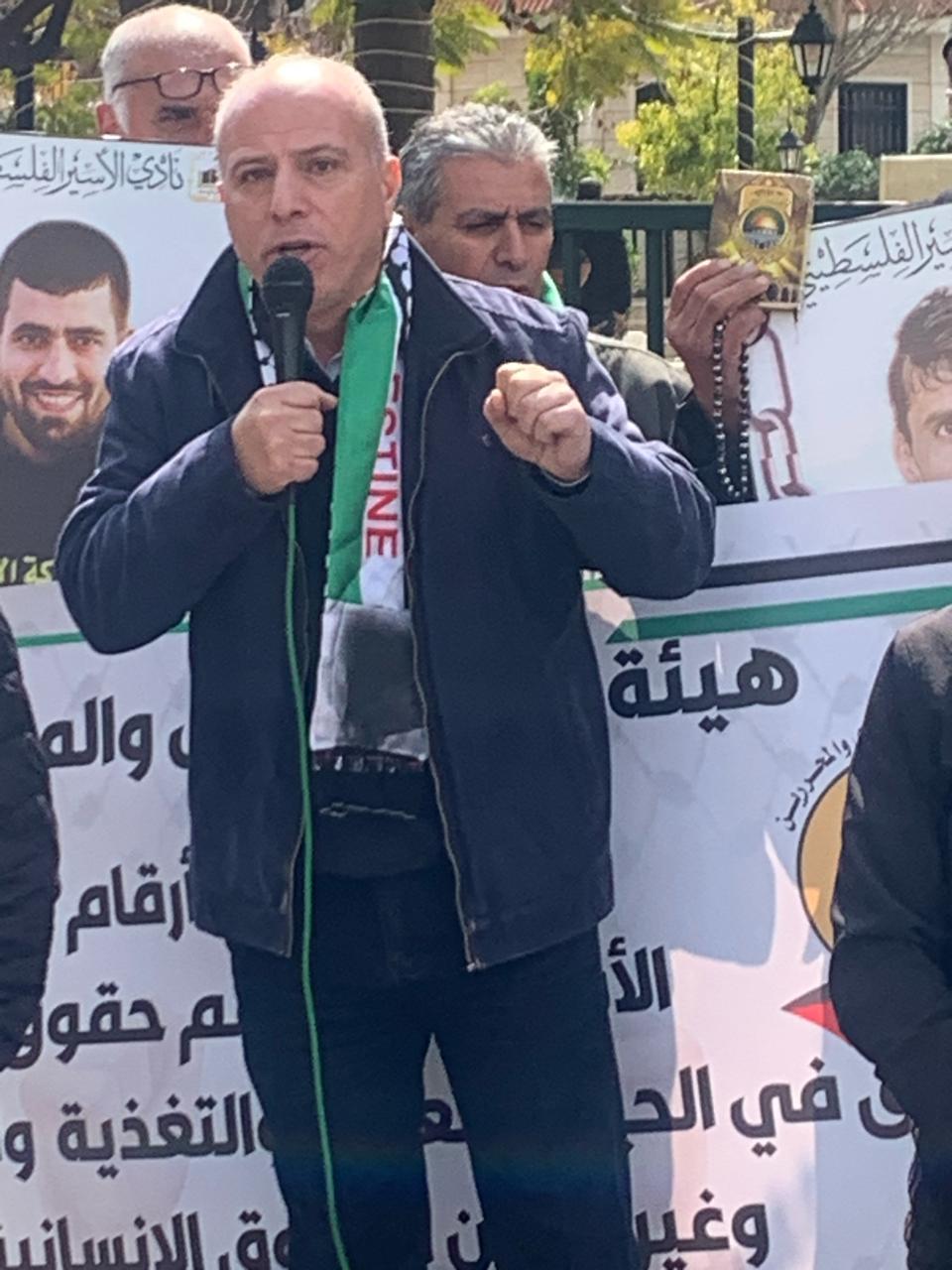 ويافطات منددة بالجريمة المنظمة التي ترتكب بحق الاسرى والاسيرات والتي أوصلت الوضع داخل سجون الاحتلال الى وضع كارثي ينذر بخطر كبير يحدق بأسرانا وأسيراتنا في ظل انشغال العالم بالحرب واستفراد إدارة سجون الاحتلال بهم وصمت مريب للمؤسسات الدولية وشلل تام في دور المنظمة الدولية للصليب الأحمر في متابعة أوضاع الاسرى داخل سجون الاحتلال ...