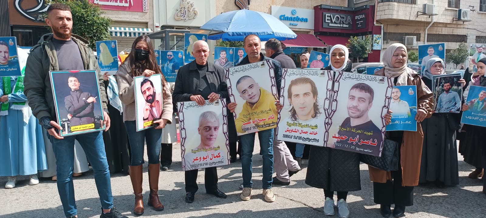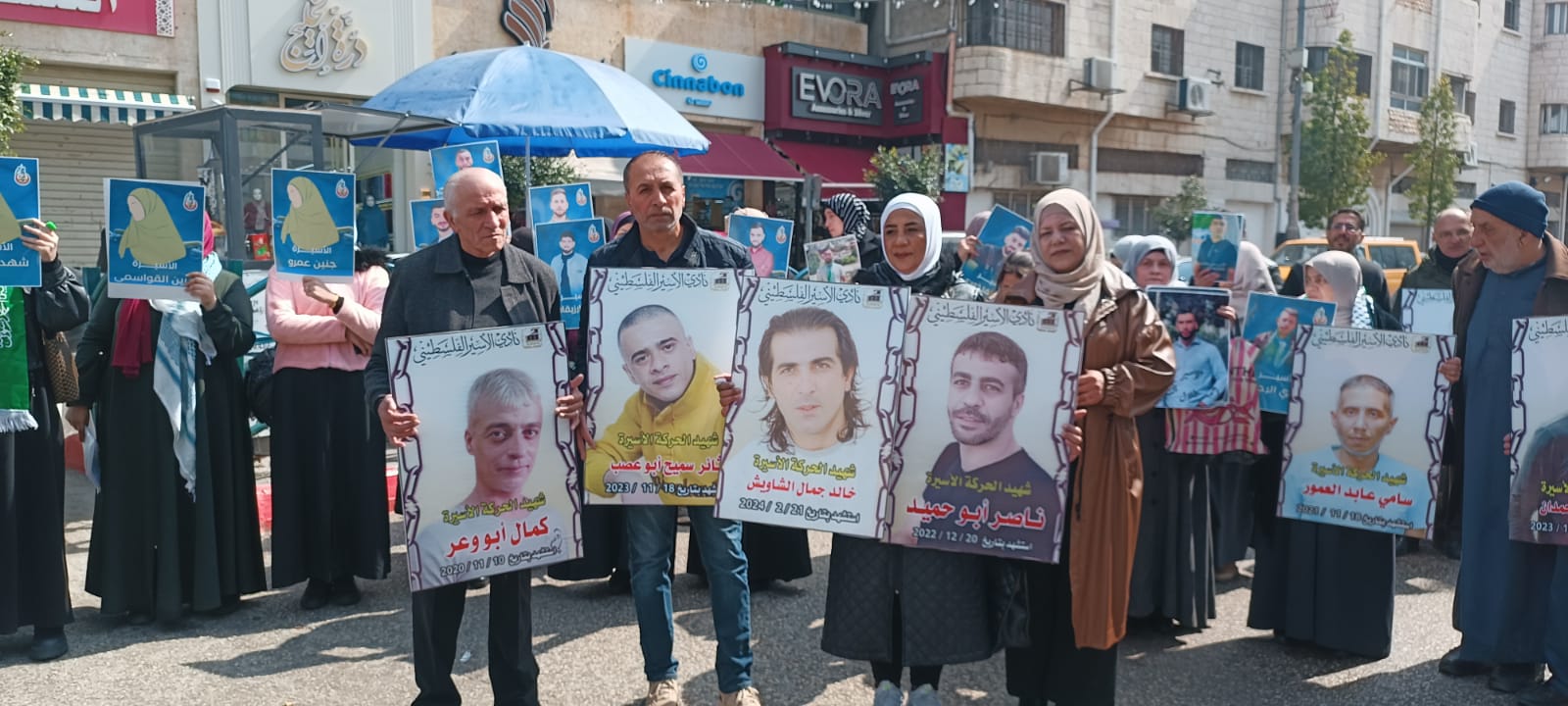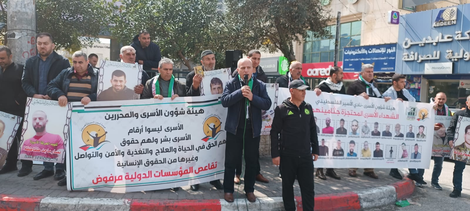 ويافطات منددة بالجريمة المنظمة التي ترتكب بحق الاسرى والاسيرات والتي أوصلت الوضع داخل سجون الاحتلال الى وضع كارثي ينذر بخطر كبير يحدق بأسرانا وأسيراتنا في ظل انشغال العالم بالحرب واستفراد إدارة سجون الاحتلال بهم وصمت مريب للمؤسسات الدولية وشلل تام في دور المنظمة الدولية للصليب الأحمر في متابعة أوضاع الاسرى داخل سجون الاحتلال ...