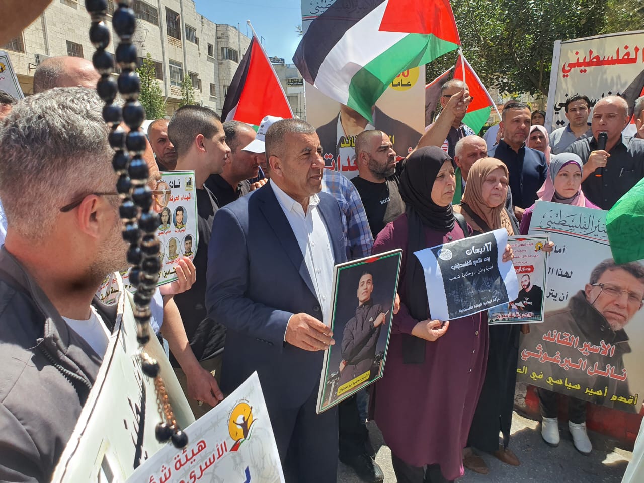 إحياء ليوم الأسير الفلسطيني نظم نادي الأسير الفلسطيني ، وهيئة شؤون الأسرى والقوى الوطنية، ولجان أهالي الأسرى وقفة وطنية جماهيرية دعما واسنادا للأسرى والاسيرات القابعين في سجون الاحتلال، تحت عنوان ( لننتصر لاسرانا وأسيراتنا في سجون الاحتلال ولتتوقف حرب الإبادة الجماعية بحق أبناء شعبنا في غزة هاشم ) ، وذلك وسط دوار ابن رشد في مدينة الخليل وشارك في الوقفة الوطنية حشد من أبناء المحافظة وفعالياتها، ومحافظ الخليل خالد دودين وممثلي القوى السياسية وعائلات الأسرى وكوادر من الأسرى المحررين، وهيئة التوجيه السياسي والوطني ومؤسسات المحافظة الحكومية وغير الحكومية . ورفع المشاركون في الوقفة صور الأسرى والأسيرات، والأسرى المرضى، والأسرى الشهداء المحتجزة جثامينهم في ثلاجات الاحتلال ولافتات خطت عليها كلمات تحمل حكومة الاحتلال المسؤولية الكاملة عن حياة الأسرى والاسيرات وخاصة الاسرى المرضى، وأخرى تطالب بملاحقة ضباط إدارة السجون في المحاكم الدولية على الفظائع التي يرتكبوها بحق اسرانا واسيراتنا داخل سجون الاحتلال وتخلل المهرجان الوطني العديد من الكلمات التي ألقيت من قبل المشاركين، حيث أشاد الجميع بصمود الاسرى والاسيرات في وجه إدارة السجون منددين جميعا بجرائم الاحتلال المستمرة يوميا بحق الاسرى وبحق أبناء شعبنا في غزة هاشم ..