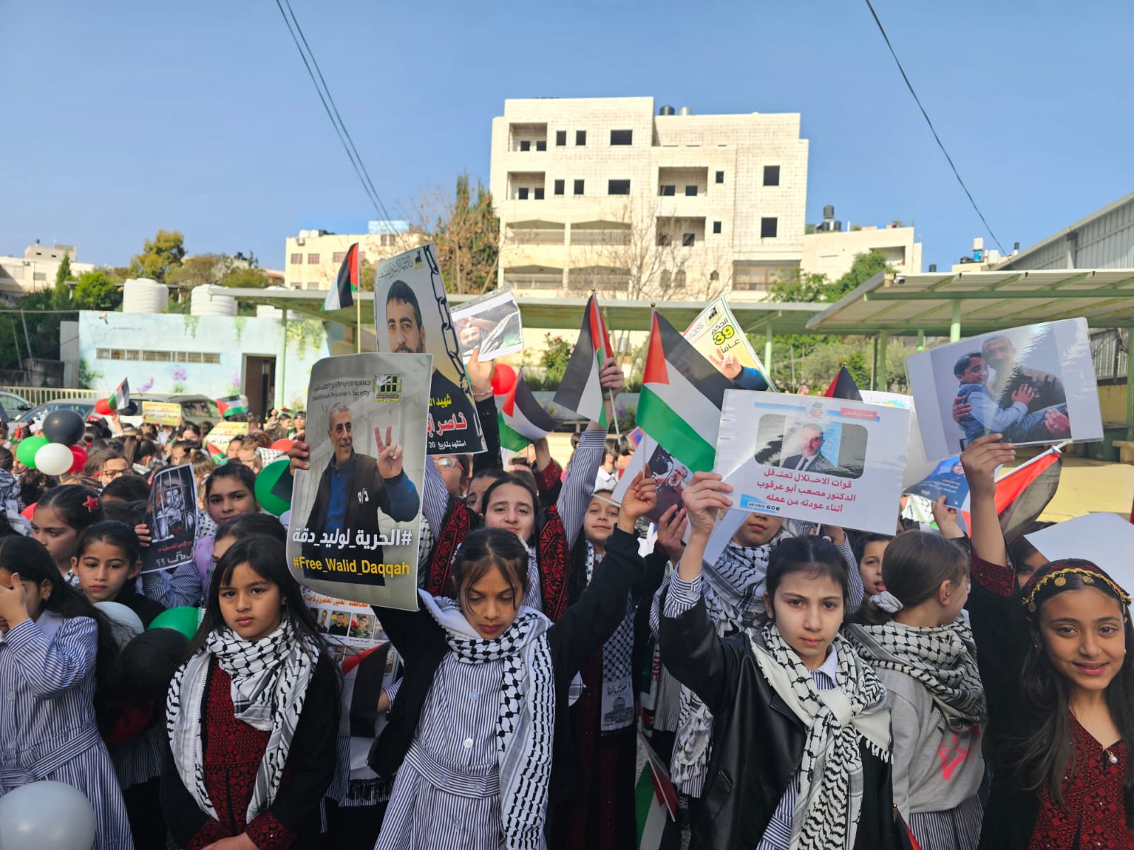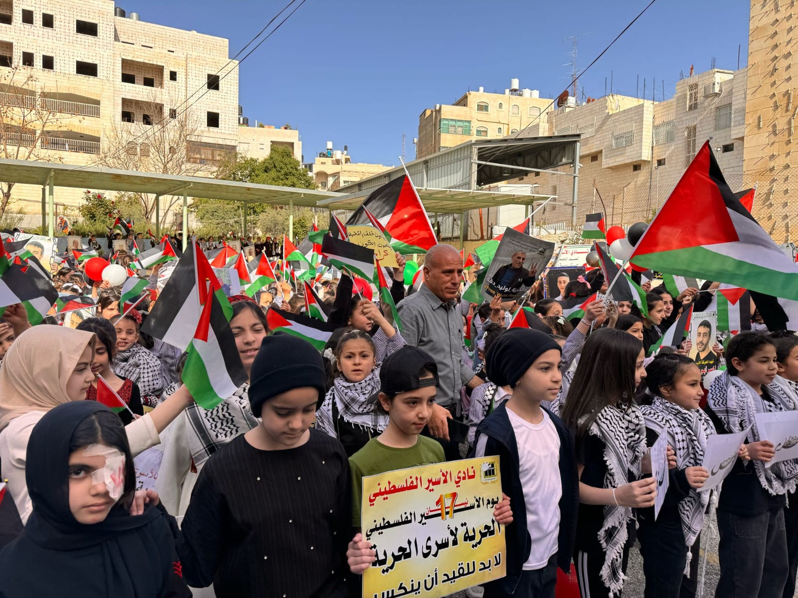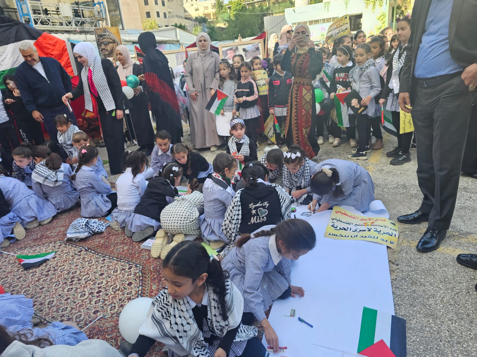 تحت رعايــــــة وزارة التربيــــــــــــــة والتعليم مديرية وسط الخليــــــــل ونادي الأسير الفلسطيني مدرسة بنات الصفا الأساسية ينظمان حفلا وطنيا بمناسبة يوم الأسير الفلسطيني