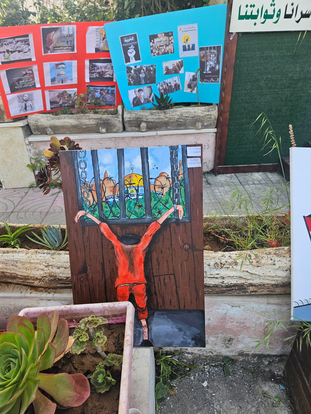 وكانت إدارة المدرسة وطالباتها قد نظمن العديد من الأنشطة التعبيرية والمؤثرة عن كافة الاسرة والاسيرات ونصب خيمة وسط ساحة المدرسة علق بداخلها صور الاسرى والاسيرات وصور شهداء الحركة الاسيرة مع فقرة فنية تضمنت قيام الزهرات برسم صور الاسرى وعلم فلسطين ورسومات مؤثرة عن الاسرى علما ان العشرات من الطالبات اللواتي قدمنا فقرات مؤثرة هن من بنات الاسرى القابعين في سجون الاحتلال .مع رفع صور كافة شهداء الحركة الاسيرة المحتجزة في ثلاجات الاحتلال .