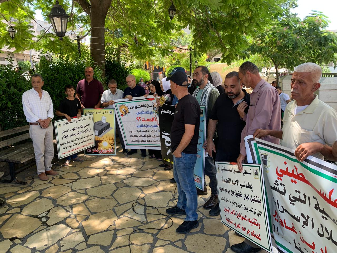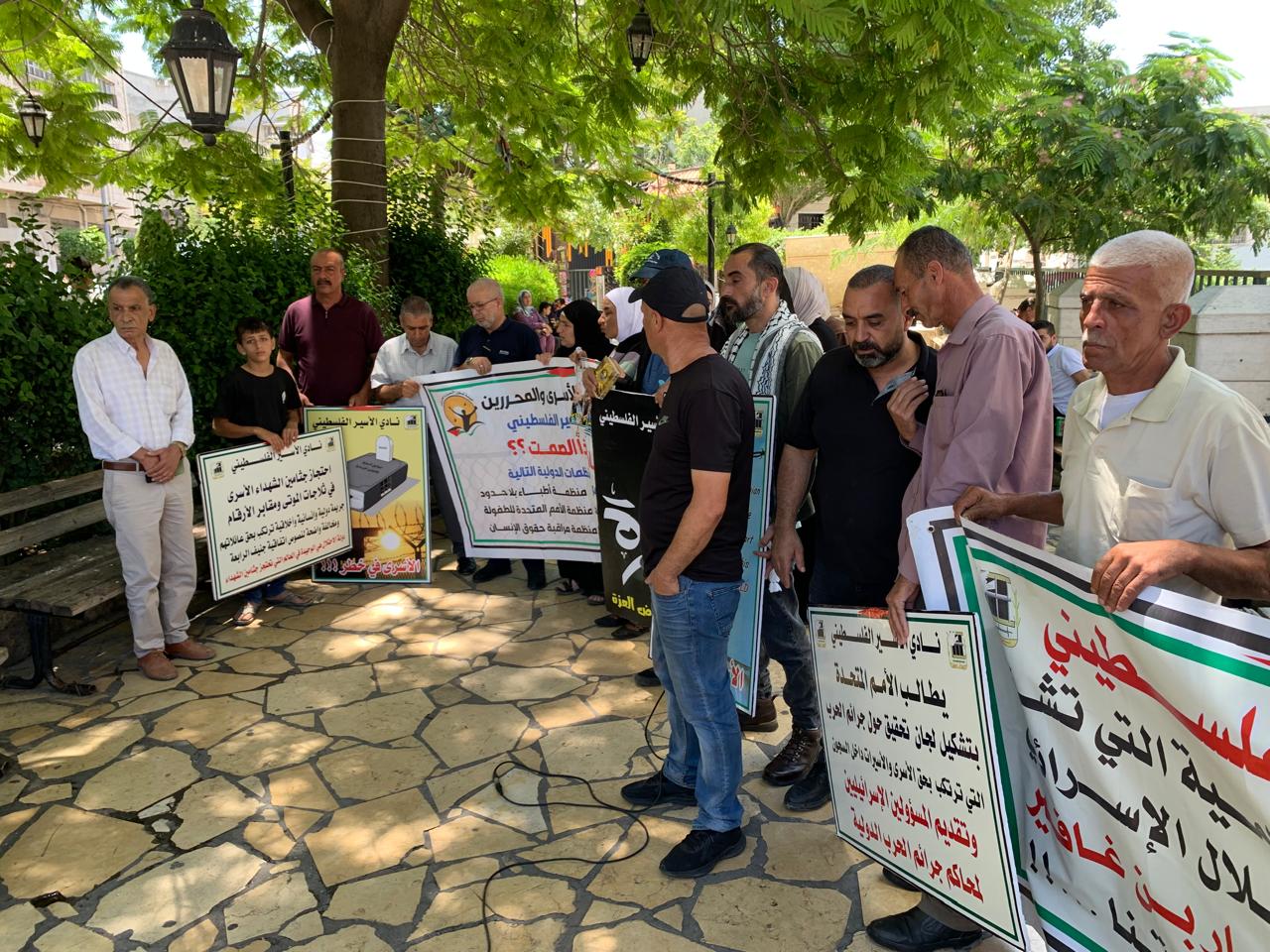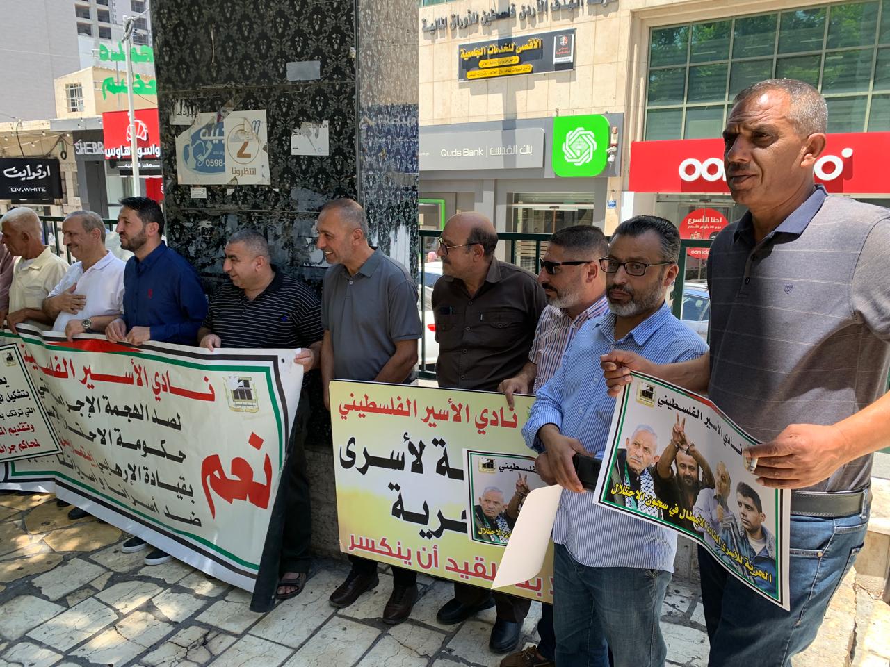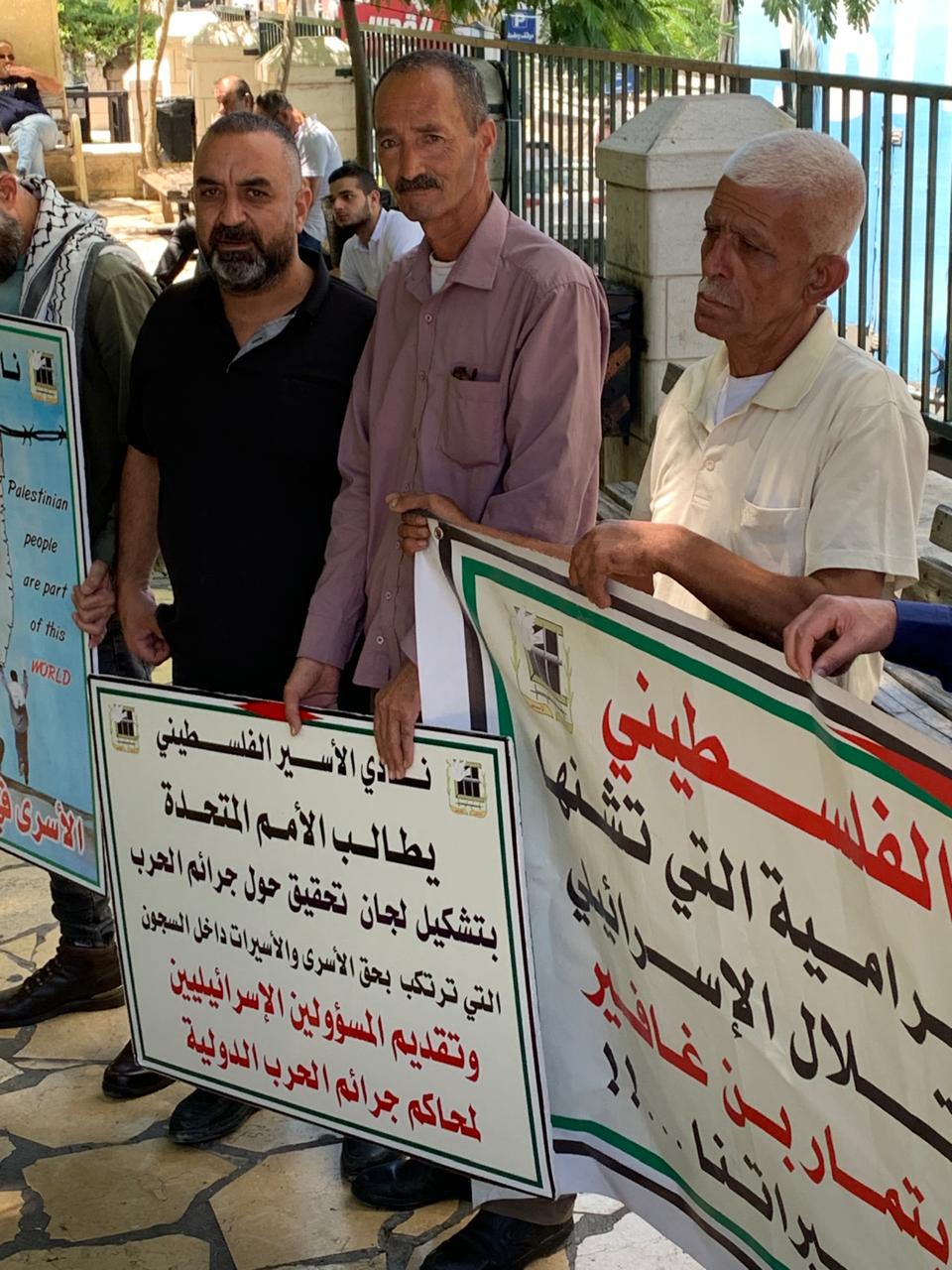 ورفع المشاركون صور الأسرى والأسيرات وشهداء الحركة الأسيرة المحتجزة جثامينهم في ثلاجات الاحتلال، ويافطات كتبت عليها شعارات منددة بالجرائم التي ترتكب بحق الأسرى، خاصة الشهادات التي خرجت من أسرى غزة وما يتعرضون له من عمليات تنكيل وفظائع ترتكب بحقهم.