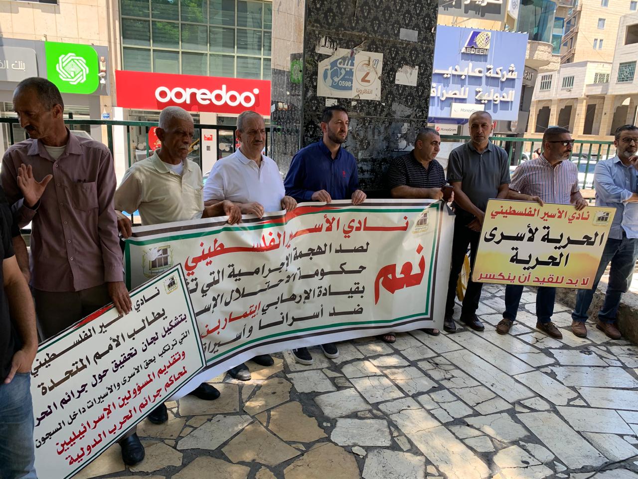 ونظم الوقفة نادي الأسير الفلسطيني وهيئة شؤون الأسرى والمحررين، بمشاركة لجنة اهالي الاسرى وهيئة التوجيه السياسي، والقوى الوطنية، والمؤسسات الرسمية والاهلية بمحافظة الخليل.