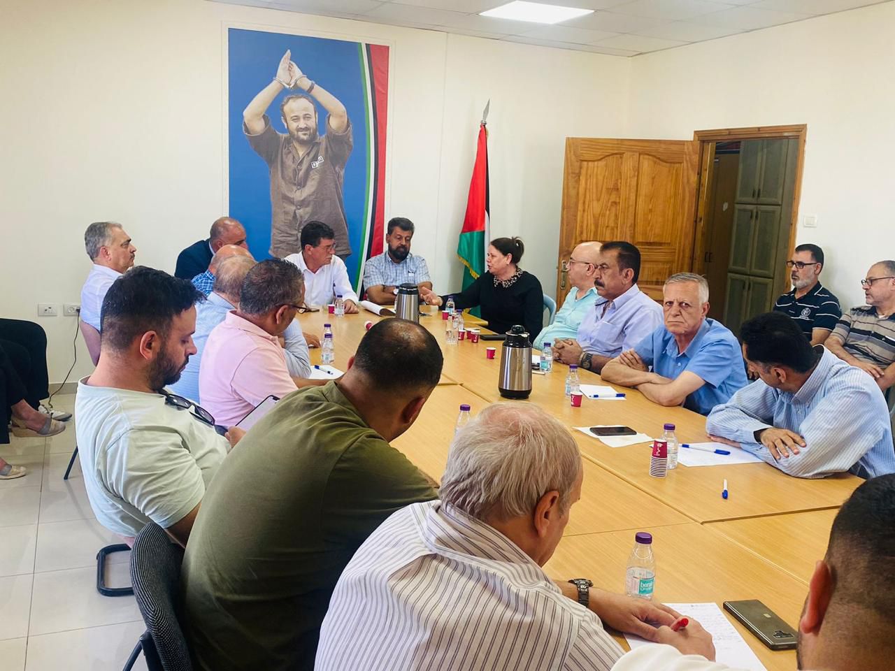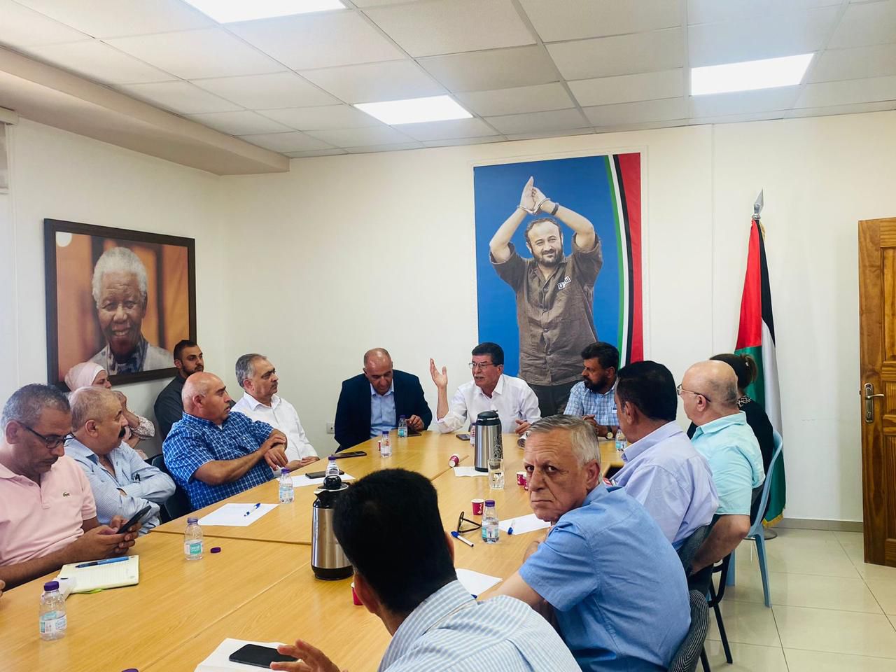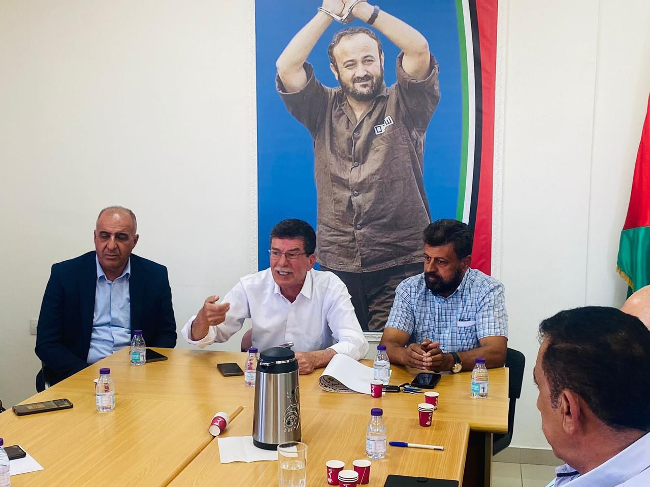 يوم وطني فلسطيني مختلف، نظم ظهر اليوم الاربعاء اجتماعاً في الحملة الشعبية لاطلاق سراح الأسير القائد مروان البرغوثي، بحضور ومشاركة رئيس هيئة شؤون الأسرى والمحررين قدورة فارس، ورئيس نادي الأسير الفلسطيني عبد الله زغاري ، ورئيس الهيئة العليا لمتابعة شؤون الأسرى المحررين أمين شومان، ومسؤولي وكادر من الحملة، ونخبة من ممثلي فصائل العمل الوطني والمؤسساتي وأسرى محررين، وعلى رأسهم عضو المجلس الثوري لحركة فتح القائد فخري البرغوثي، حيث أجمع الحضور والمتحدثين على العمل بشكل مختلف، وبمسؤولية وطنية وحدوية عنوانها العريض حرب الابادة التي يتعرض لها الشعب الفلسطيني في غزة والضفة، والهجمة الفاشية الغير مسبوقة على اسرانا واسيراتنا