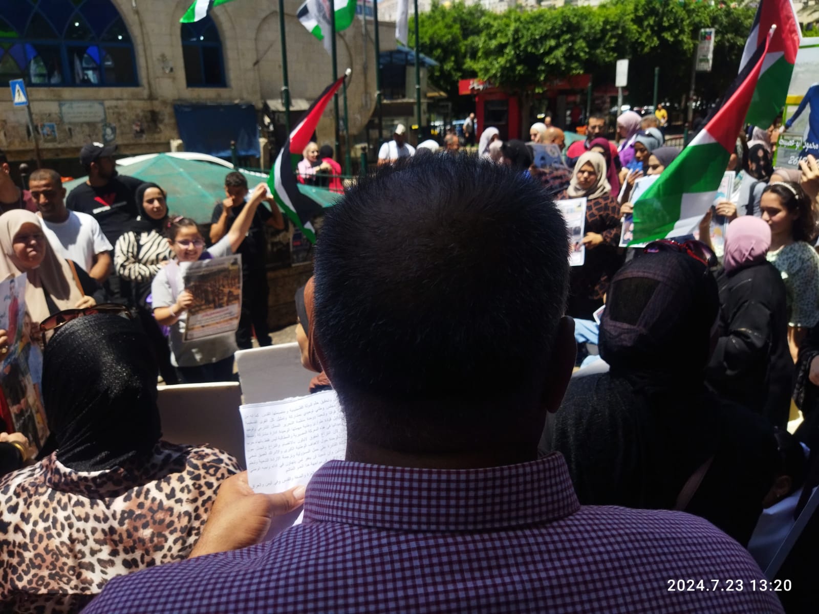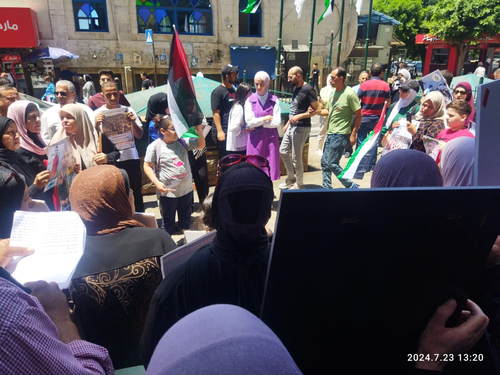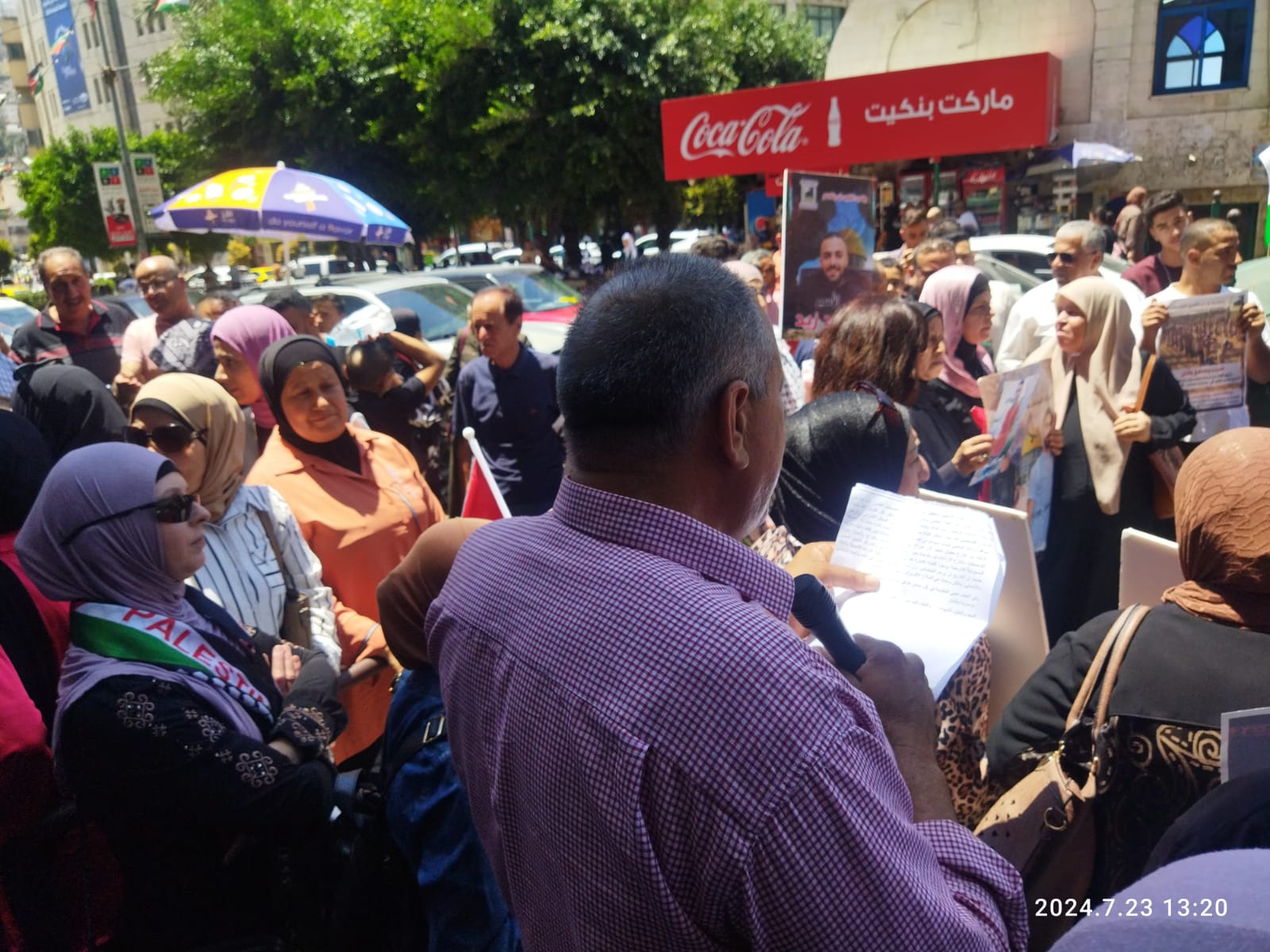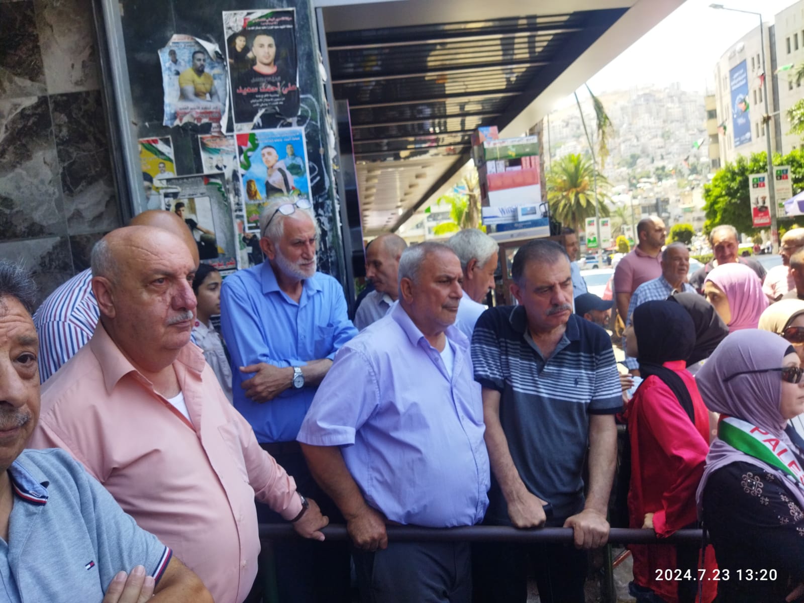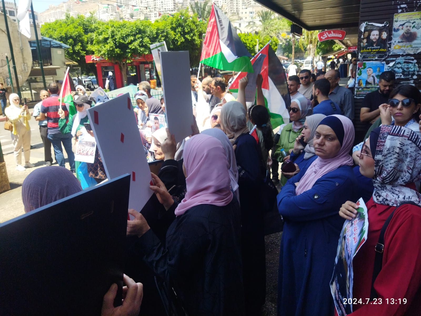 نادي الأسير الفلسطيني واللجنة الوطنية لدعم الأسرى ينظمون وقفة لنصرة غزة والأسرى اليوم في ميدان الشهداء في محافظة نابلس