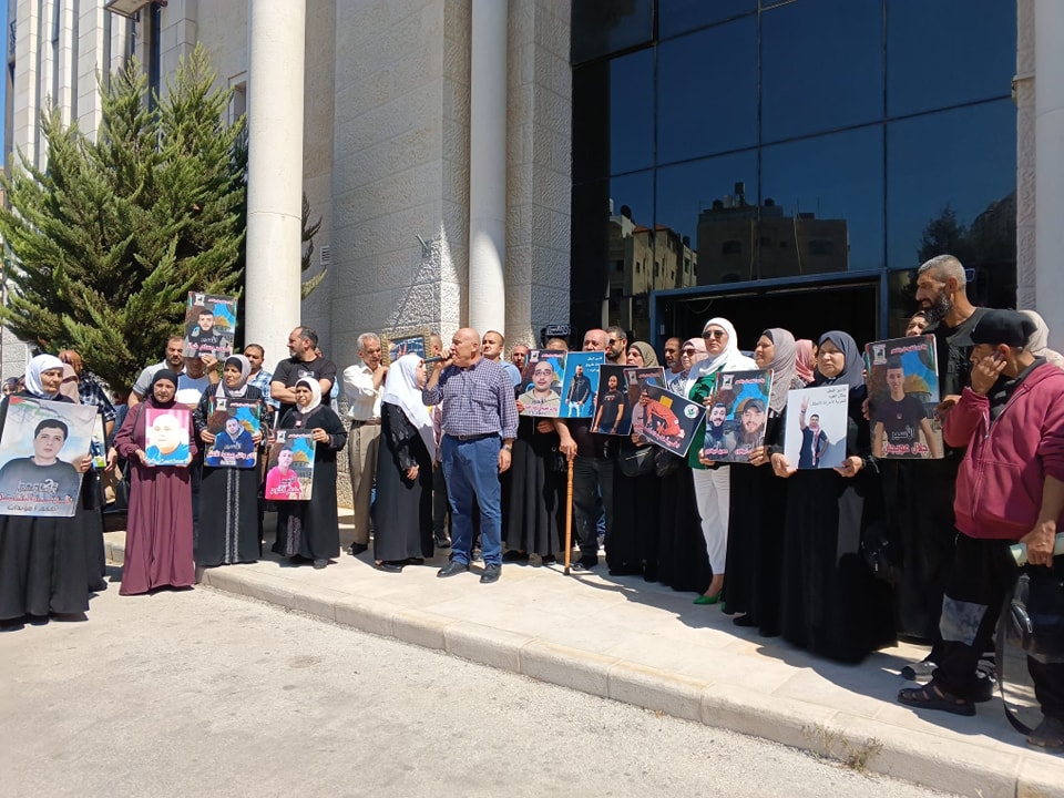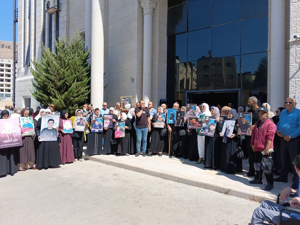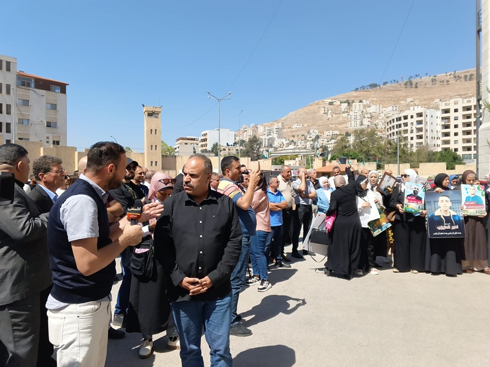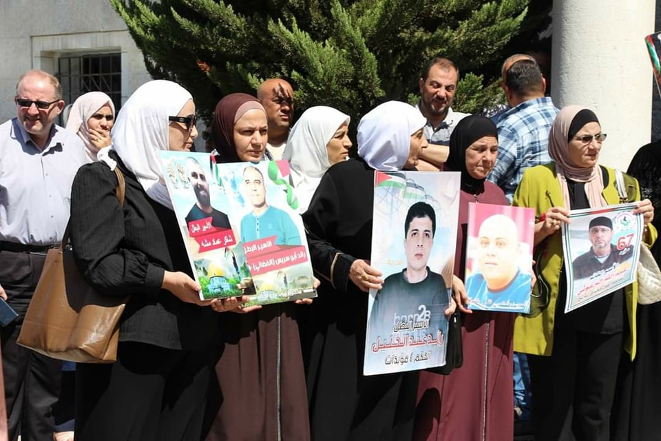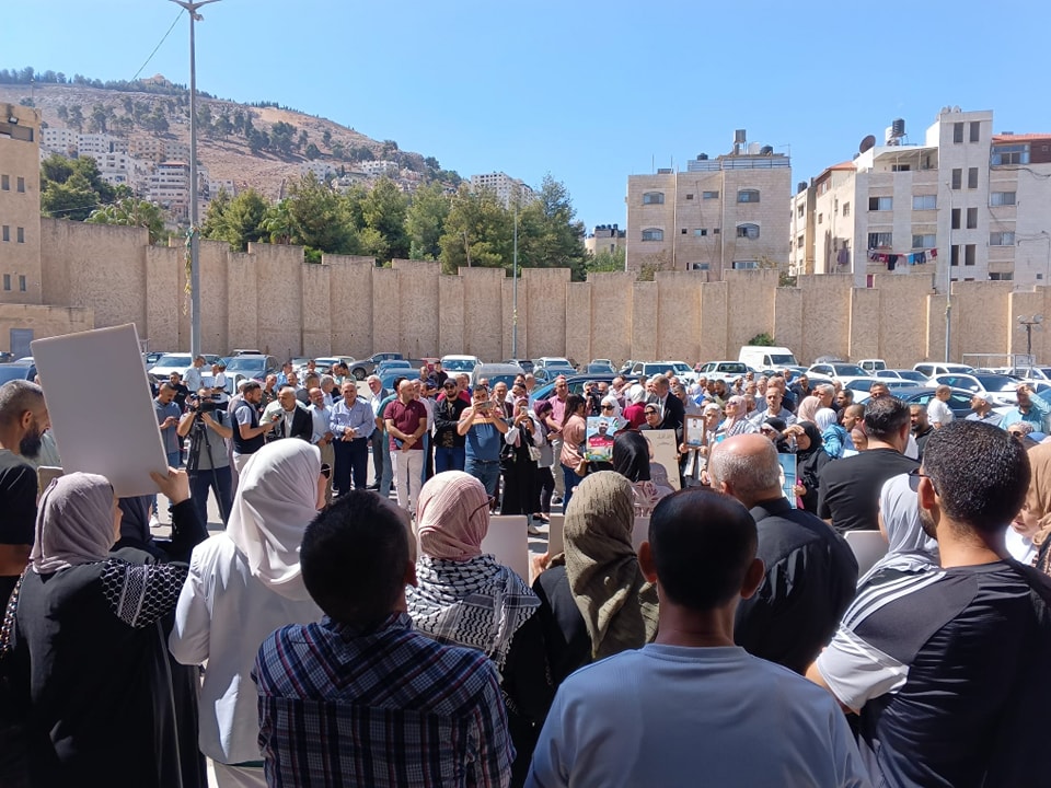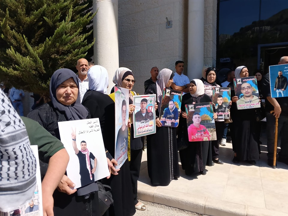 جانب من مشاركة نادي الأسير الفلسطيني في الوقفة الاسنادية نصرة لغزة وللاسرى في ساحة محافظة نابلس