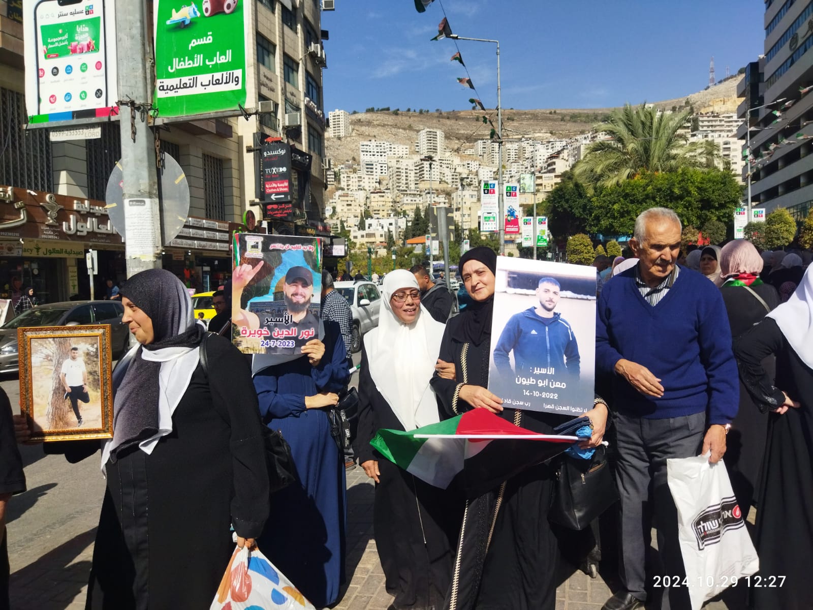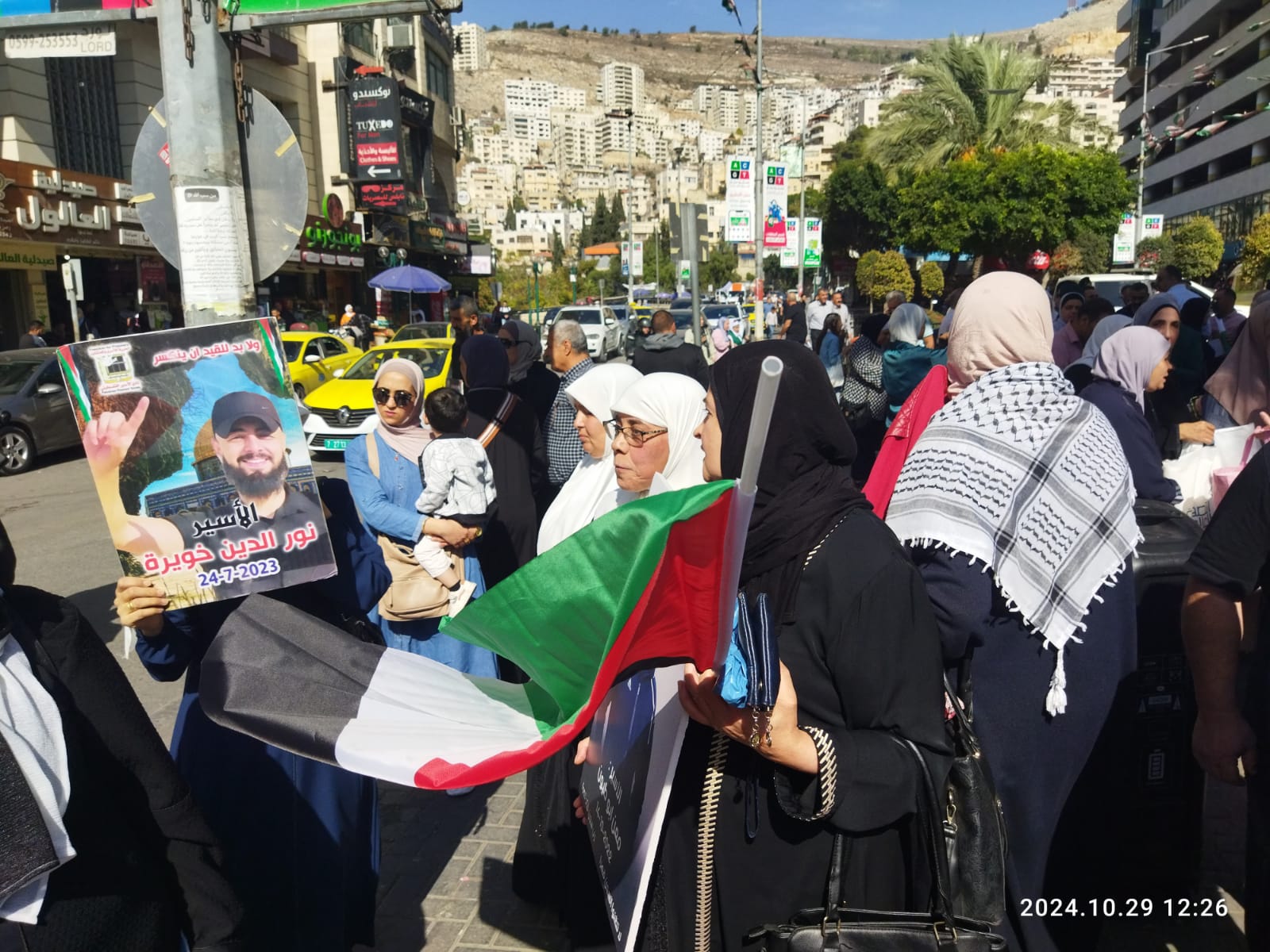 نابلس اليوم: من الوقفة الإسنادية مع شعبنا في غزة في ضوء استمرار جريمة حرب الإبادة، وإسنادا لأسرانا وأسيراتنا في سجون الاحتلال الإسرائيليّ، كما قام وفد من نادي الأسير الفلسطيني واللجنة الوطنية بزيارة عائلة الأسيرة شيماء رواجبة، وعائلة الأسير ياسر رمانة.