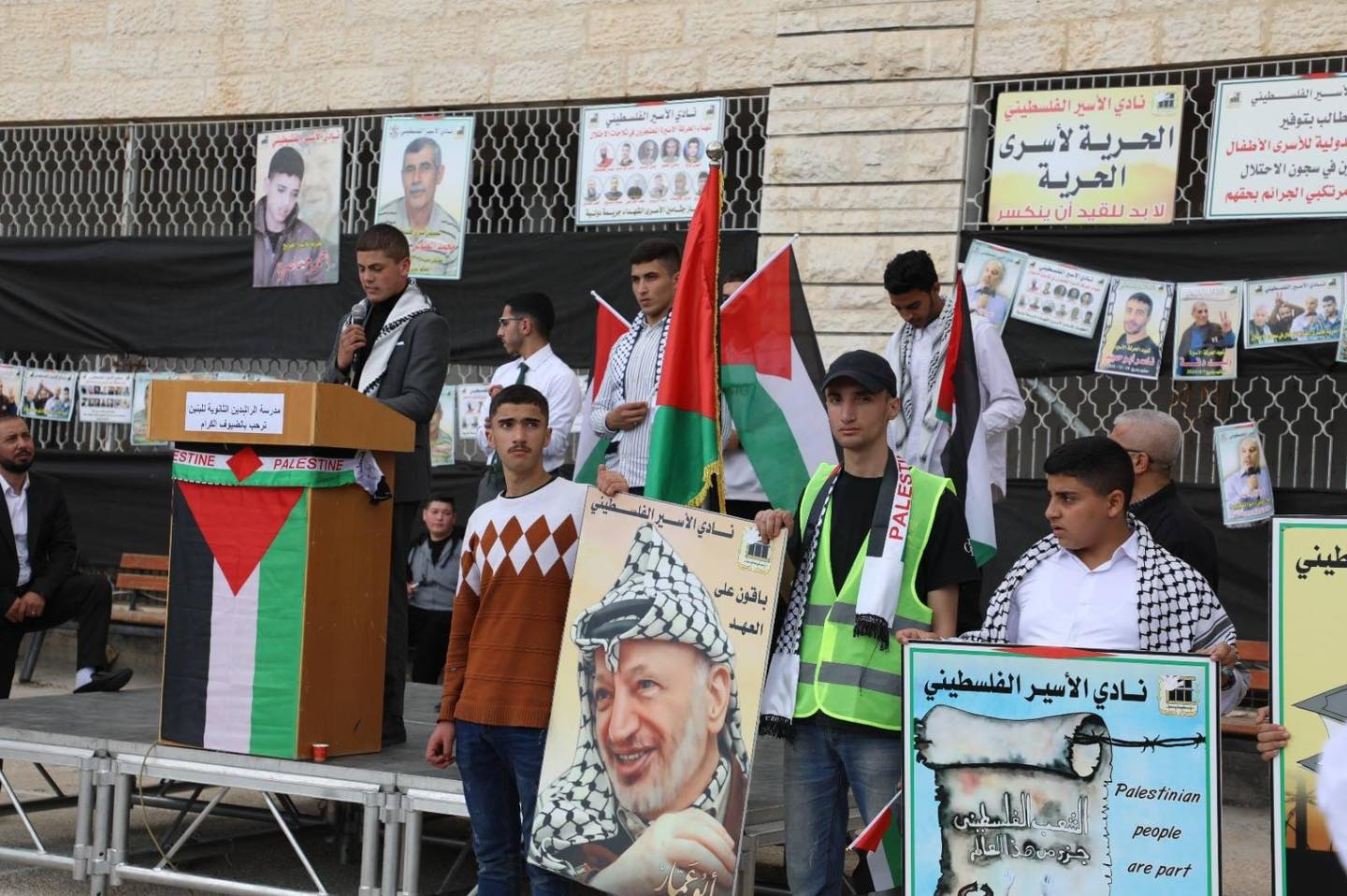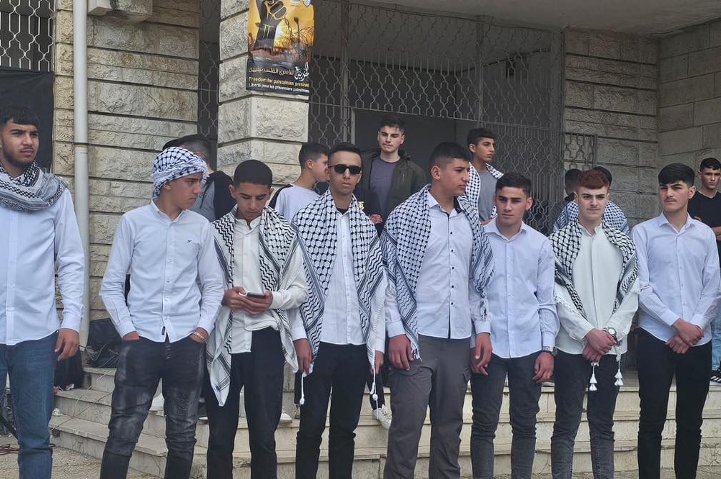 الخليل اليوم: نصرة لأبناء شعبنا في غزة، وإسناداً لأسرانا وأسيراتنا في سجون الاحتلال الإسرائيليّ، وبالتعاون مع وزارة التربية والتعليم، نظمت فعالية في مدرسة الراشدين الثانوية للبنين الكائنة في نمرة.