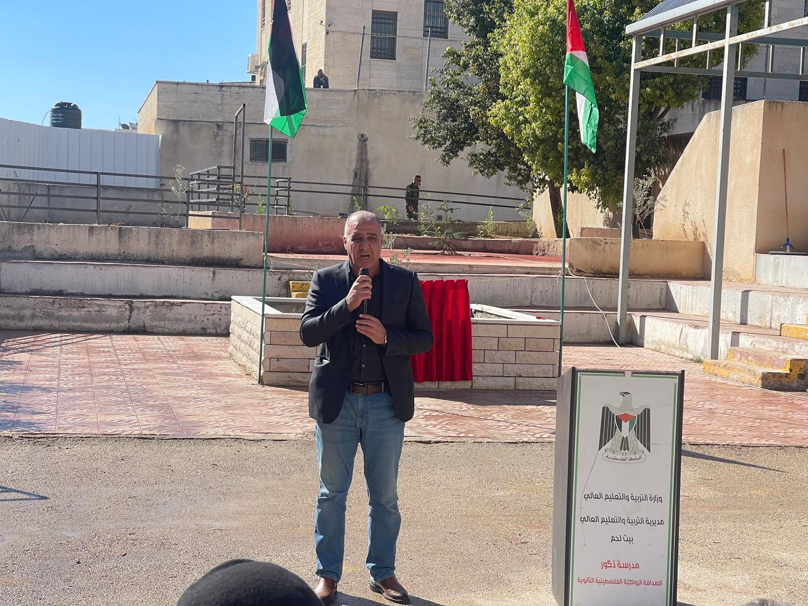 مشاركة رئيس نادي الاسير الفلسطيني عبد الله الزغاري في فعالية احياء الذكرى العشرون لاستشهاد القائد الرمز ابو عمار وافتتاح النصب التذكاري للشهيد احمد صدوق احد طلاب مدرسة الصداقة الروسية في محافظة بيت لحم والذي استشهد على ارض مخيم الدهيشة قبل عام