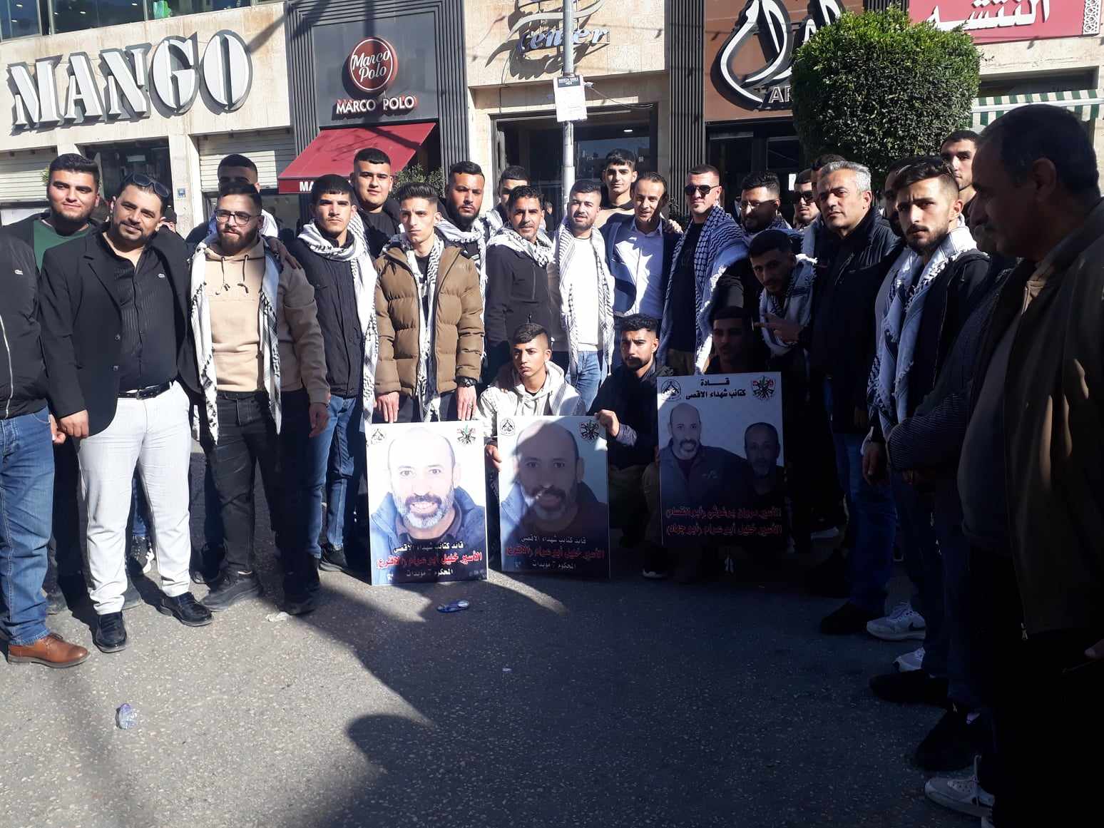 طالب مشاركون في الوقفة التي نظمت وسط المدينة، بضرورة التدخل الدولي لإنقاذ المعتقلين الذين يتعرضون لجرائم الإعدام والموت البطيء، نتيجة سياسة الاحتلال الذي سلب من المعتقلين كافة حقوقهم المشروعة.