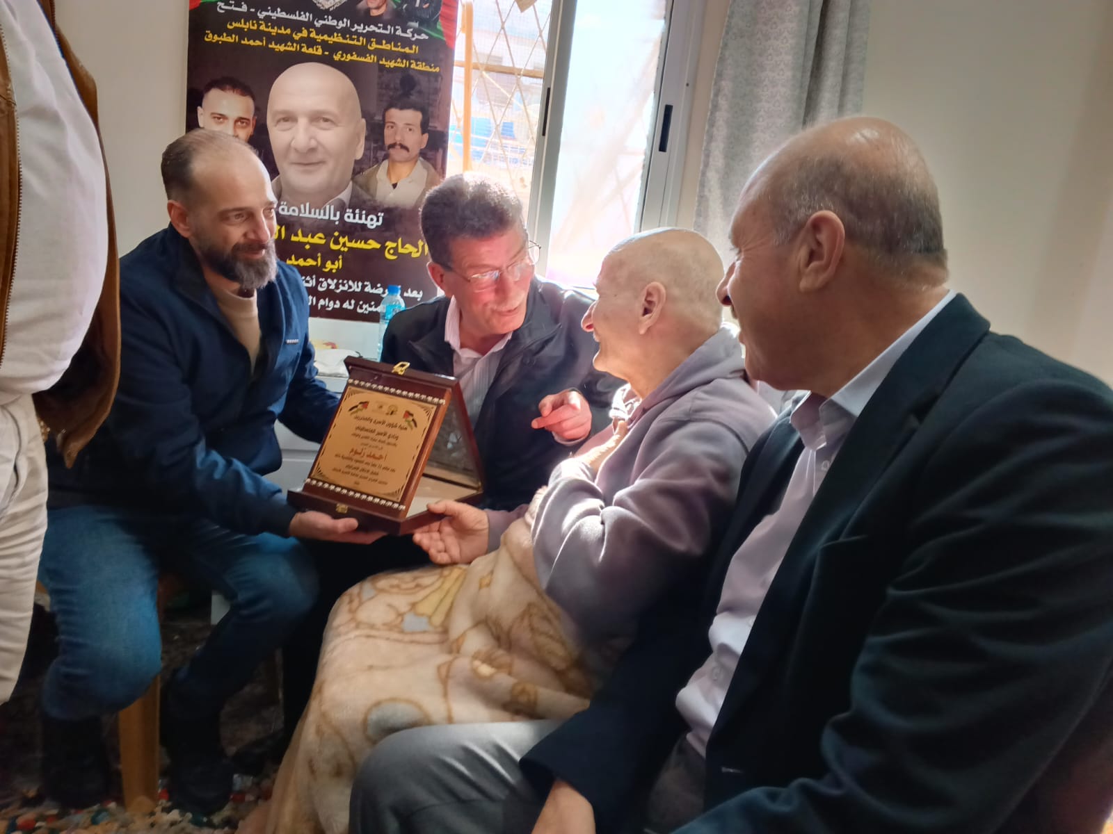 هيئة شؤون الأسرى والمحررين ونادي الأسير الفلسطيني في محافظة نابلس ينظمون زيارة تهنئة بالإفراج للاسيرين أحمد زلوم وباهر عشه بعد أن أمضوا في سجون الاحتلال الإسرائيلي أكثر من 20 عاماً.