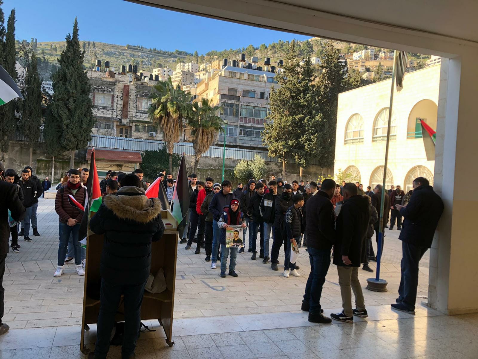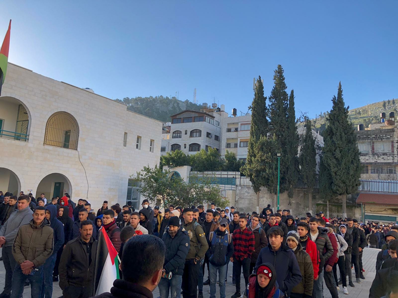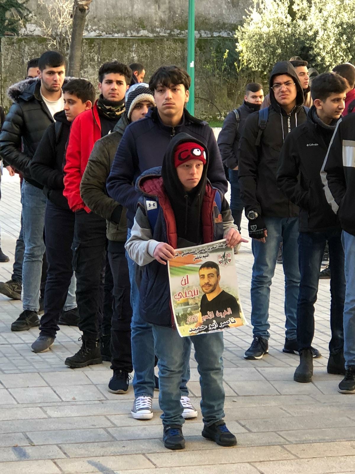 لجنة الشبيبة الثانوية في مدرسة الصلاحية نابلس تنظم وقفه تضامنية مع الأسير البطل ناصر ابو حميد.