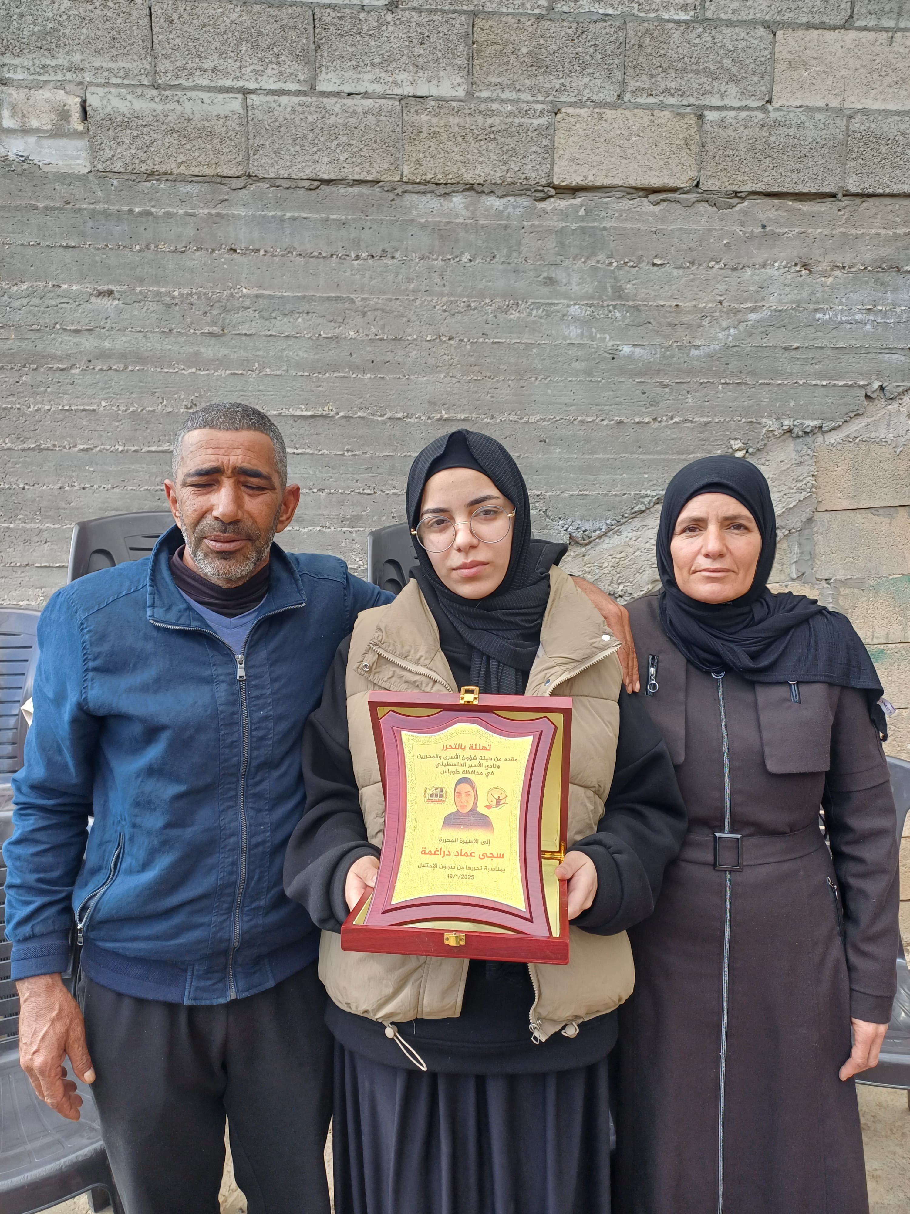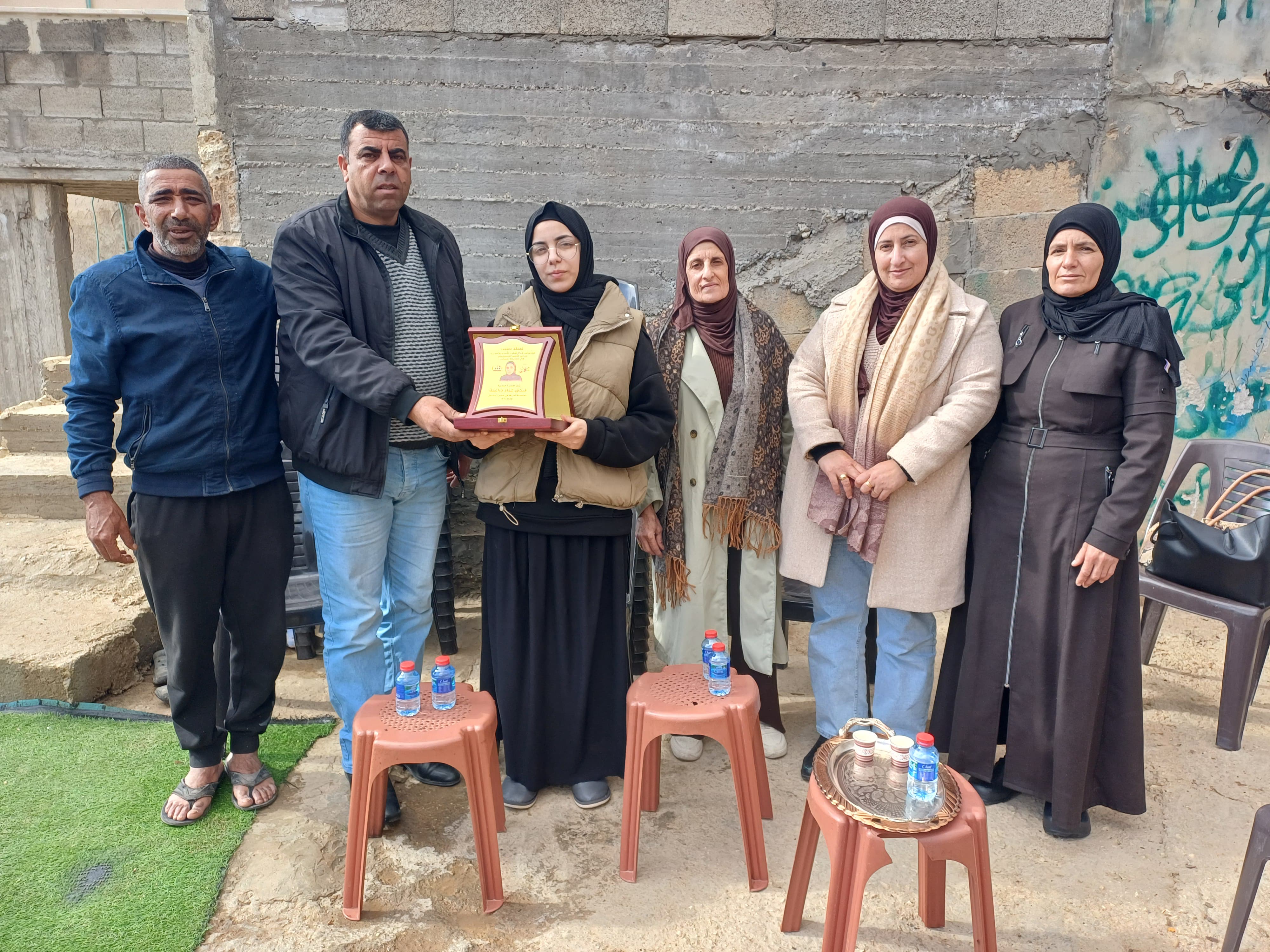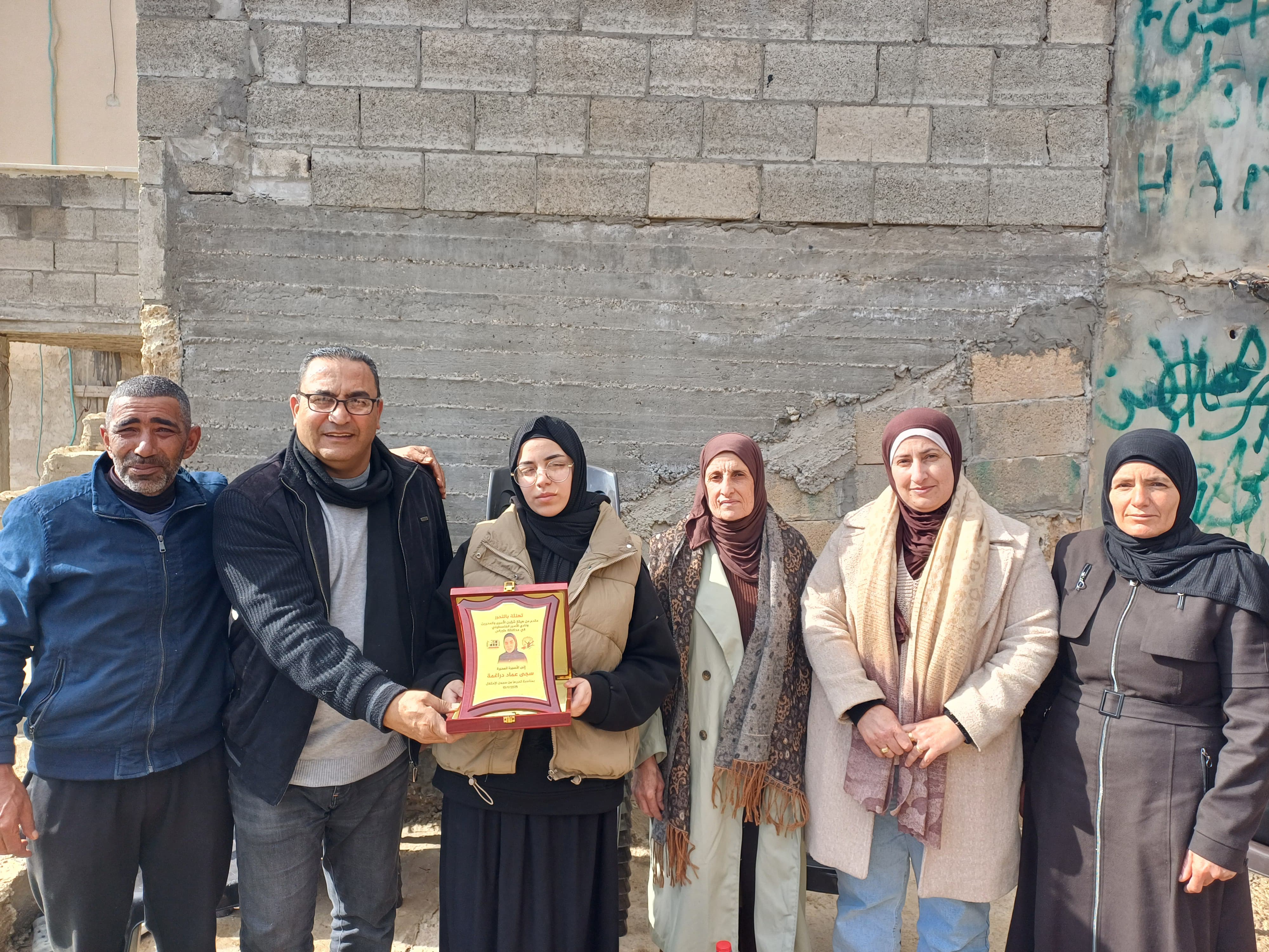 نادي الاسير الفلسطيني وهيئه شؤون الاسرى والمحررين اثناء تقديم التهاني للاسيره سجى دراغمه بمناسبه تحررها من سجون الاحتلال.