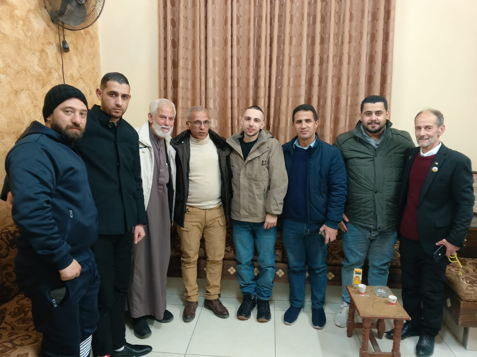 اليوم الأحد الموافق 26/1/2025 وفد من هيئة شؤون الأسرى والمحررين ونادي الأسير الفلسطيني ، يقدمون التهنئة بالتحرر للأسرى وائل الجاغوب وفهد الصوالحي وجواد الشلختي وأحمد ابو حمده وعماد اغبر ، متمنين الحرية لكافة الأسرى في سجون الاحتلال الإسرائيلي.