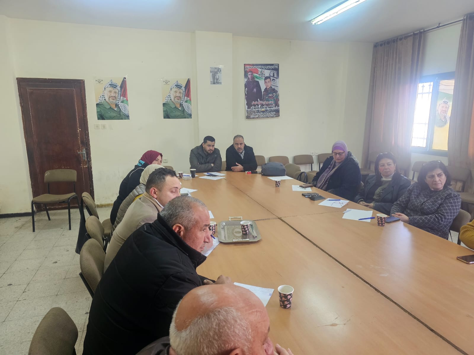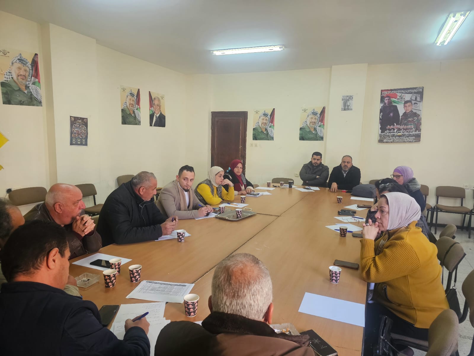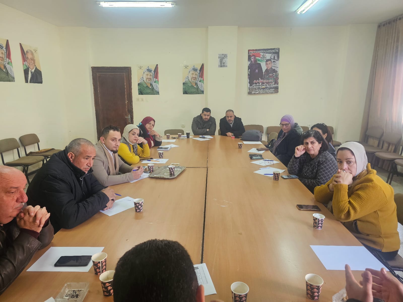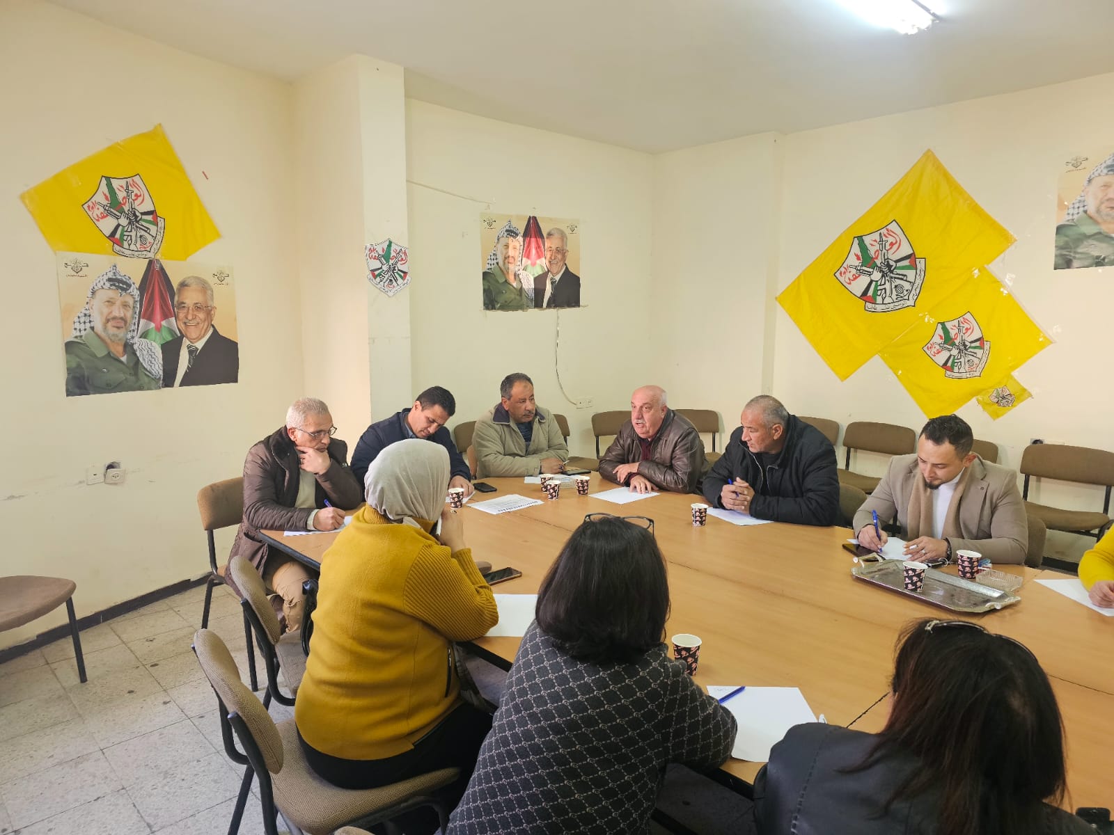 جانب من اجتماع اللجنة الوطنية لدعم الأسرى المنعقد اليوم الإثنين في مكتب اقليم فتح وذلك من أجل تنظيم حفل تكريم للأسرى المحررين من المرحلة الأولى لصفقة تبادل الأسرى.