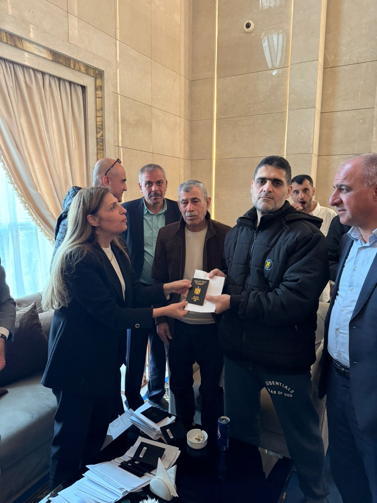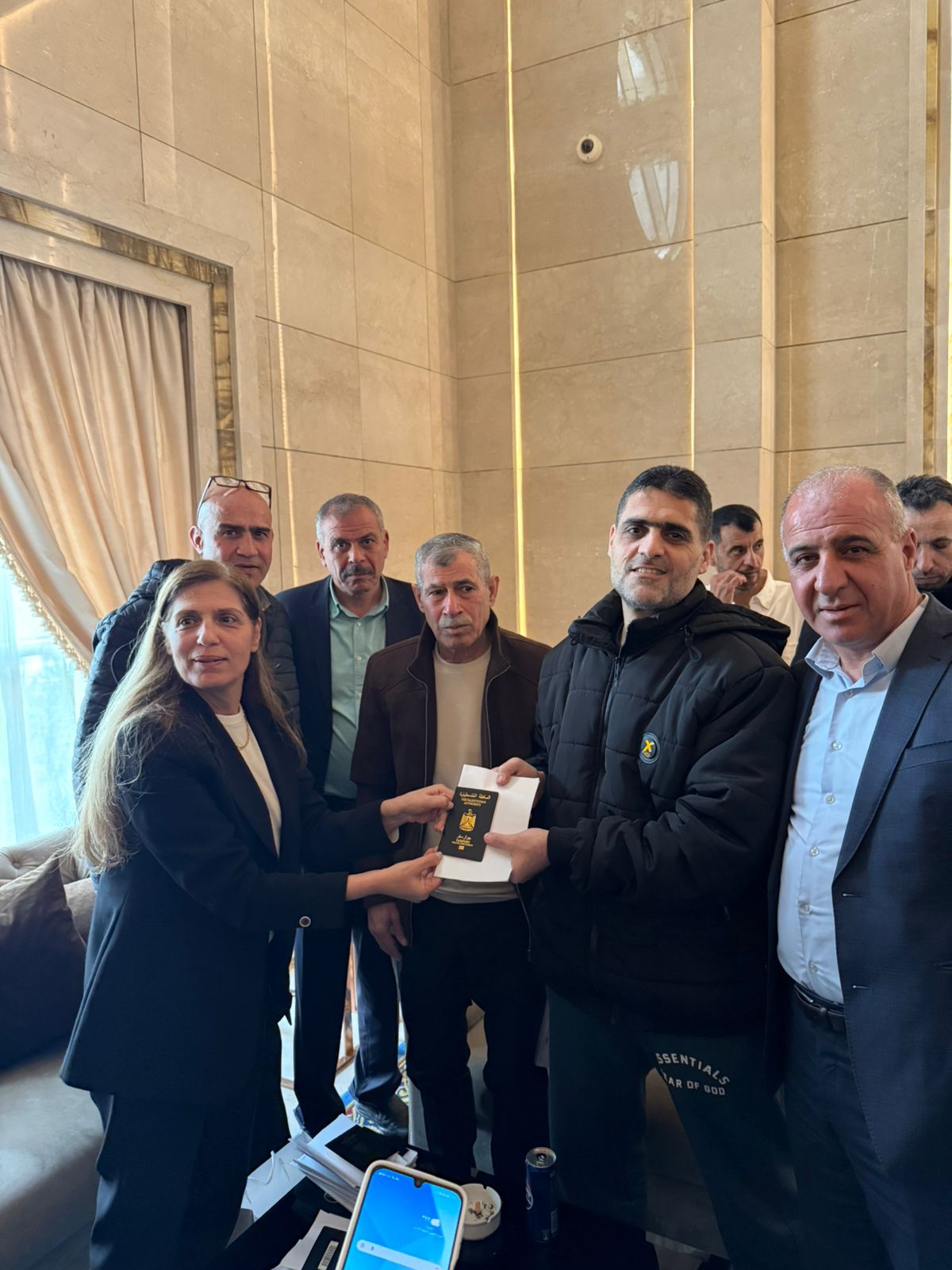 في إطار الجهود الحثيثة لمتابعة المعاملات والإجراءات المتعلقة بأسرانا المحررين المبعدين في عملية التبادل لجمهورية مصر العربية، ووفقاً للتعاون المتكامل بين سفارة دولة فلسطين في القاهرة ووزارة الداخلية الفلسطينية، تم إصدار جوازات السفر الخاصة بكافة الأسرى المحررين هناك، ويتم استمرار العمل وفق غرفة عمليات دائمة لاستقبال دفعات المحررين القادمة وتوفير كل ما يلزم لهم.