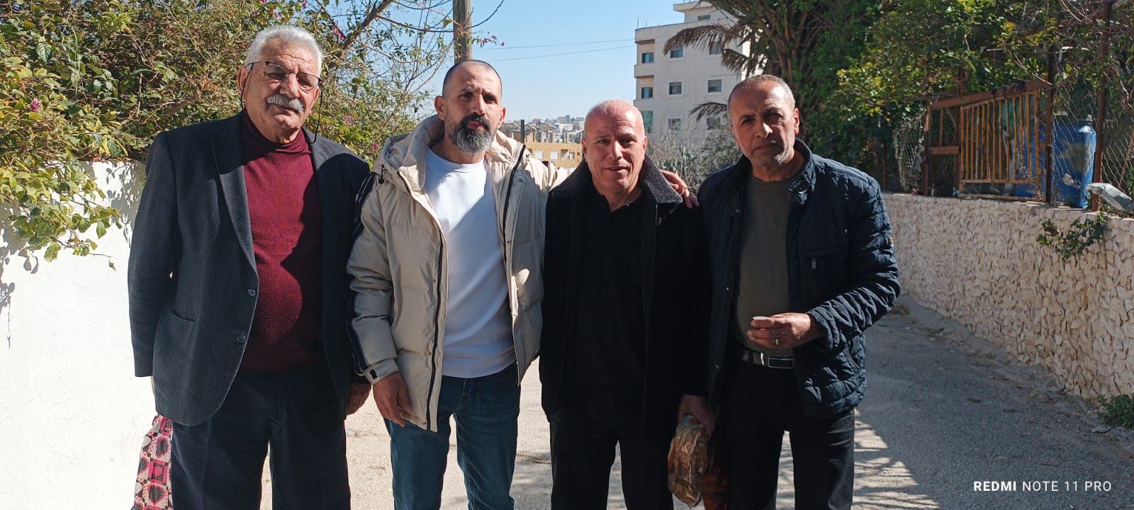 جانب من تقديم نادي الأسير الفلسطيني التهاني بالحرية للاسير المحرر محمود دودين بعد اعتقال استمر 23 عاما في سجون الاحتلال