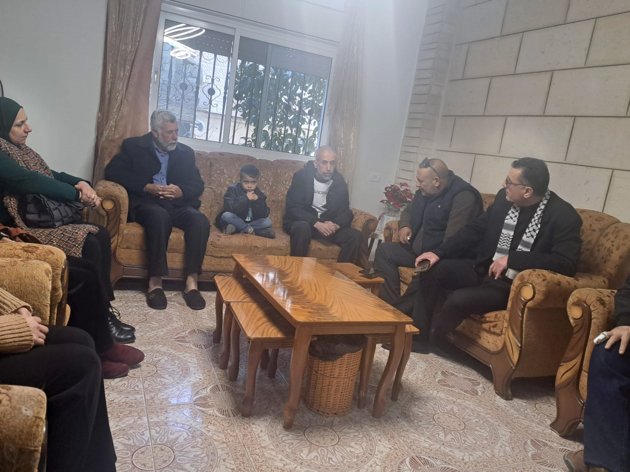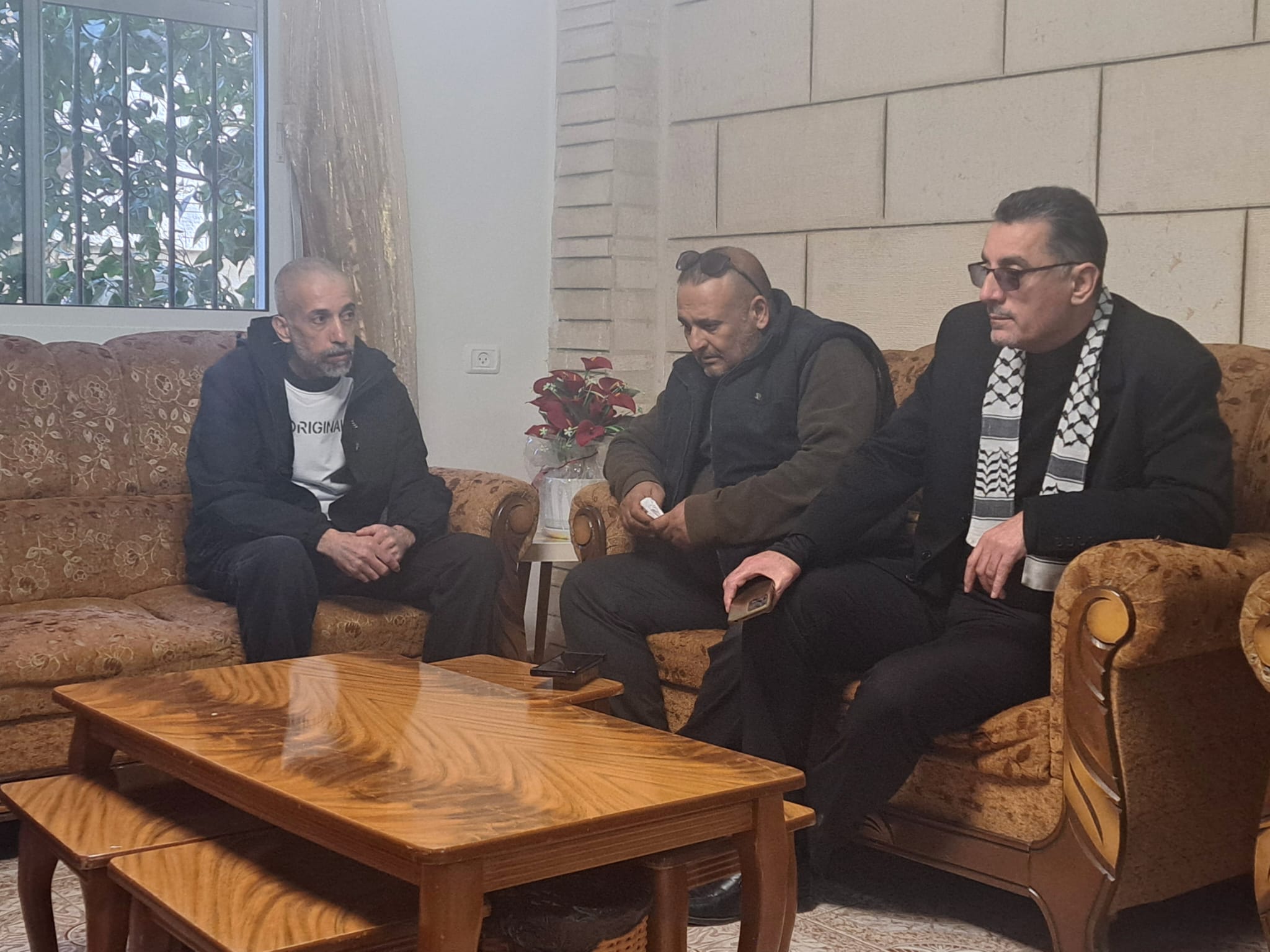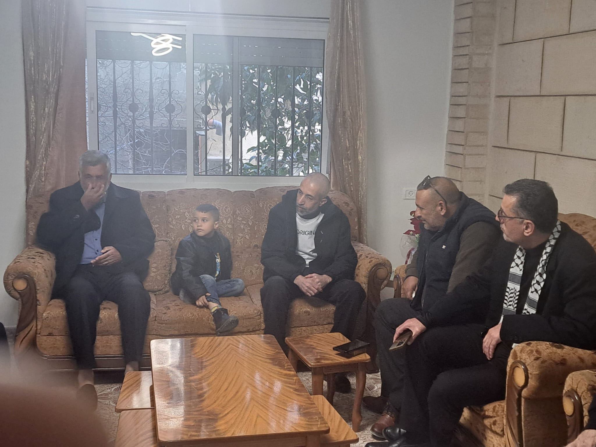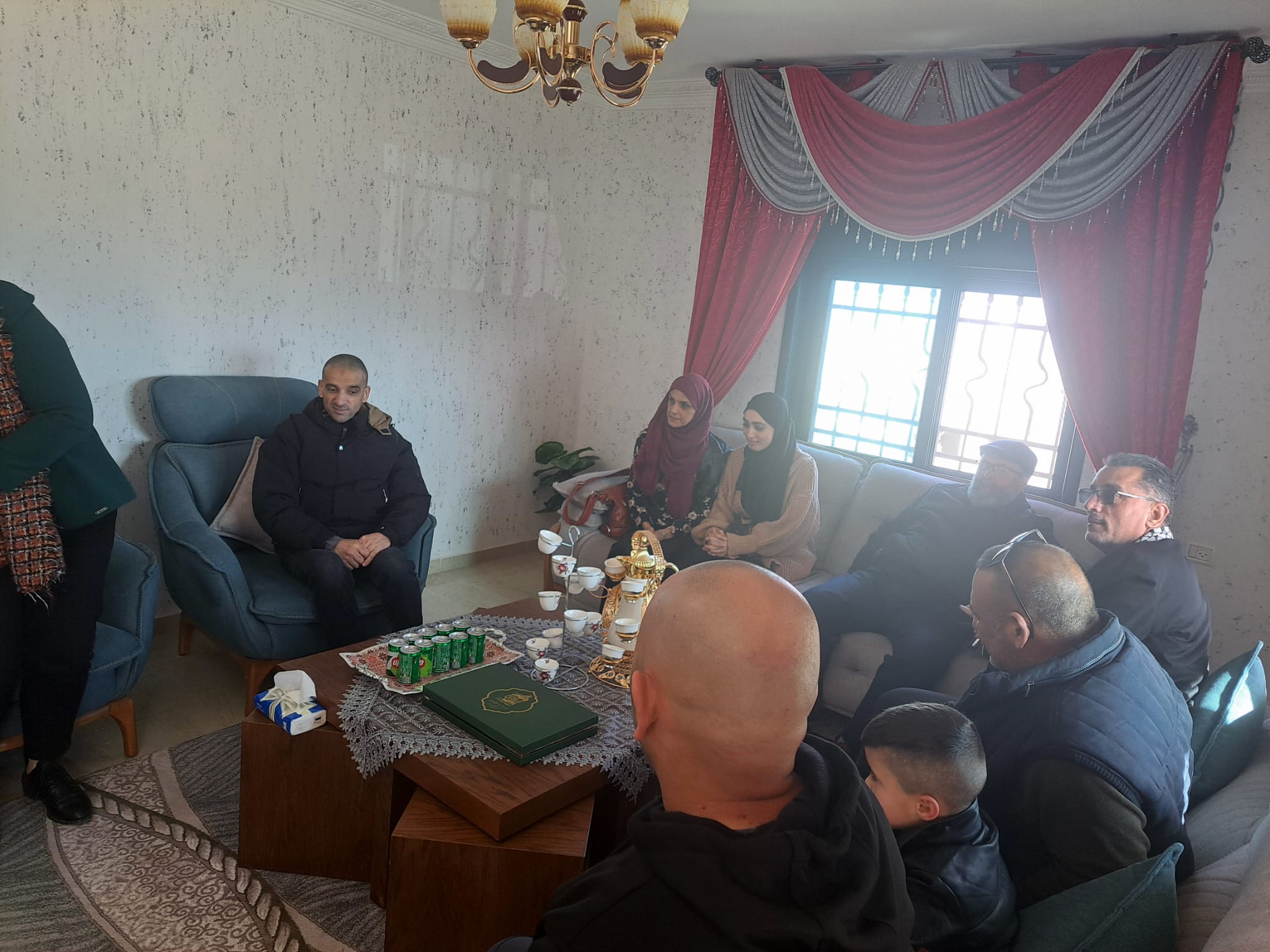 جانب من تقديم نادي الأسير الفلسطيني وهيئة شؤون الأسرى وجمعية الأسرى المحررين التهاني بالحرية للاسرى المحررين
