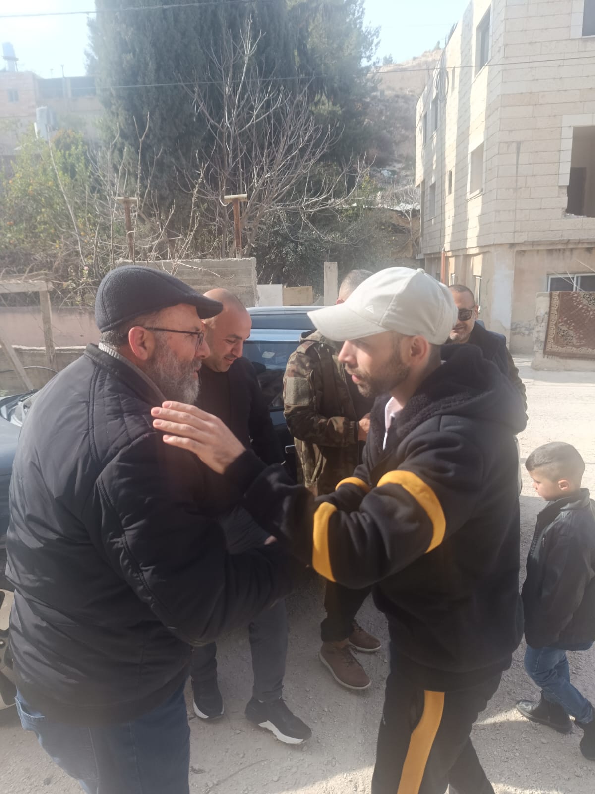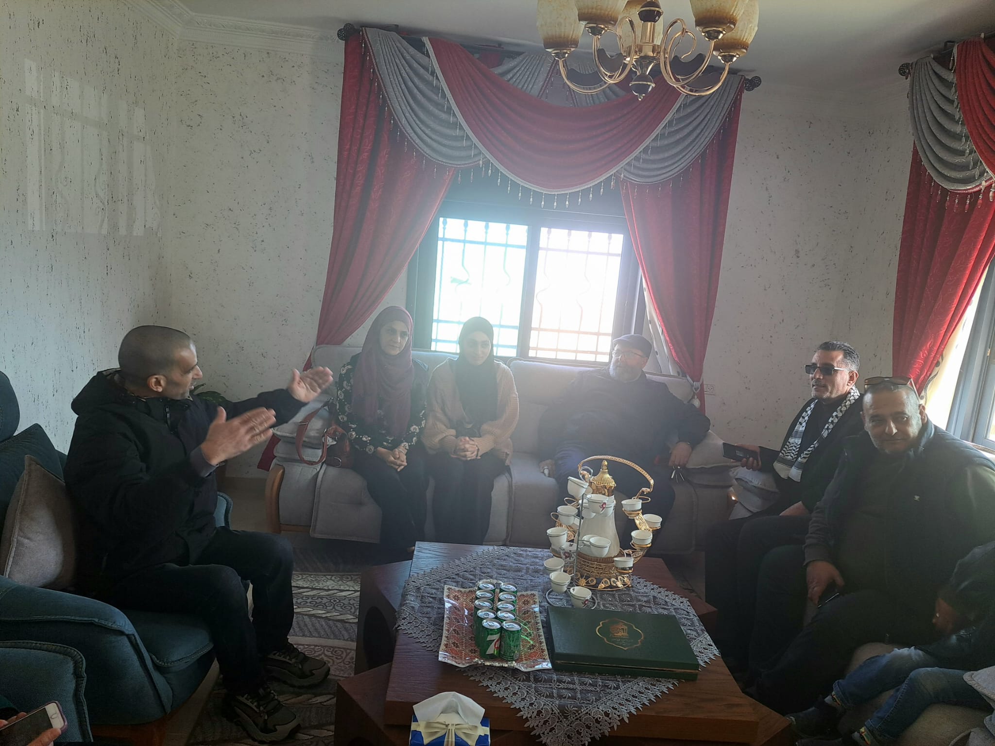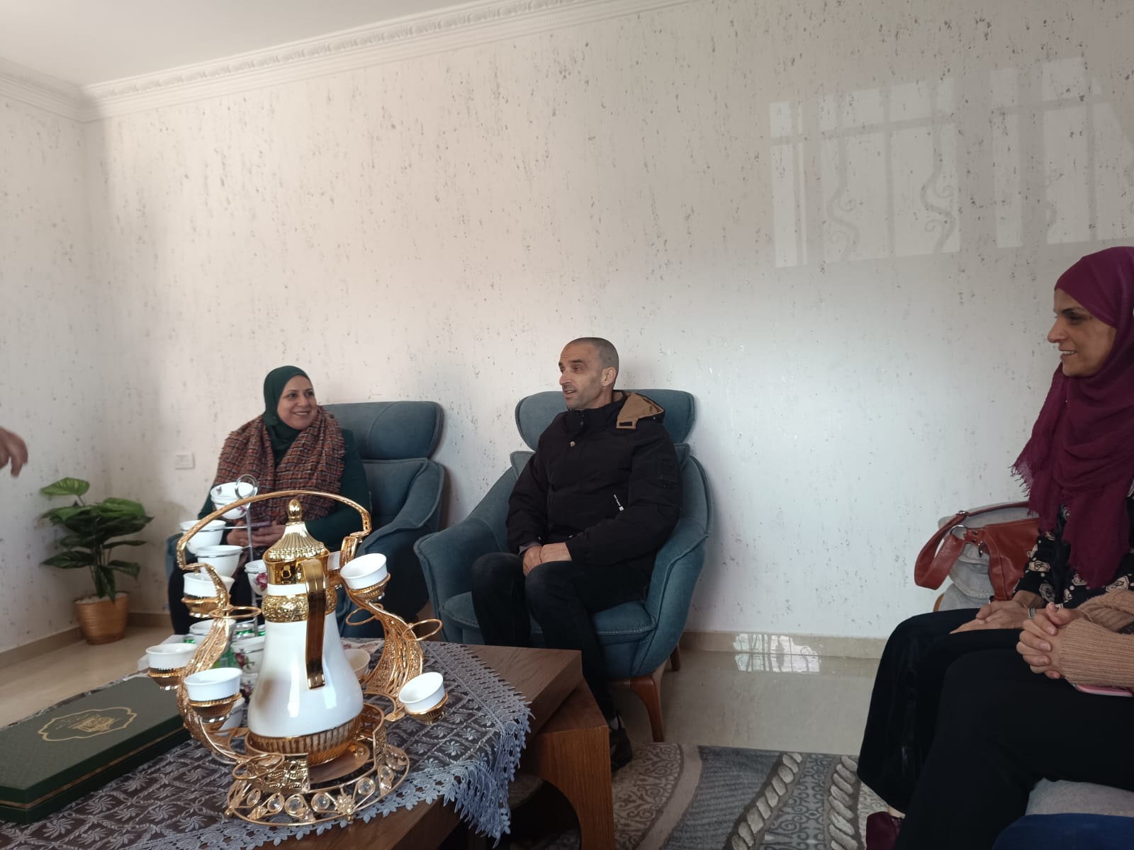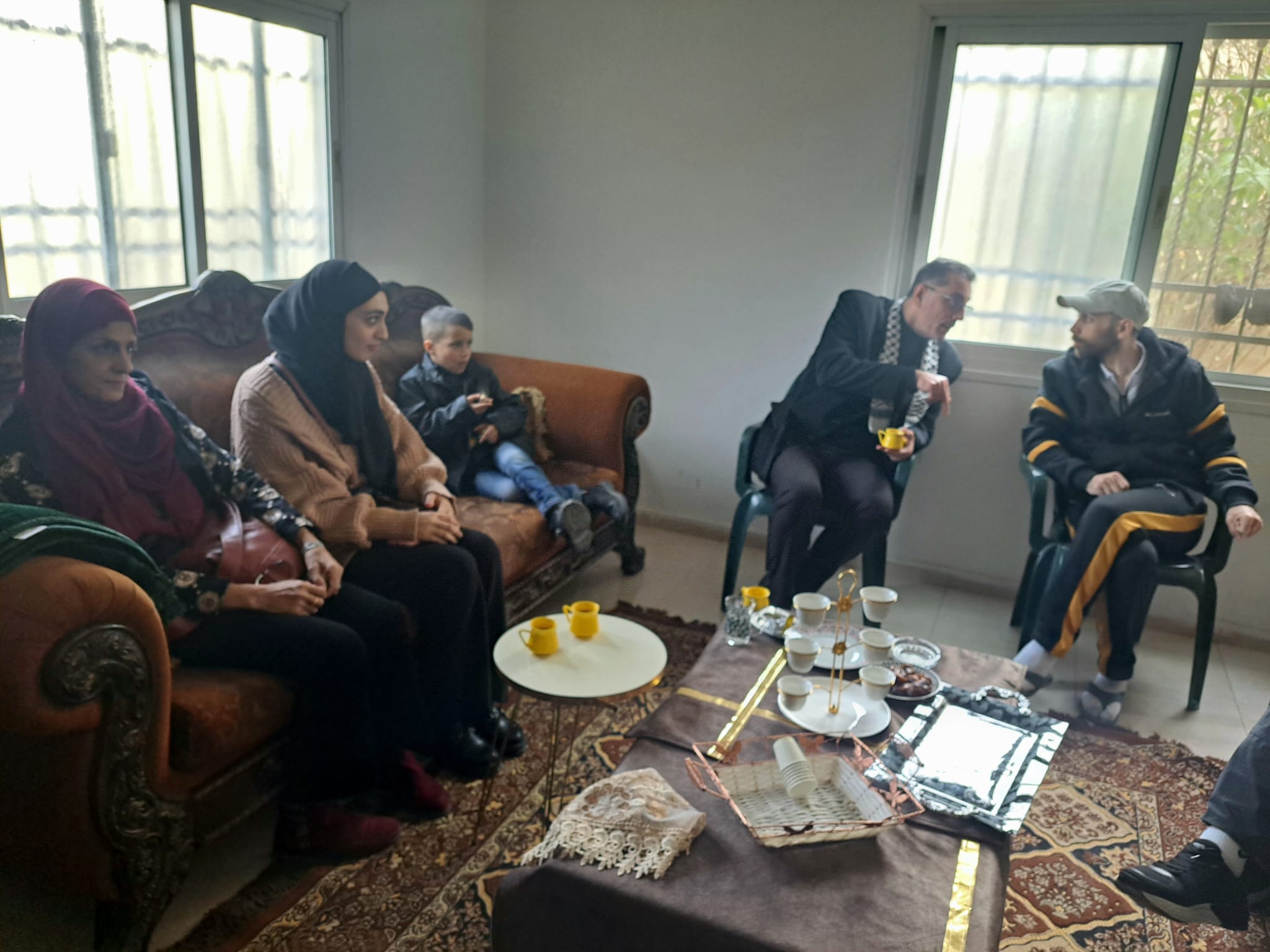 جانب من تقديم نادي الأسير الفلسطيني وهيئة شؤون الأسرى وجمعية الأسرى المحررين التهاني بالحرية للاسرى المحررين