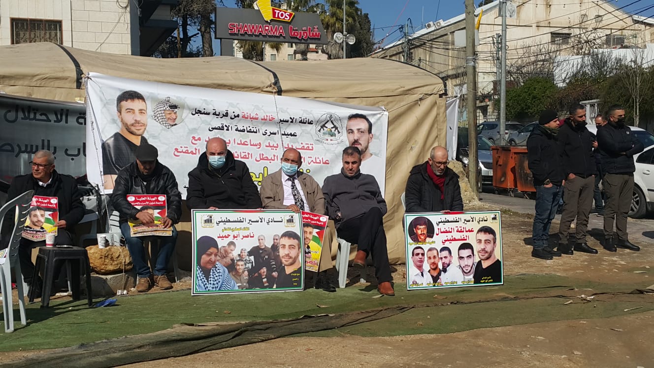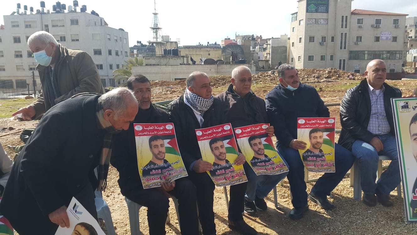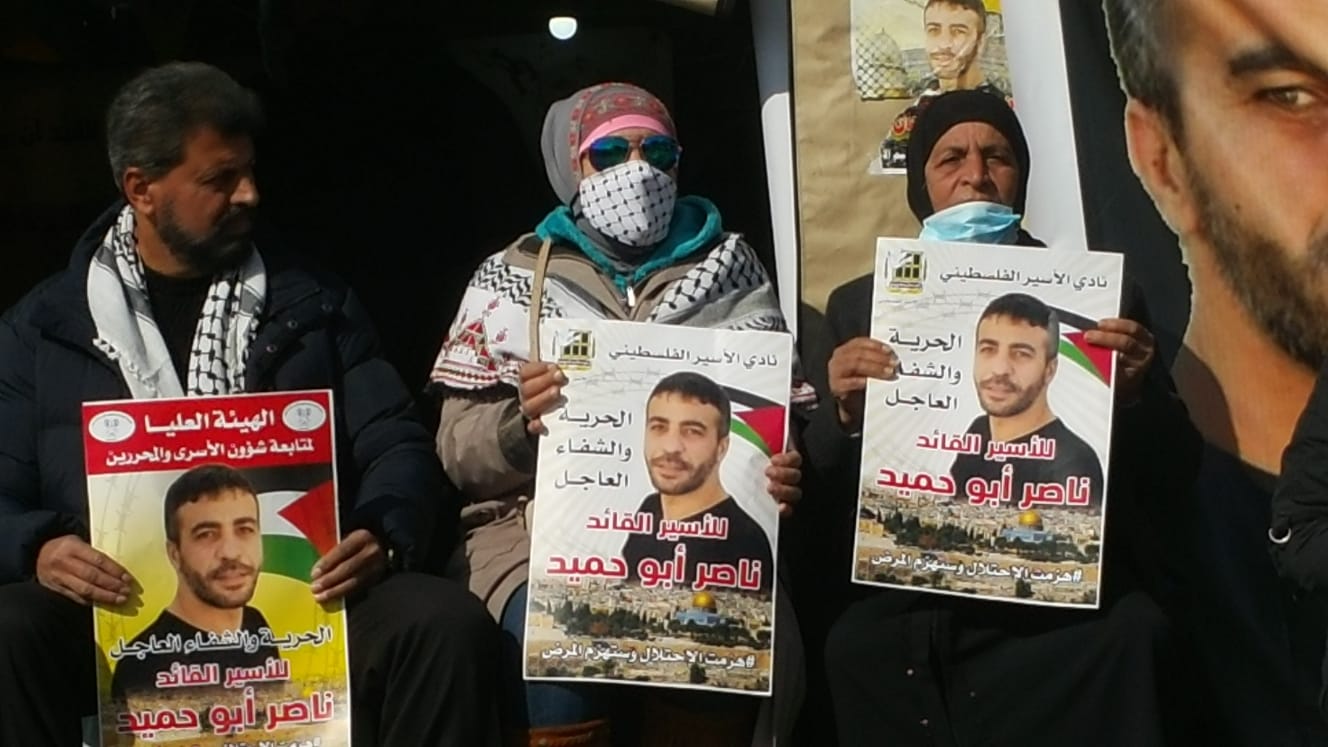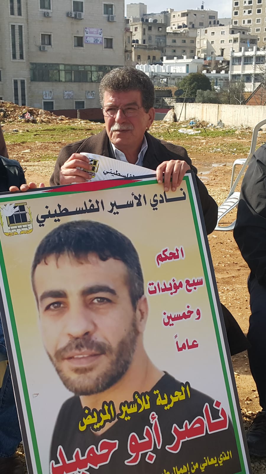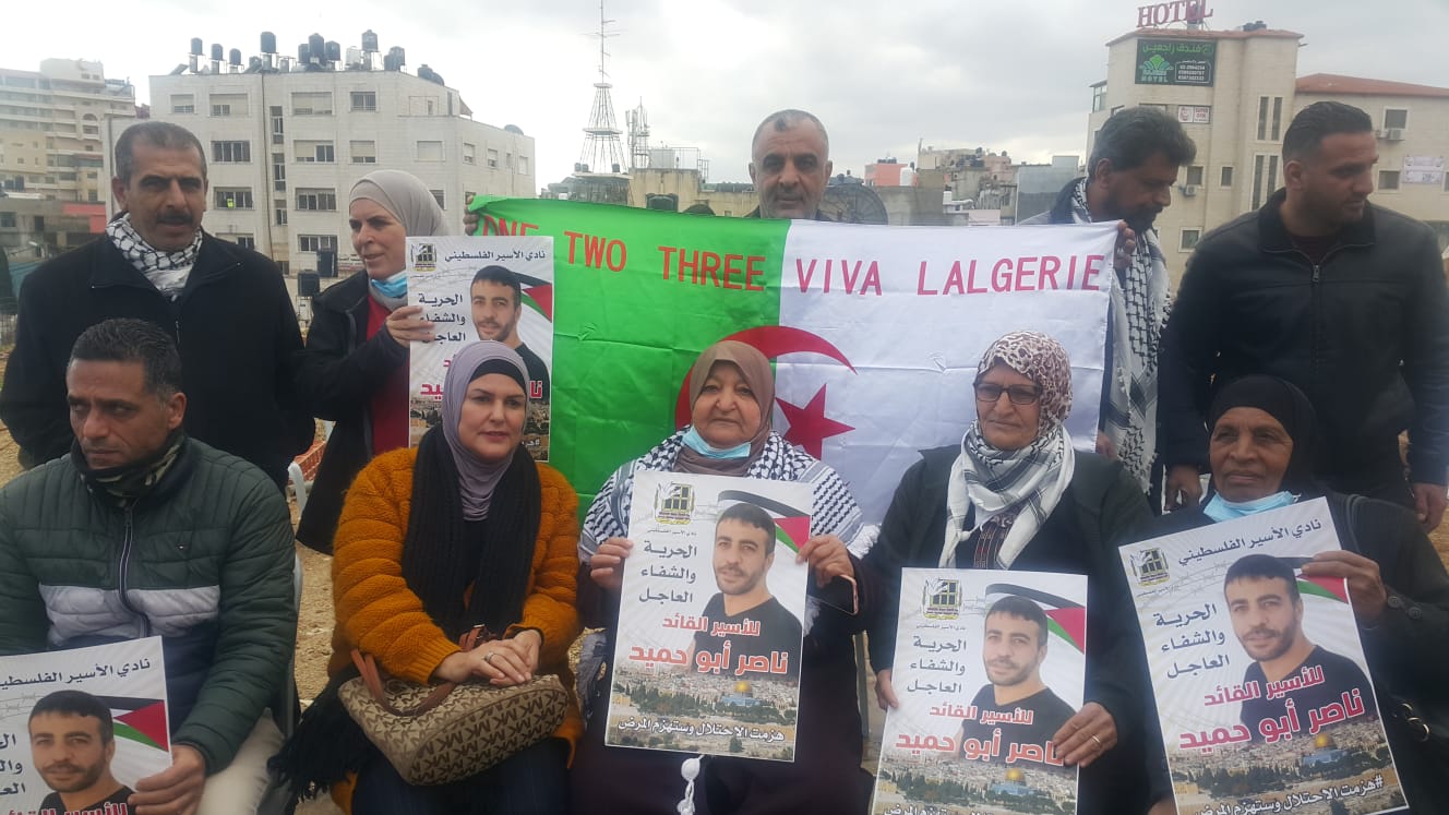 صور | من فعاليات الوقفة التضامنية لدعم ومساندة الأسير ناصر أبو حميد أمام خيمة الاعتصام في مخيم الأمعري رام الله.