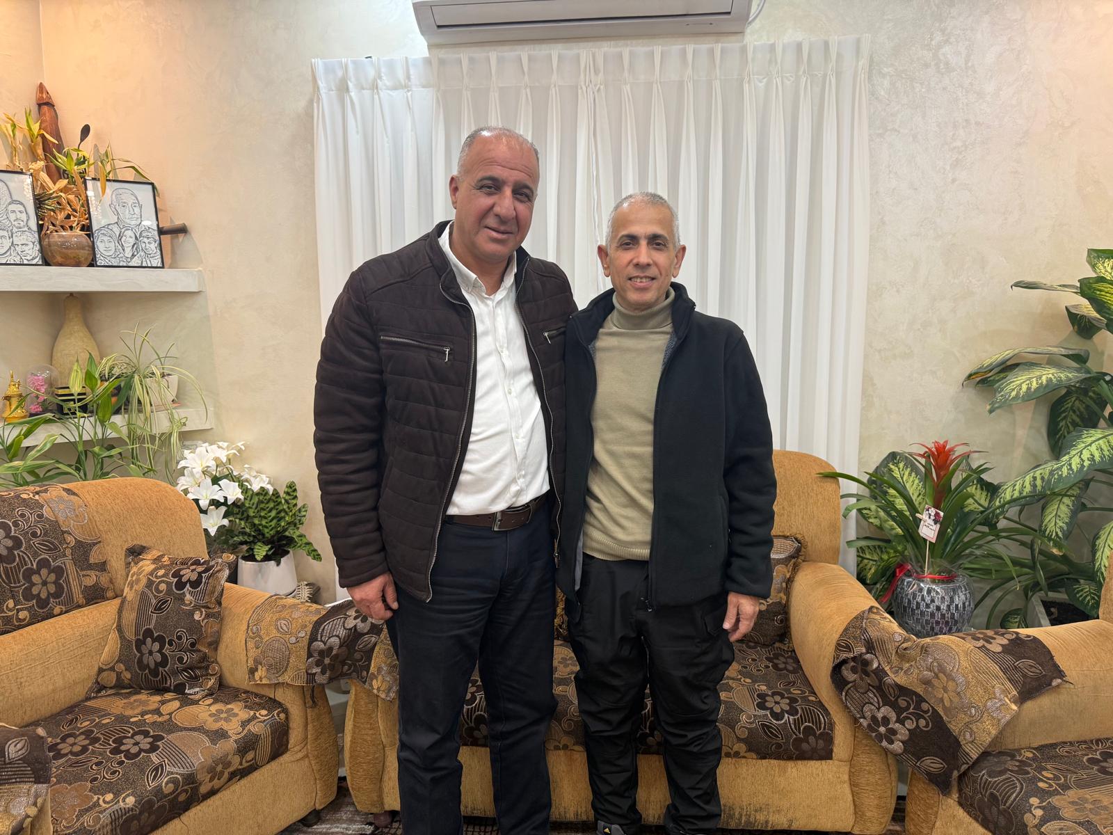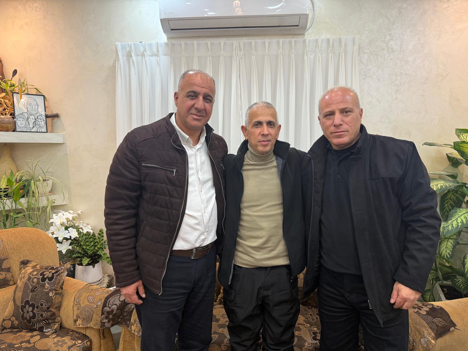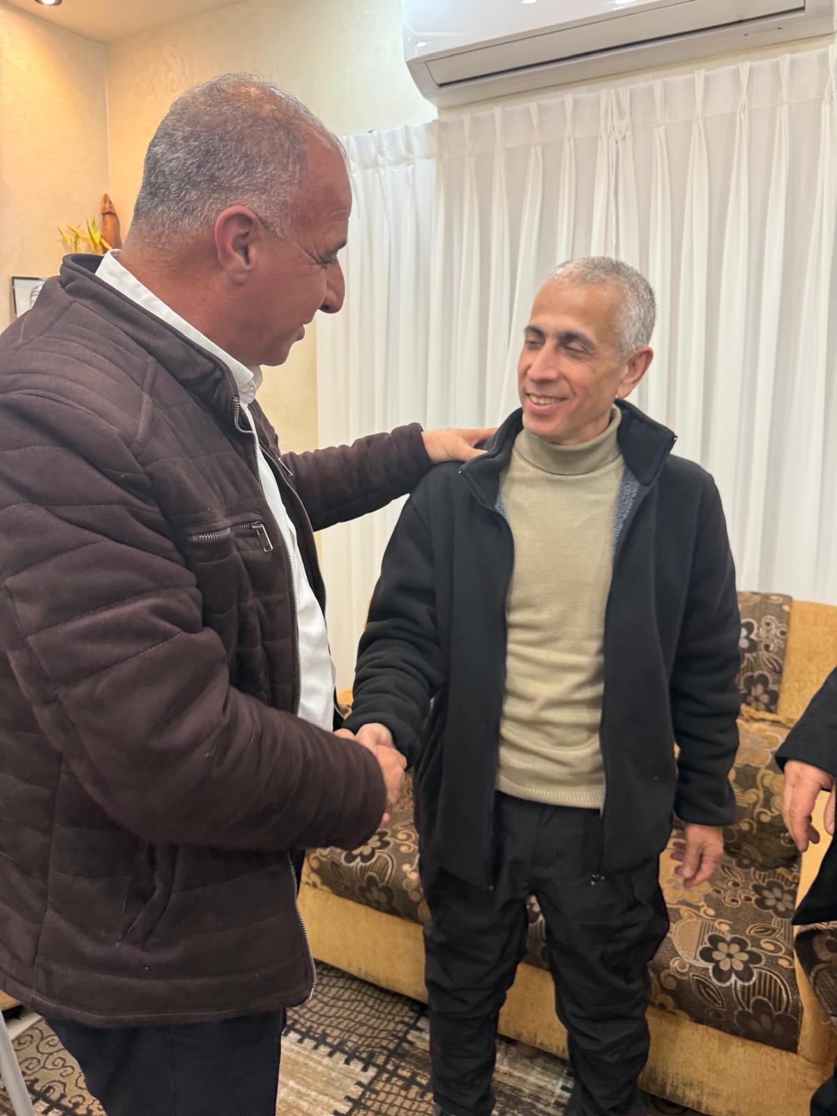 جانب من تقديم التهاني والتبريكات للاسير المحرر حسام زهدي شاهين بعد اعتقال استمر، 23 عاما قضاها في،سجون الاحتلال