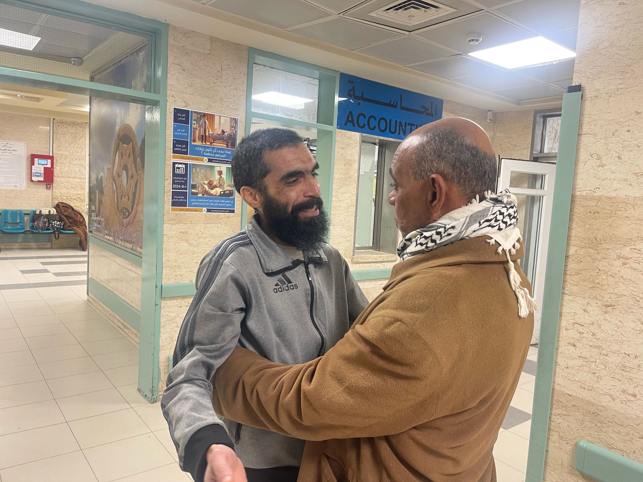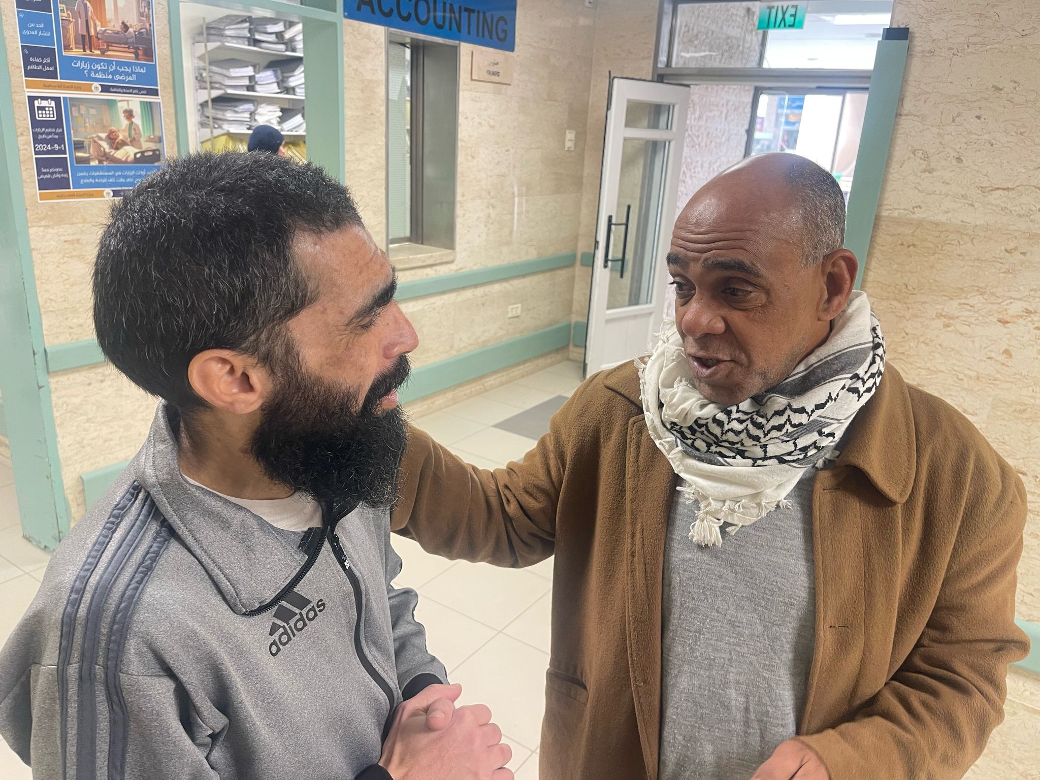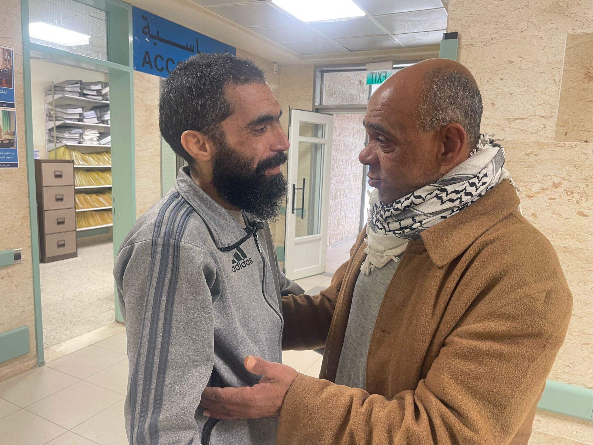 مدير نادي الاسير في محافظة أريحا عيد براهمه اثناء زيارته للأسير المحرر الاستاذ محمد عمر من مدينة اريحا بعد اعتقال أستمر 14 شهر في سجون الاحتلال.