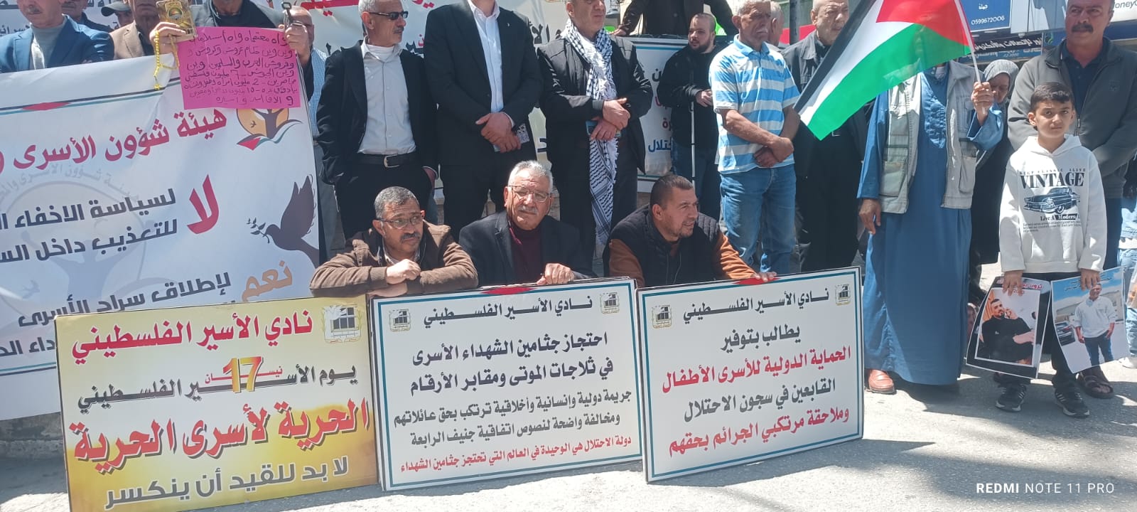 ورفع المشاركون صور الأسرى والأسيرات، خاصة الأسرى المرضى، والأسرى الشهداء المحتجزة جثامينهم، إلى جانب لافتات تؤكد تحميل الاحتلال المسؤولية الكاملة عن حياة الأسرى، وتدعو إلى ملاحقة إدارة مصلحة السجون ومحاكمتهم دوليًا على جرائمهم بحق الأسرى الفلسطينيين.