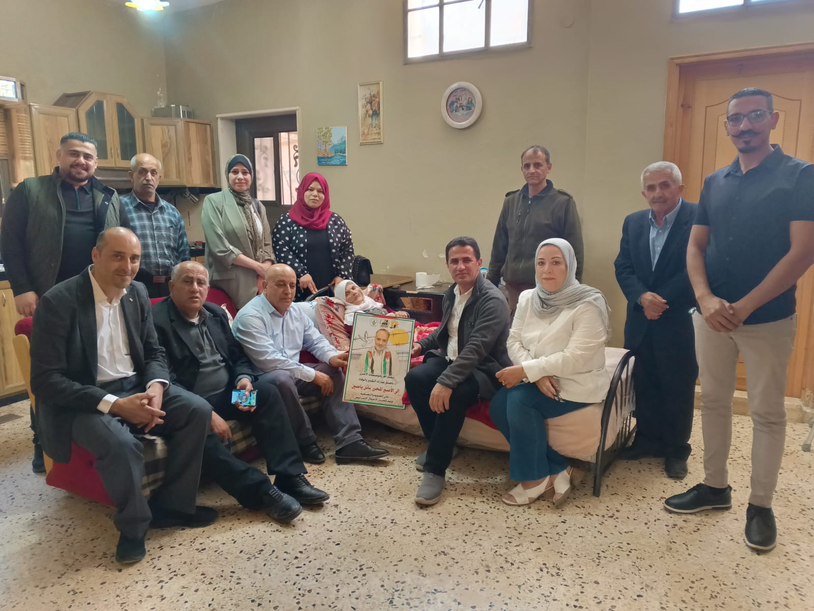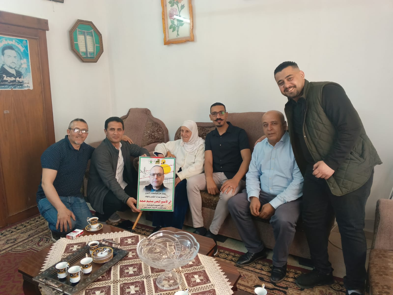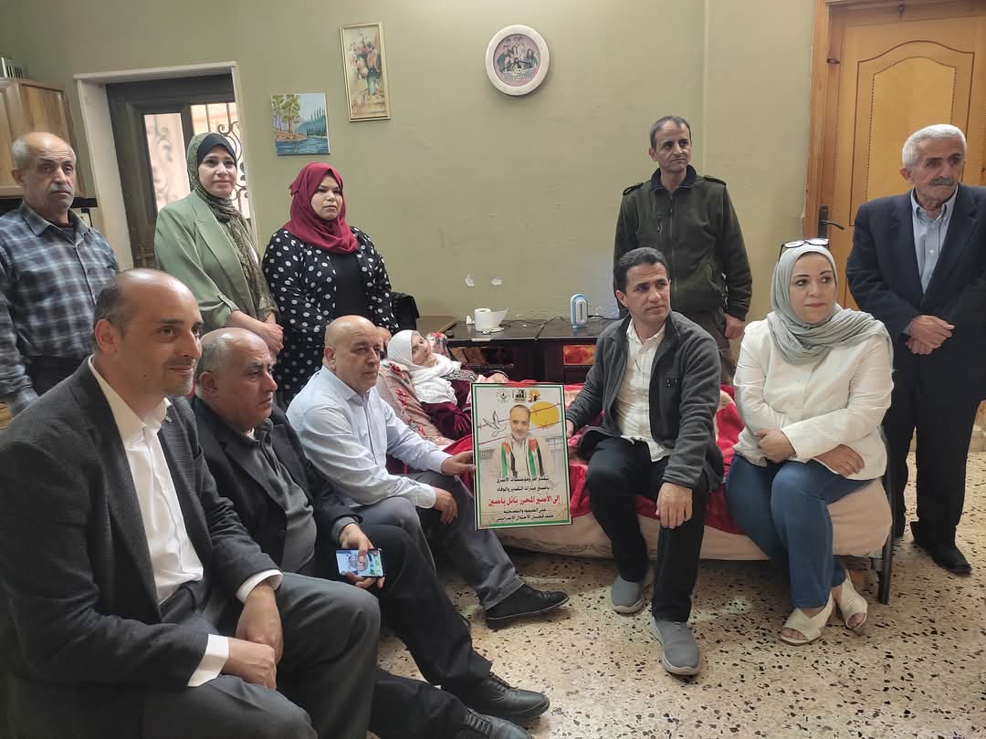جانب من مشاركة نادي الأسير الفلسطيني في زيارة تهنئة لذوي الأسرى المحررين المبعدين ، نائل ياسين و سليم حجة.
