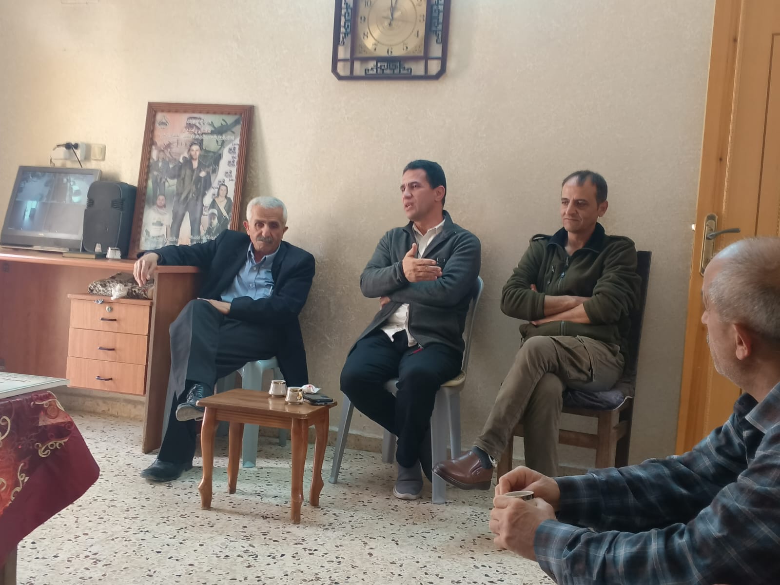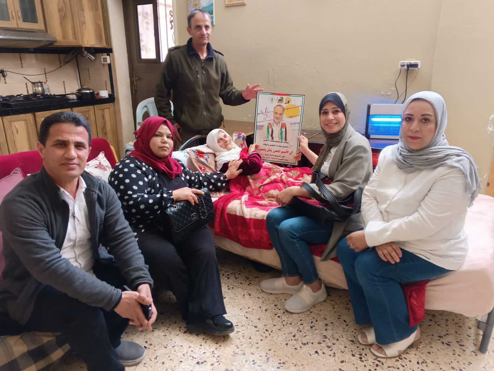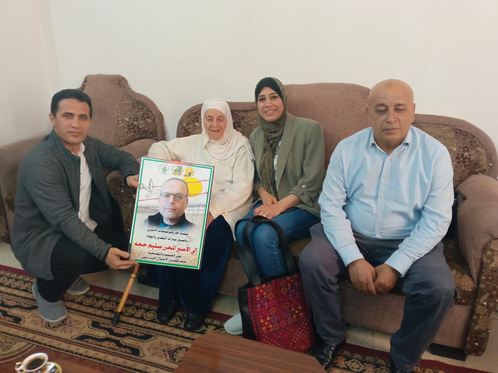 جانب من مشاركة نادي الأسير الفلسطيني في زيارة تهنئة لذوي الأسرى المحررين المبعدين ، نائل ياسين و سليم حجة.