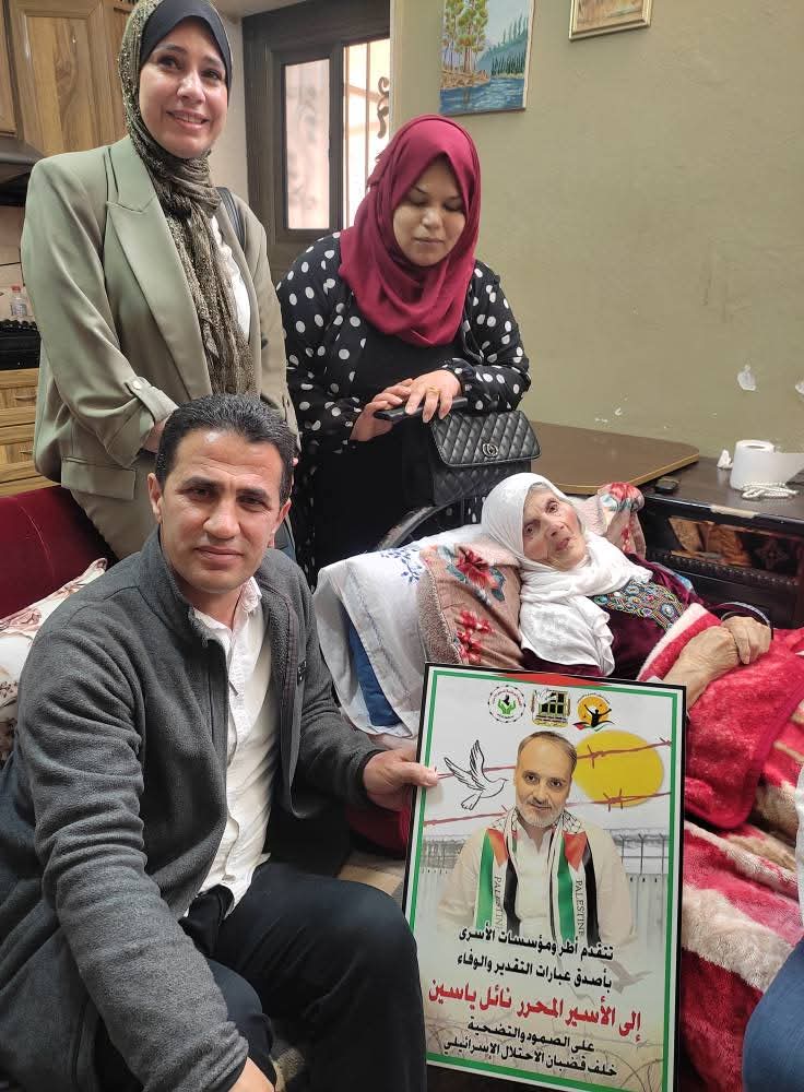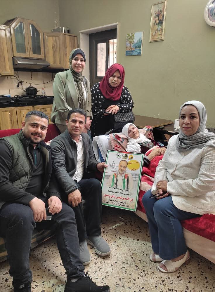 اليوم الأربعاء الموافق 30/4/2025 ضمن برنامج فعاليات يوم الأسير الفلسطيني 17/4 جانب من مشاركة نادي الأسير الفلسطيني في زيارة تهنئة لذوي الأسرى المحررين المبعدين ، نائل ياسين و سليم حجة.