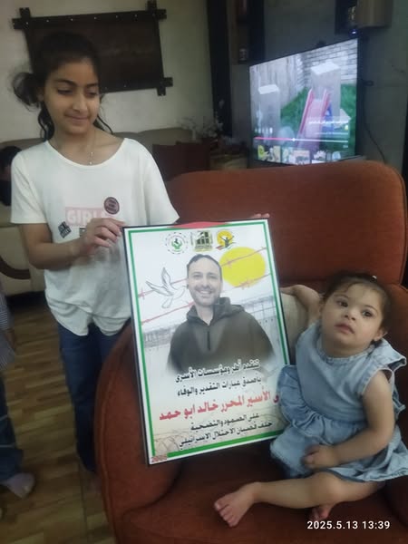 جانب من مشاركة نادي الأسير الفلسطيني في زيارة تهنئة للأسير المحرر المبعد خالد أبو حمد.