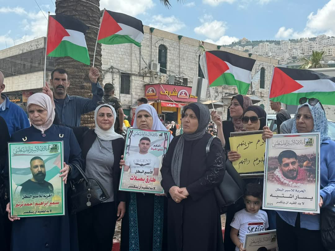 ورُفعت خلال الوقفة، التي نُظمت في ميدان الشهداء بدعوة من اللجنة الوطنية العليا لدعم الأسرى في محافظة نابلس ونادي الأسير، الأعلام الفلسطينية وصور الأسرى، إلى جانب شعارات تطالب بنصرة الحركة الأسيرة ووقف العدوان على غزة.
