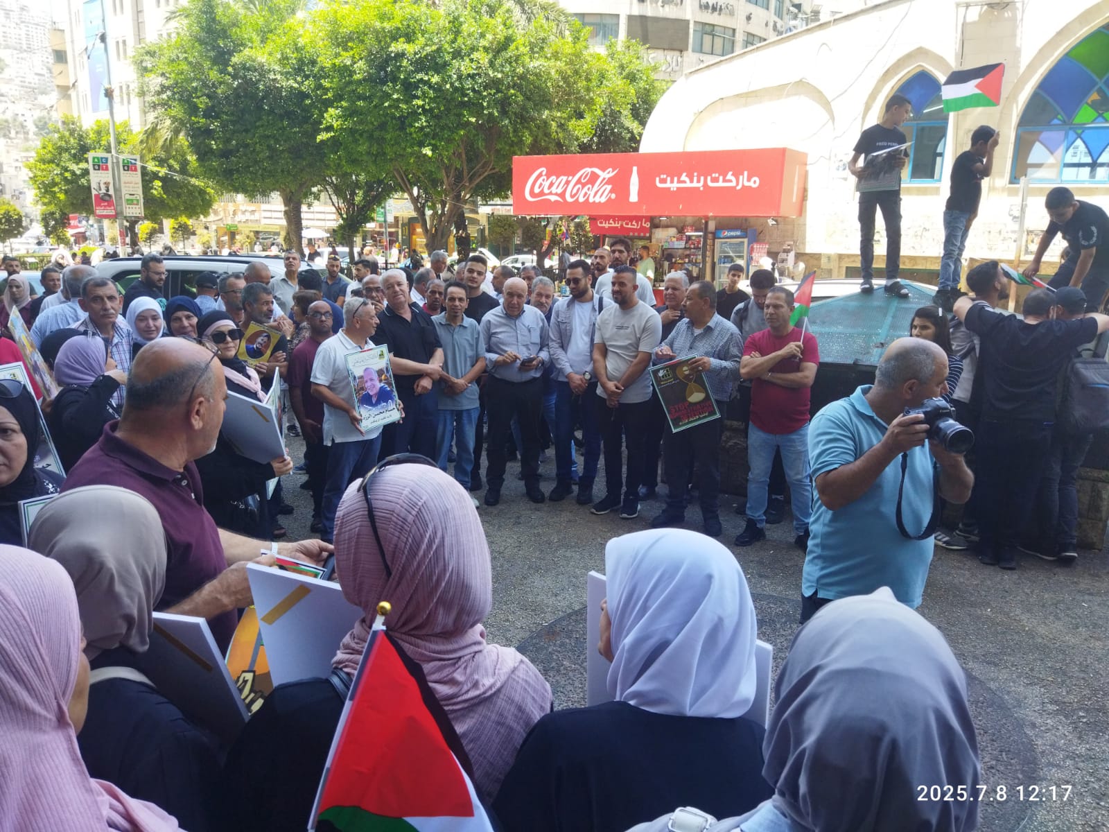 اليوم الثلاثاء الموافق 8/7/2025نادي الأسير الفلسطيني في محافظة نابلس ينظم فعالية اسنادية للأسرى ونصرة لغزة هاشم.