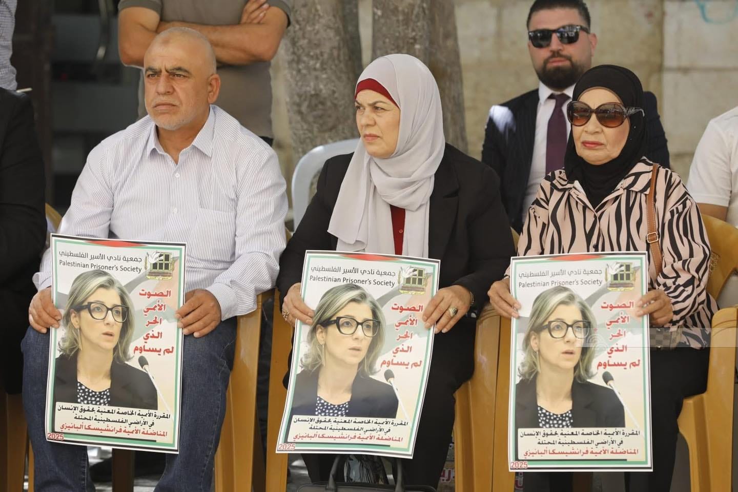 كما جاءت هذه الوقفة تعبيرًا عن الدعم الكامل للمناضلة الأممية فراشيسكا ألبانيز، المقررة الخاصة للأمم المتحدة المعنية بحقوق الإنسان في الأراضي الفلسطينية المحتلة، والتي تتعرض لهجمة سياسية وإعلامية شرسة من قبل سلطات الاحتلال والإدارة الأمريكية، على خلفية تقاريرها الحقوقية الجريئة التي كشفت حجم الجرائم والانتهاكات المرتكبة بحق الشعب الفلسطيني في ظل حرب الإبادة المتواصلة.