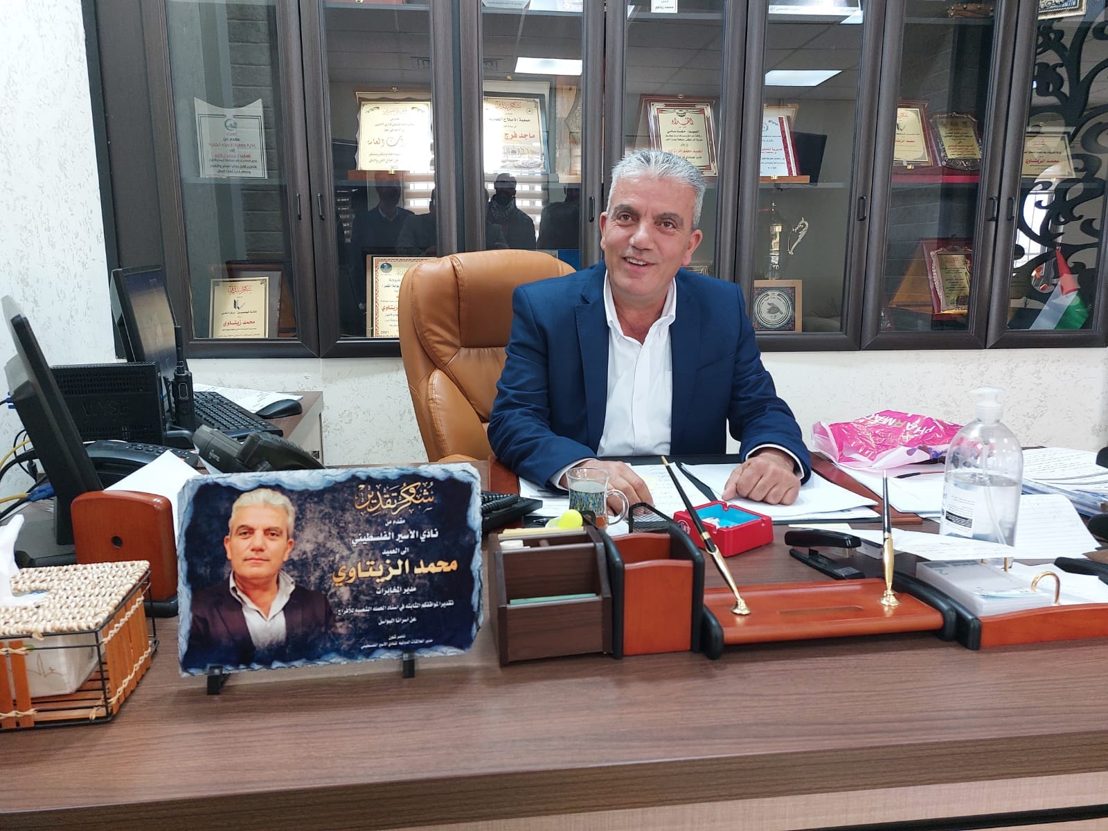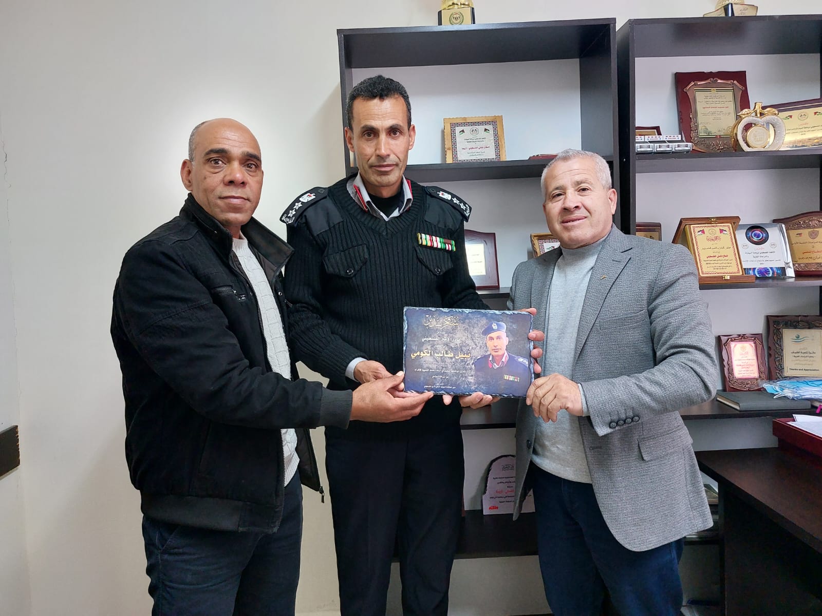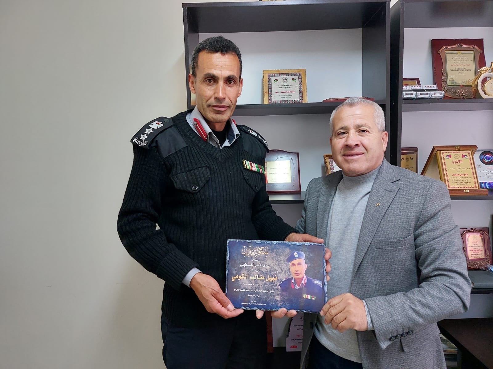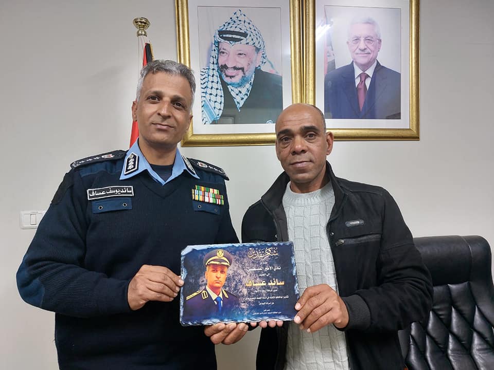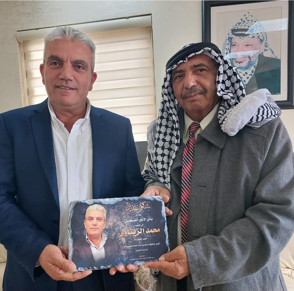 الأخ ناصر شلون مدير دائرة العلاقات الدولية والأخ عيد حافظ مدير فرع نادي الأسير الفلسطيني في محافظة أريحا ينقلون تحيات الأخ قدوره فارس ومجلس ادارة النادي لقادة ومنتسبي الأجهزة الأمنية.