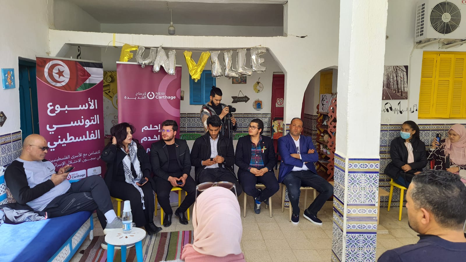 نادي الأسير: التقى الوفد الفلسطيني، المكوّن من هيئة شؤون الأسرى والمحررين، ونادي الأسير الفلسطيني والسفارة الفلسطينية، اليوم الأربعاء، مجموعة من النشطاء الشباب الداعمين للقضية الفلسطينية، في المركز الثقافي التعليمي "مدينة الفن" بمدنين.