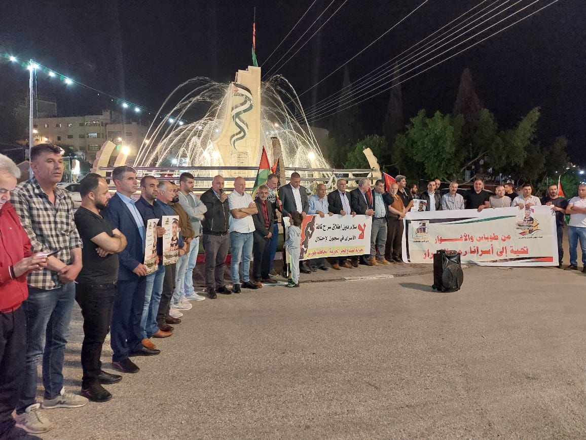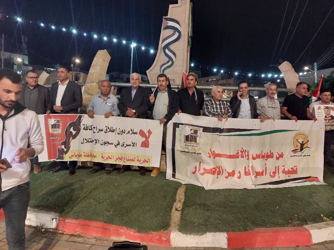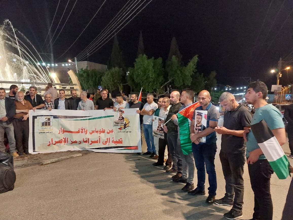 محافظه طوباس، وقفة دعم واسناد لاسرانا بيوم الاسير التي نظمها نادي الأسير الفلسطيني وهيئة شؤون الأسرى والمحررين ولجنة التنسيق الفصائلي في محافظةطوباس والاغوار الشمالية