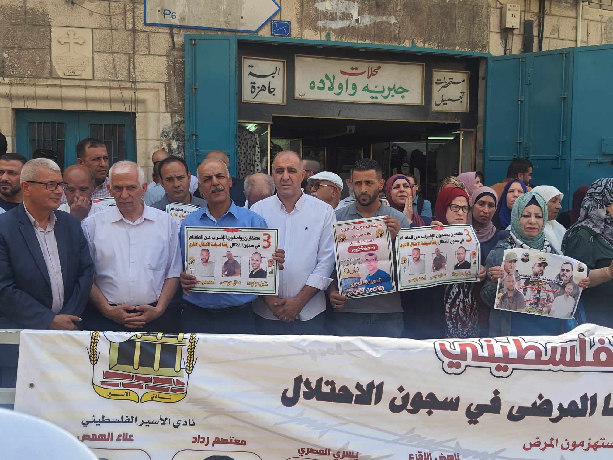 نظمت القوى الوطنية ونادي الاسير وهيئة الاسرى وجمعية الاسرى المحررين وبمشاركة العشرات من اهالي الاسرى والاسرى المحررين والمؤسسات الوطنية الاهلية في محافظة بيت لحم وقفة دعم واسناد للاسرى في سجون الاحتلال الذين يتاهبون لخوض اضراب عن الطعام ضد اجرات إدارة السجون مساء اليوم
