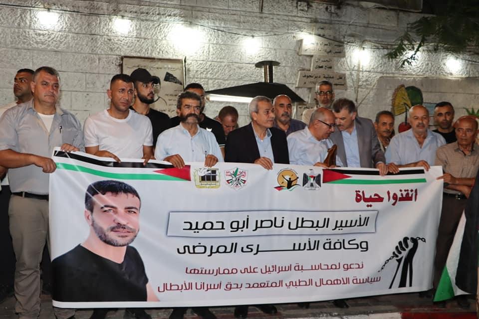 من الوقفه التضامنية مع الاسير ناصر ابو حميد بميدان الشهيد ابو علي اياد/ قلقيلية