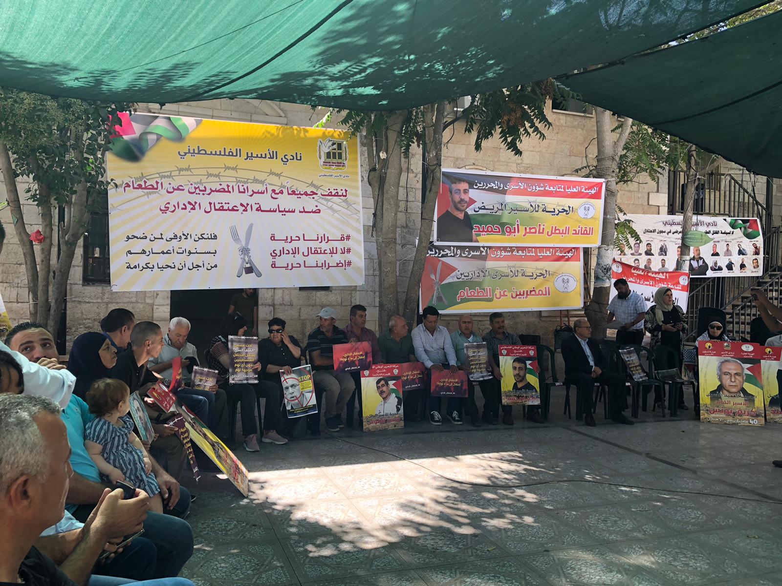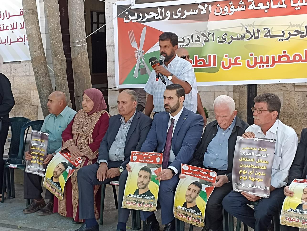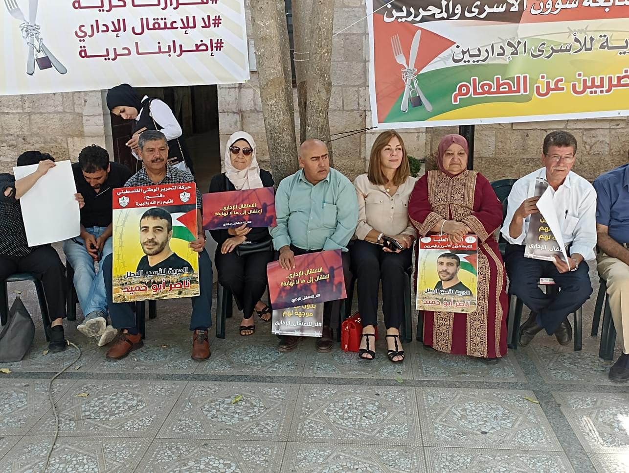 من دعوة اللجنة الوطنية لمساندة الأسرى في سجون الاحتلال، انتصارًا لدماء شهداء الوطن وجنين، وإسنادًا للأسرى منهم المرضى وعلى رأسهم الأسير ناصر ابو حميد، والمعتقلين الإداريين المضربين عن الطعام، اليوم في إقامة خيمة اعتصام دائمة في محافظة رام الله والبيرة وذلك ساحة مركز البيرة الثقافي